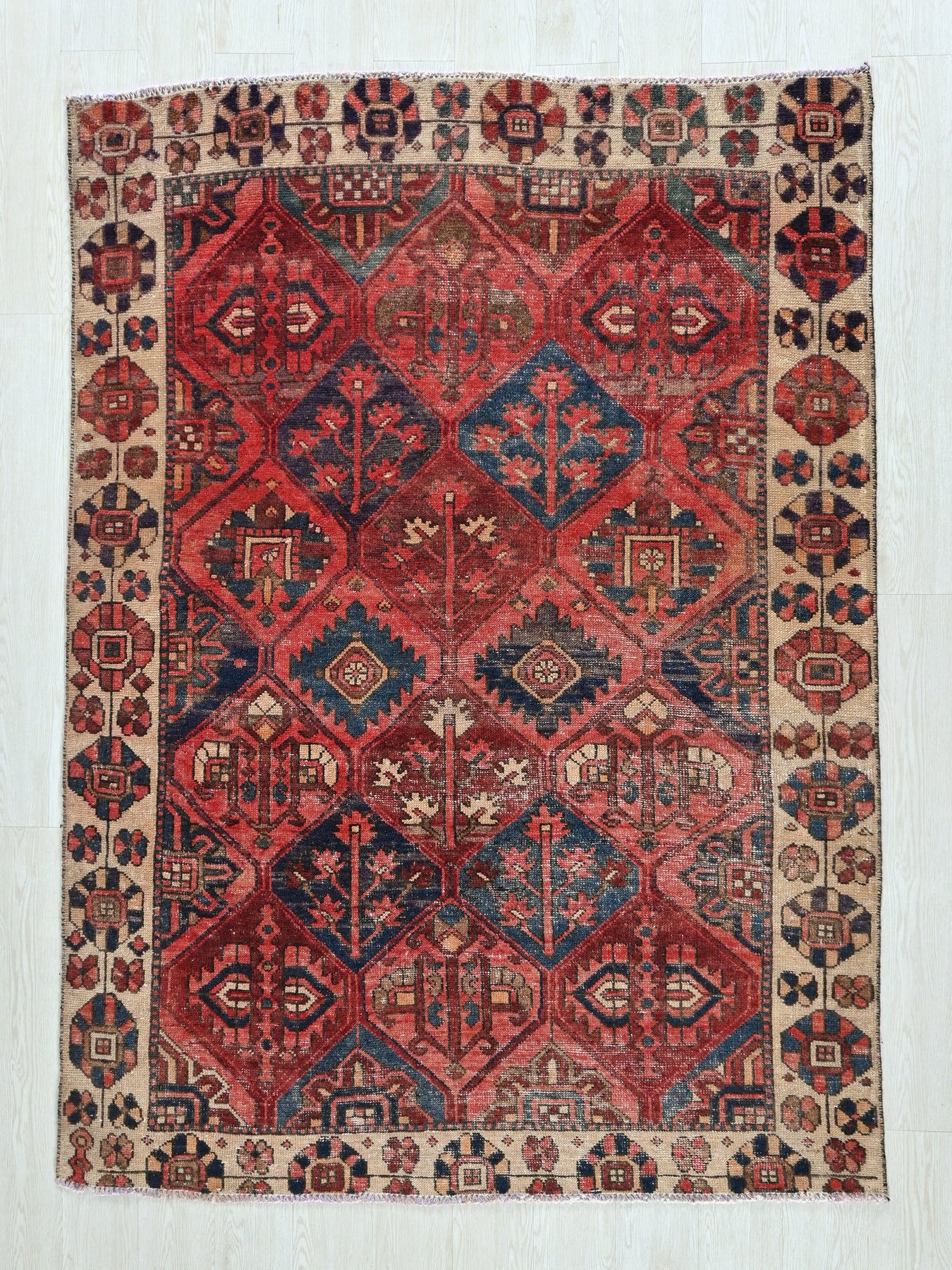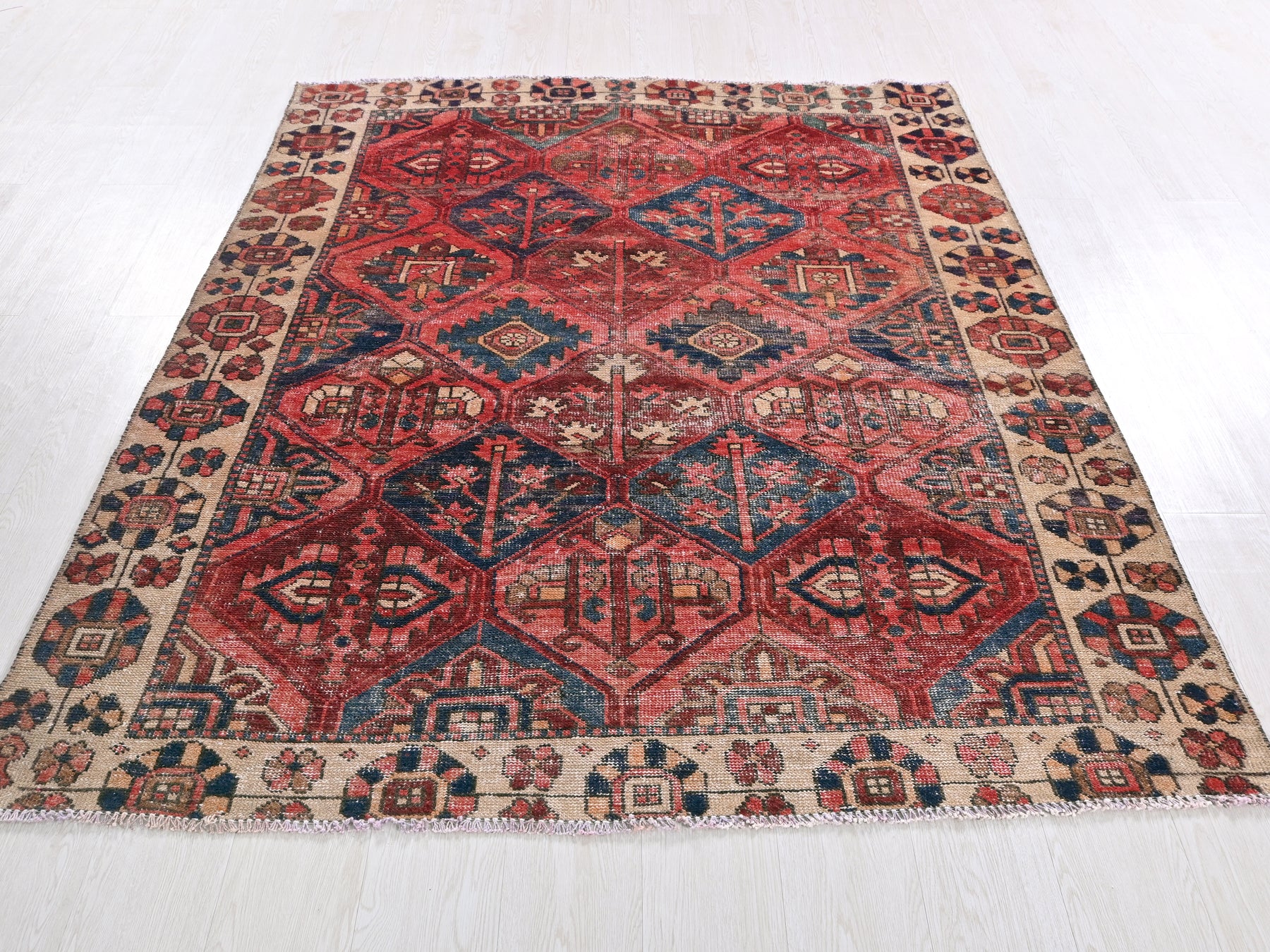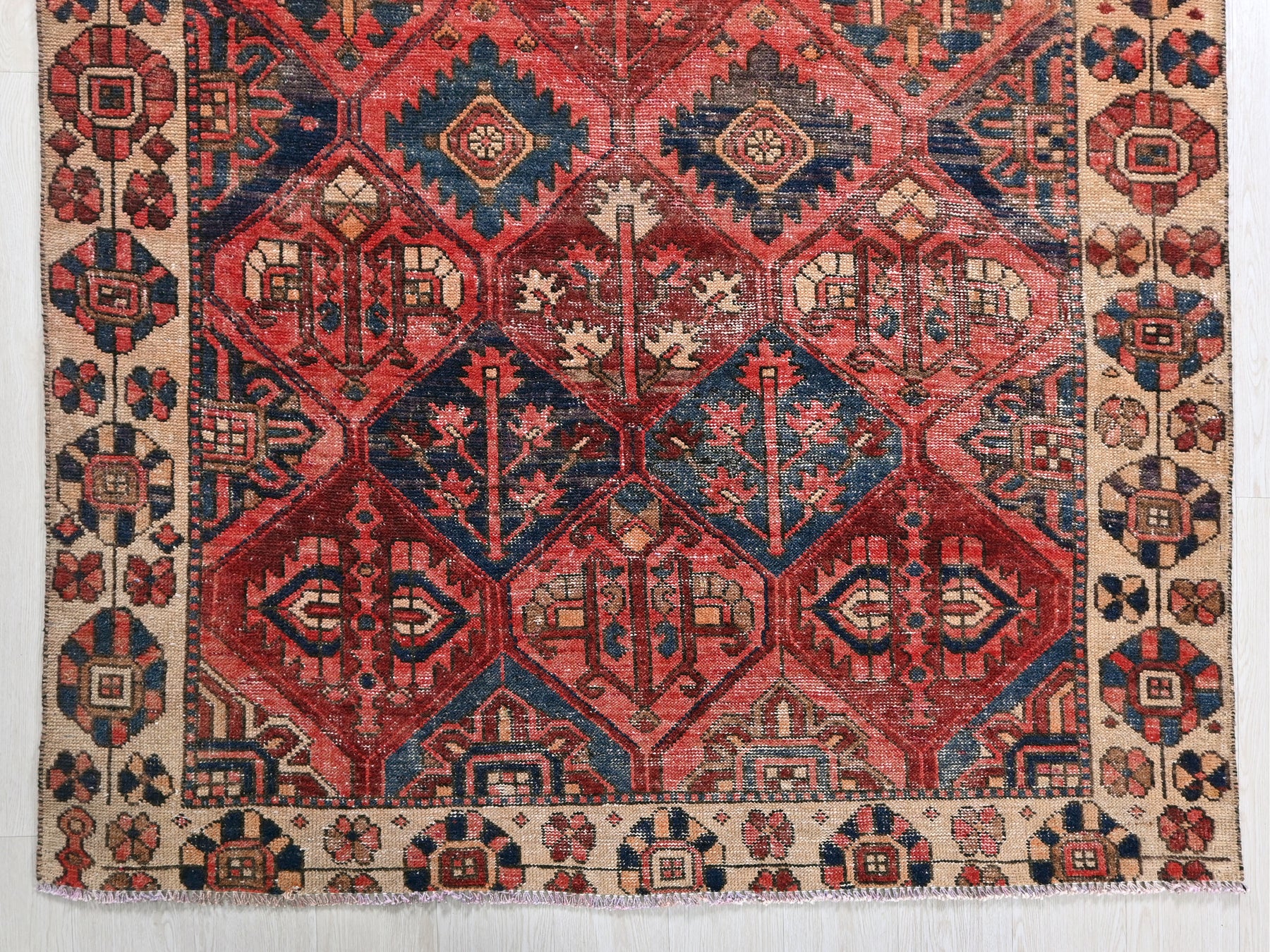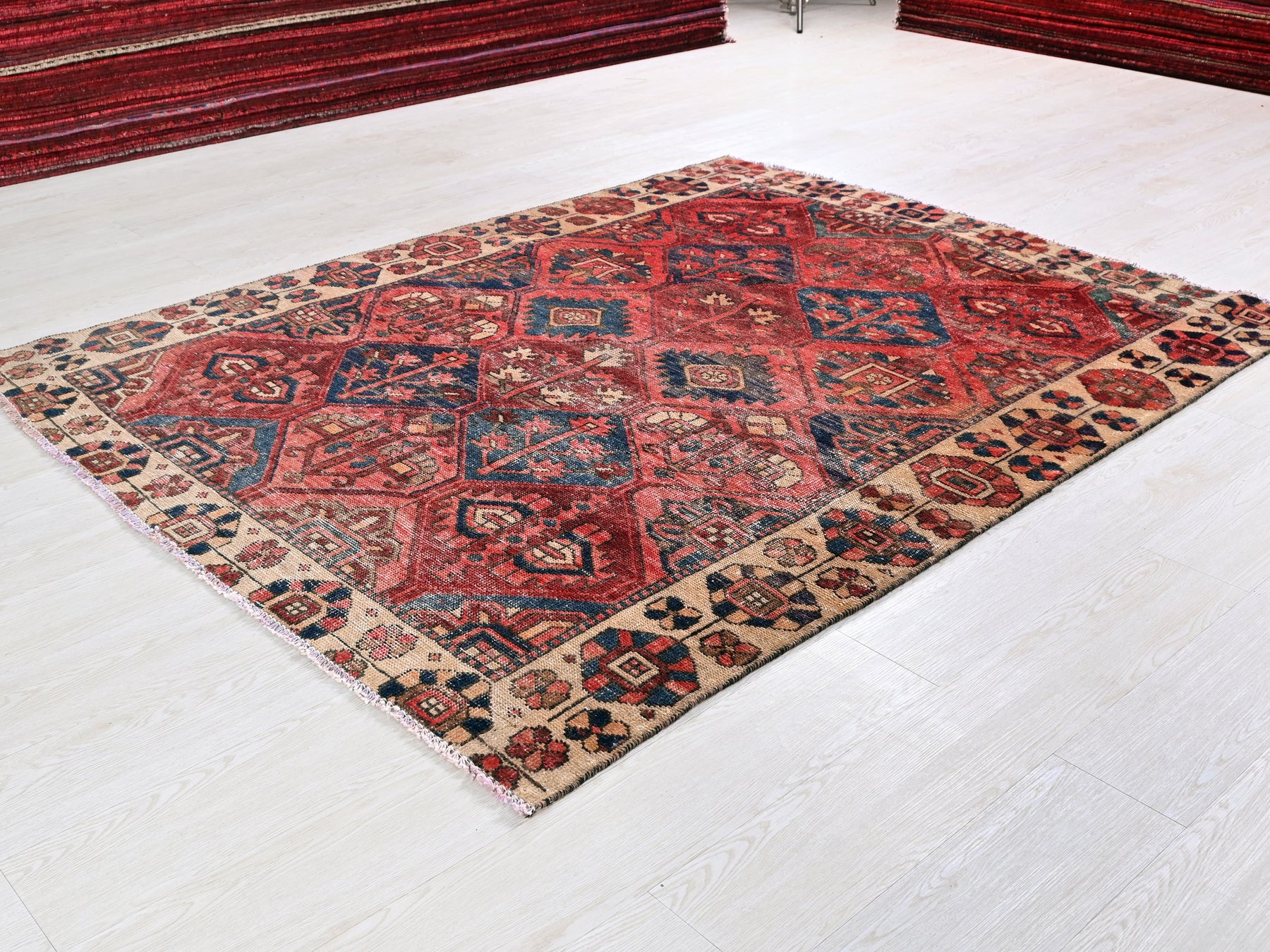 This is a hand-knotted, one-of-a-kind vintage rug. Due to the nature of this piece, there may be slight imperfections in its wear, shape, dimensions, and color. All of our rugs are professionally cleaned and repaired.