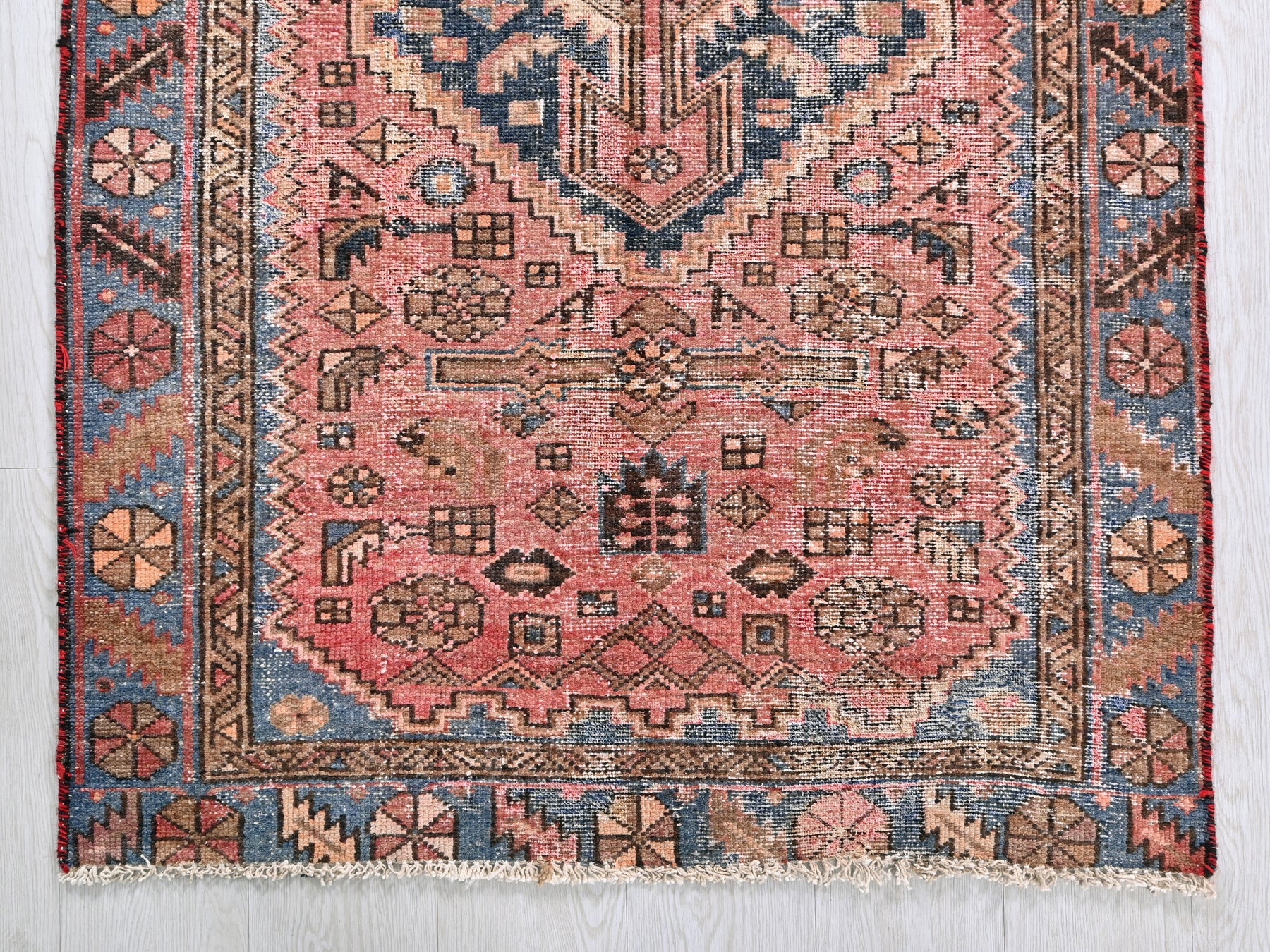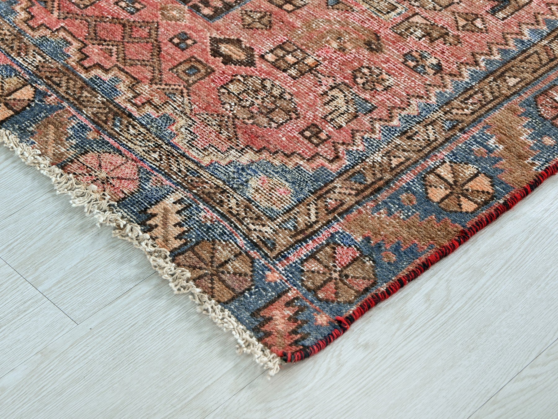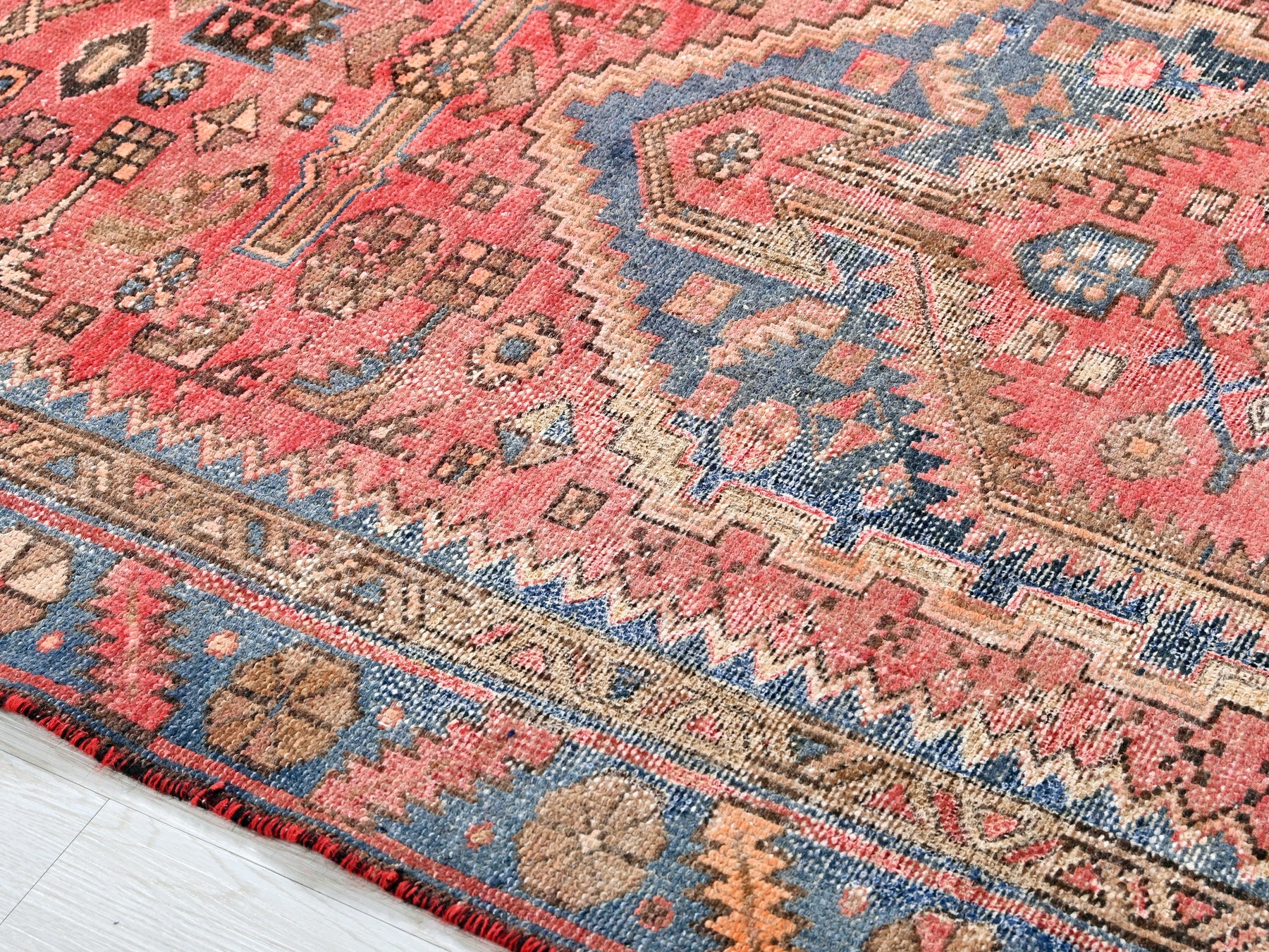 This is a hand-knotted, one-of-a-kind vintage rug. Due to the nature of this piece, there may be slight imperfections in its wear, shape, dimensions, and color. All of our rugs are professionally cleaned and repaired.