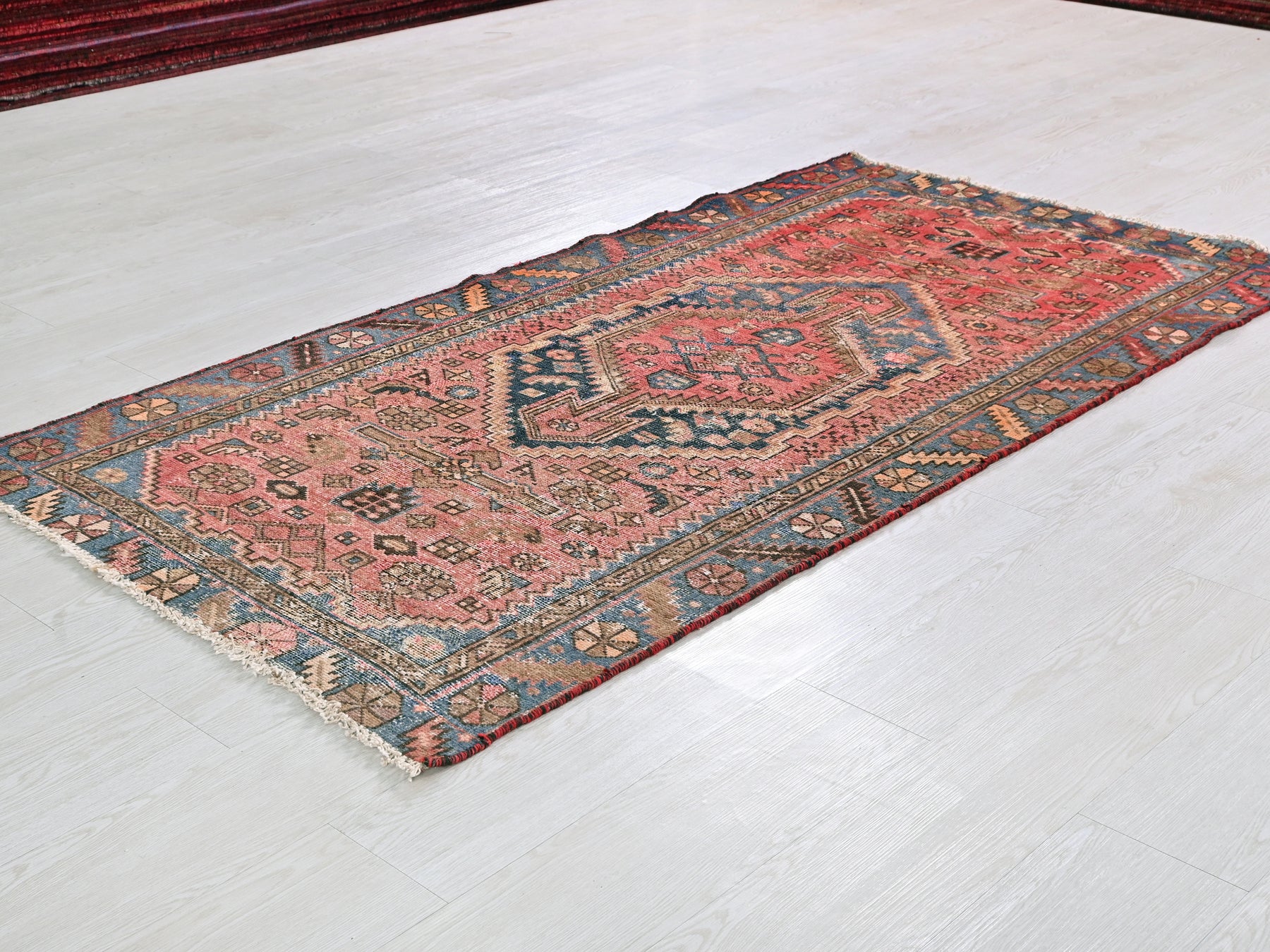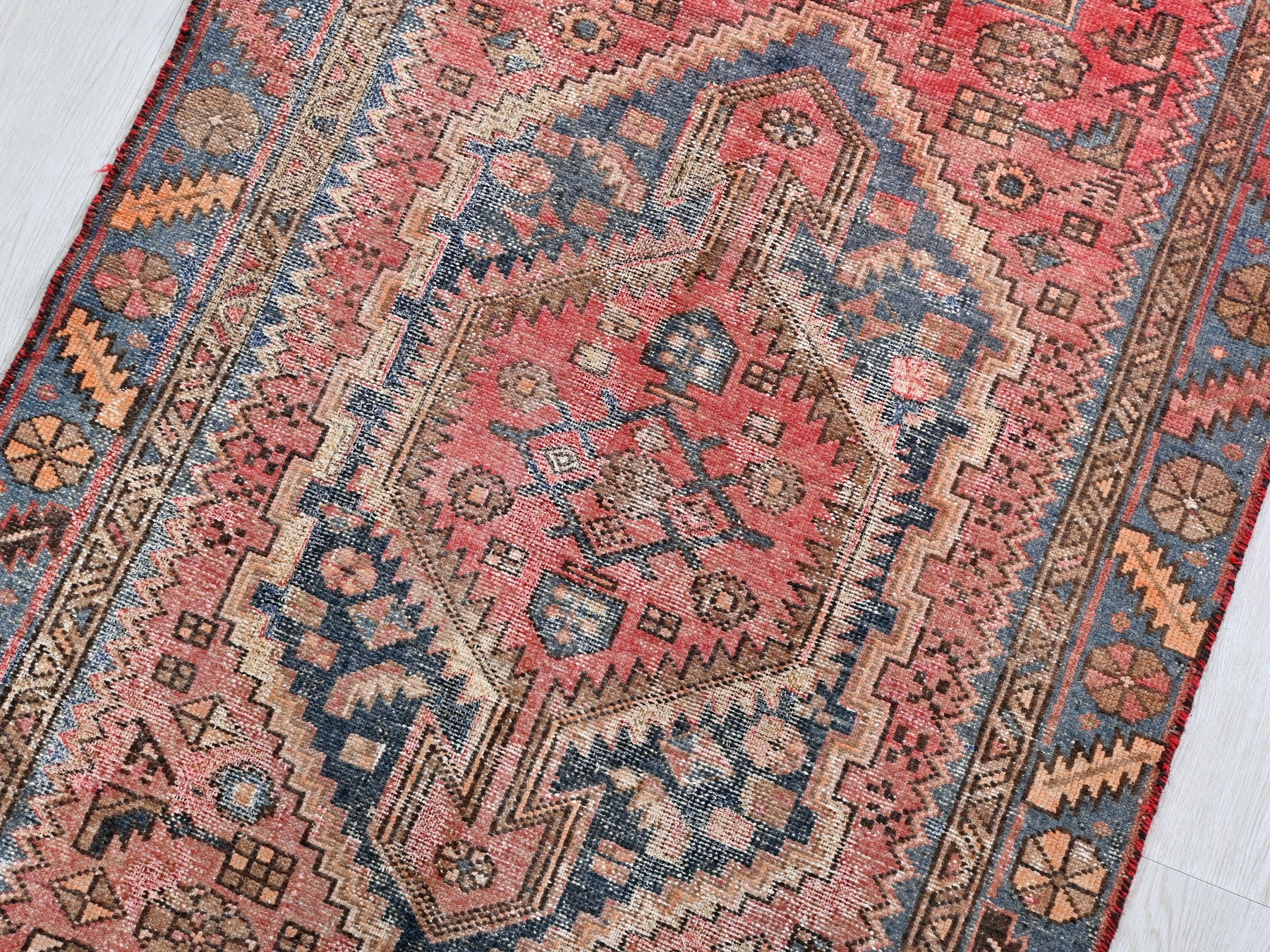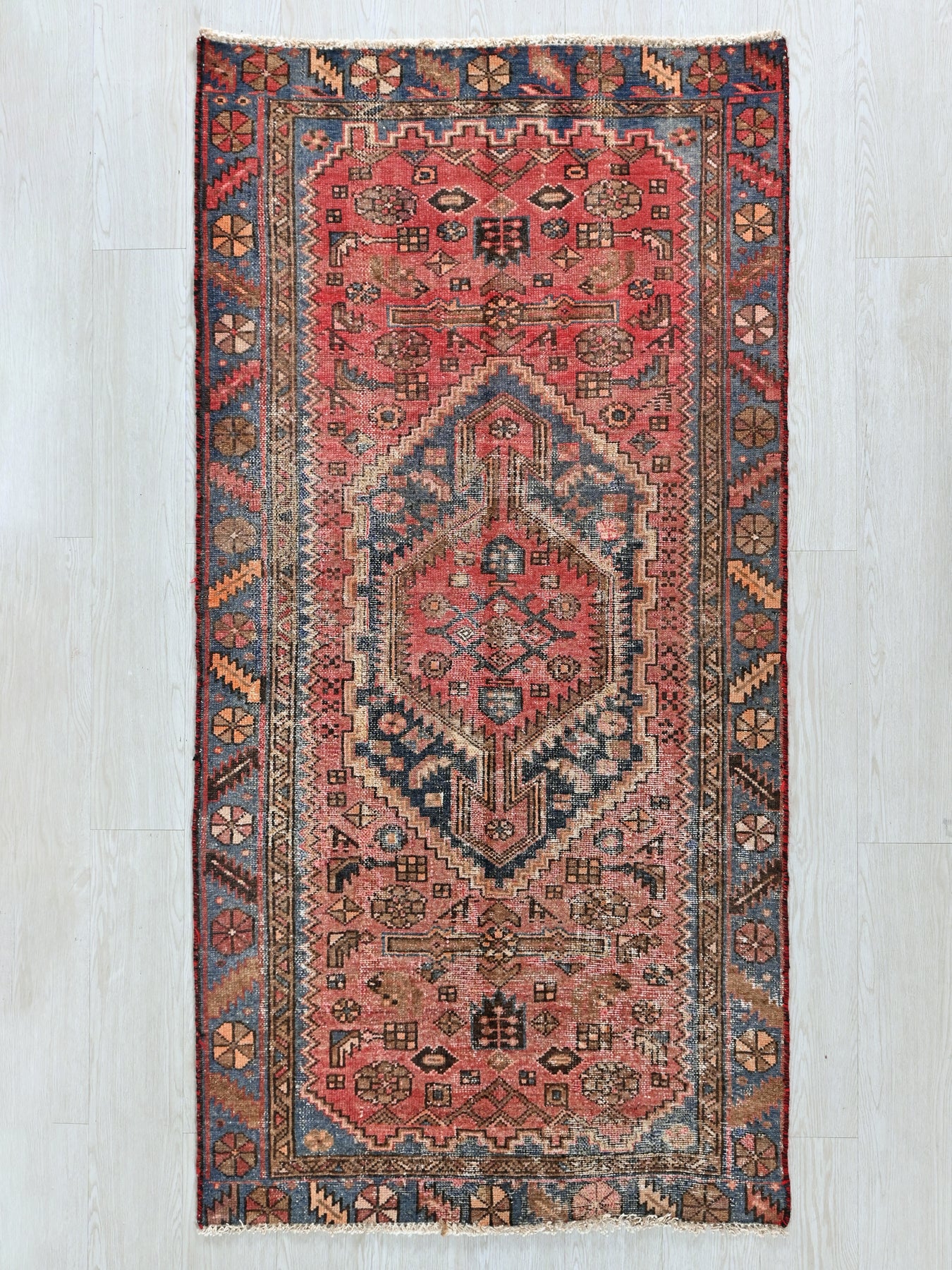 This is a hand-knotted, one-of-a-kind vintage rug. Due to the nature of this piece, there may be slight imperfections in its wear, shape, dimensions, and color. All of our rugs are professionally cleaned and repaired.