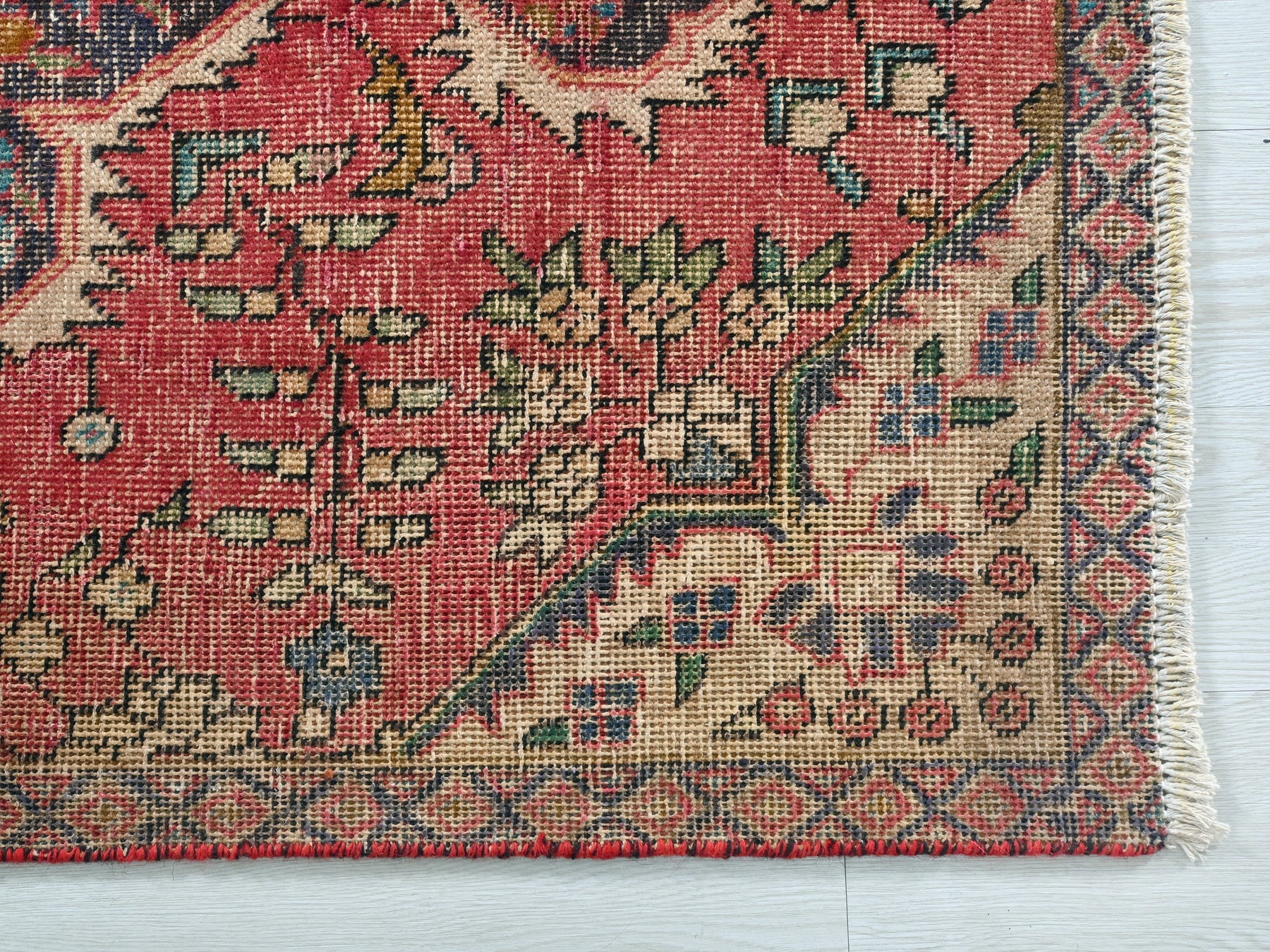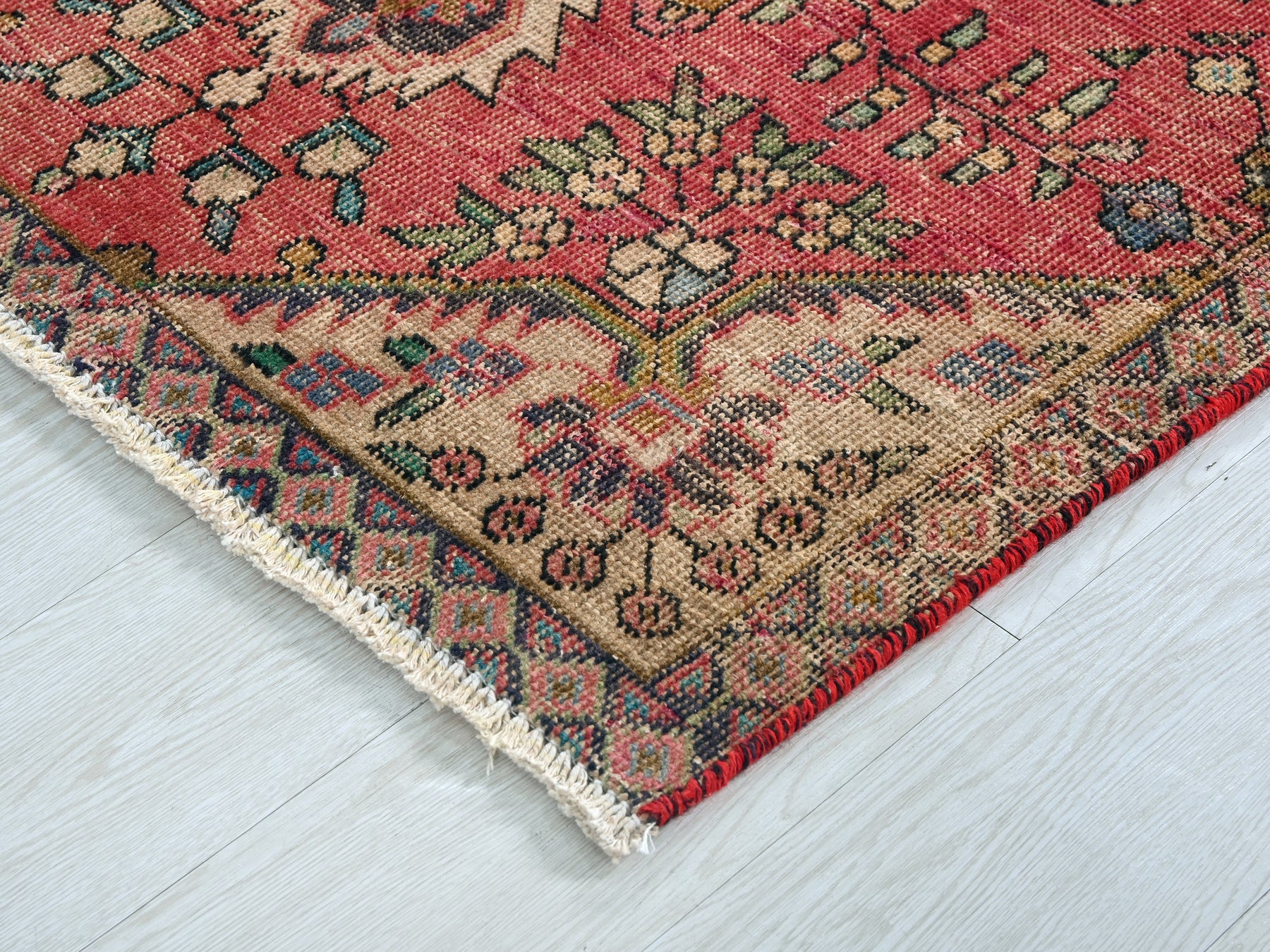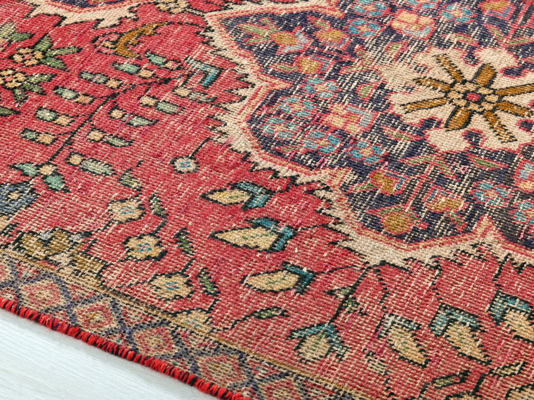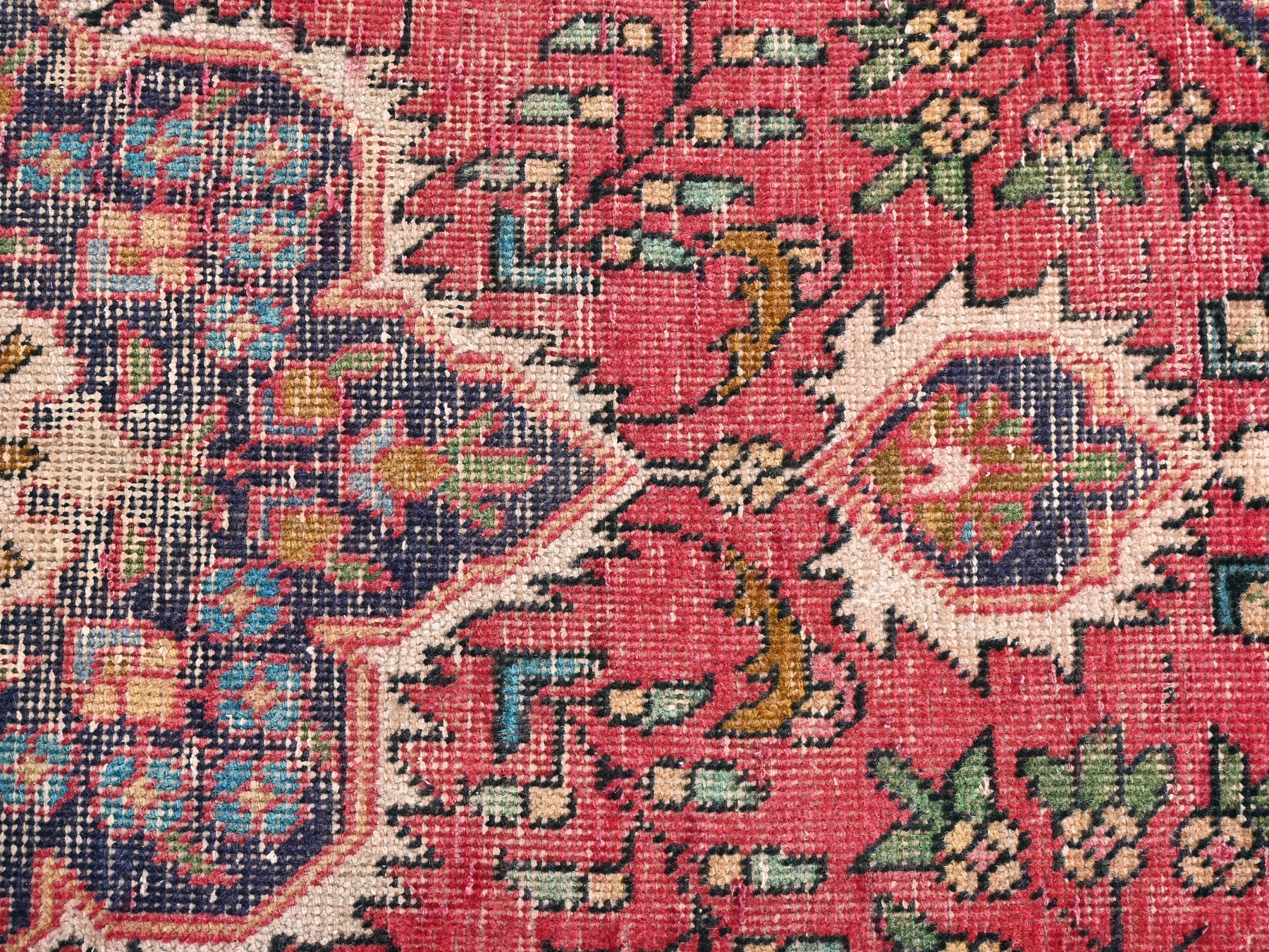 This is a hand-knotted, one-of-a-kind vintage rug. Due to the nature of this piece, there may be slight imperfections in its wear, shape, dimensions, and color. All of our rugs are professionally cleaned and repaired.