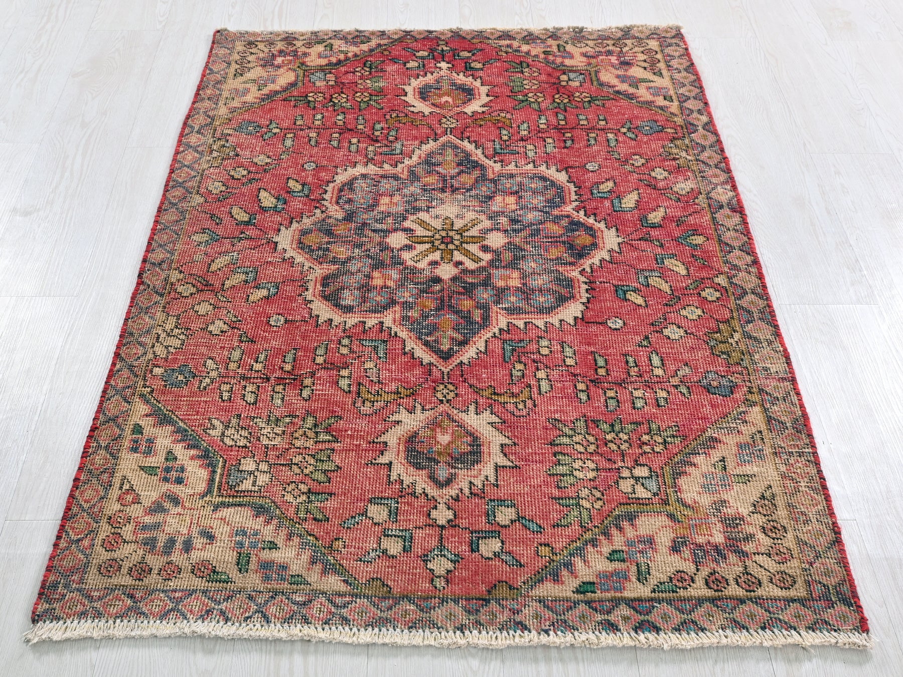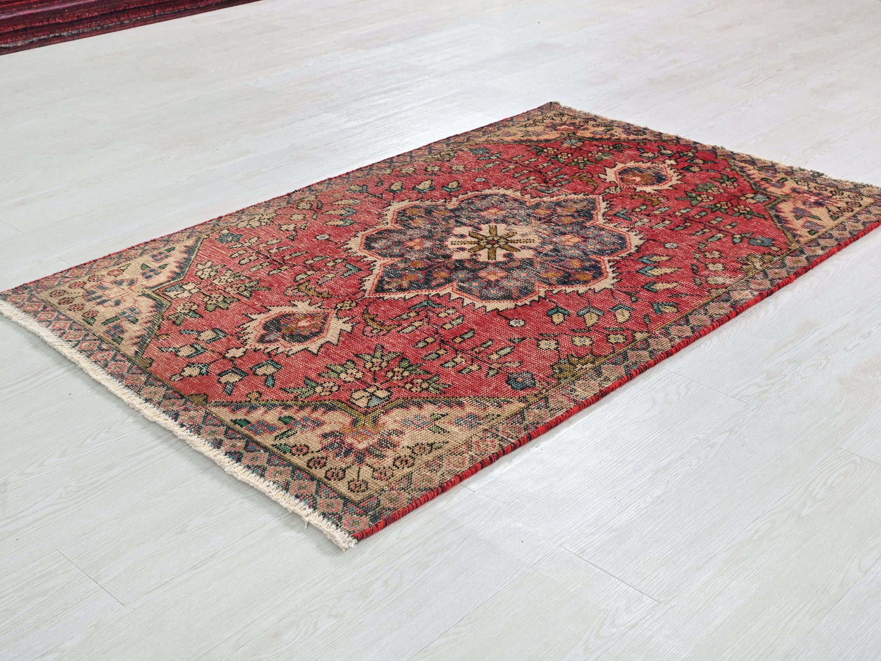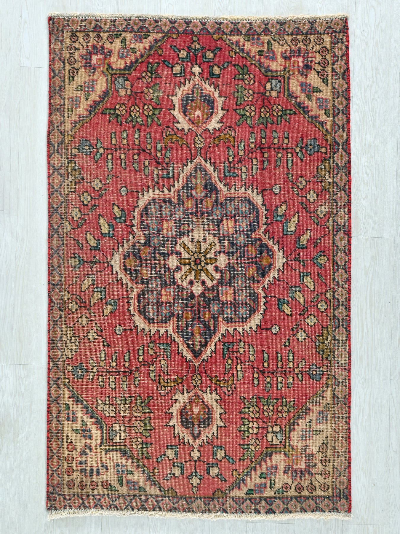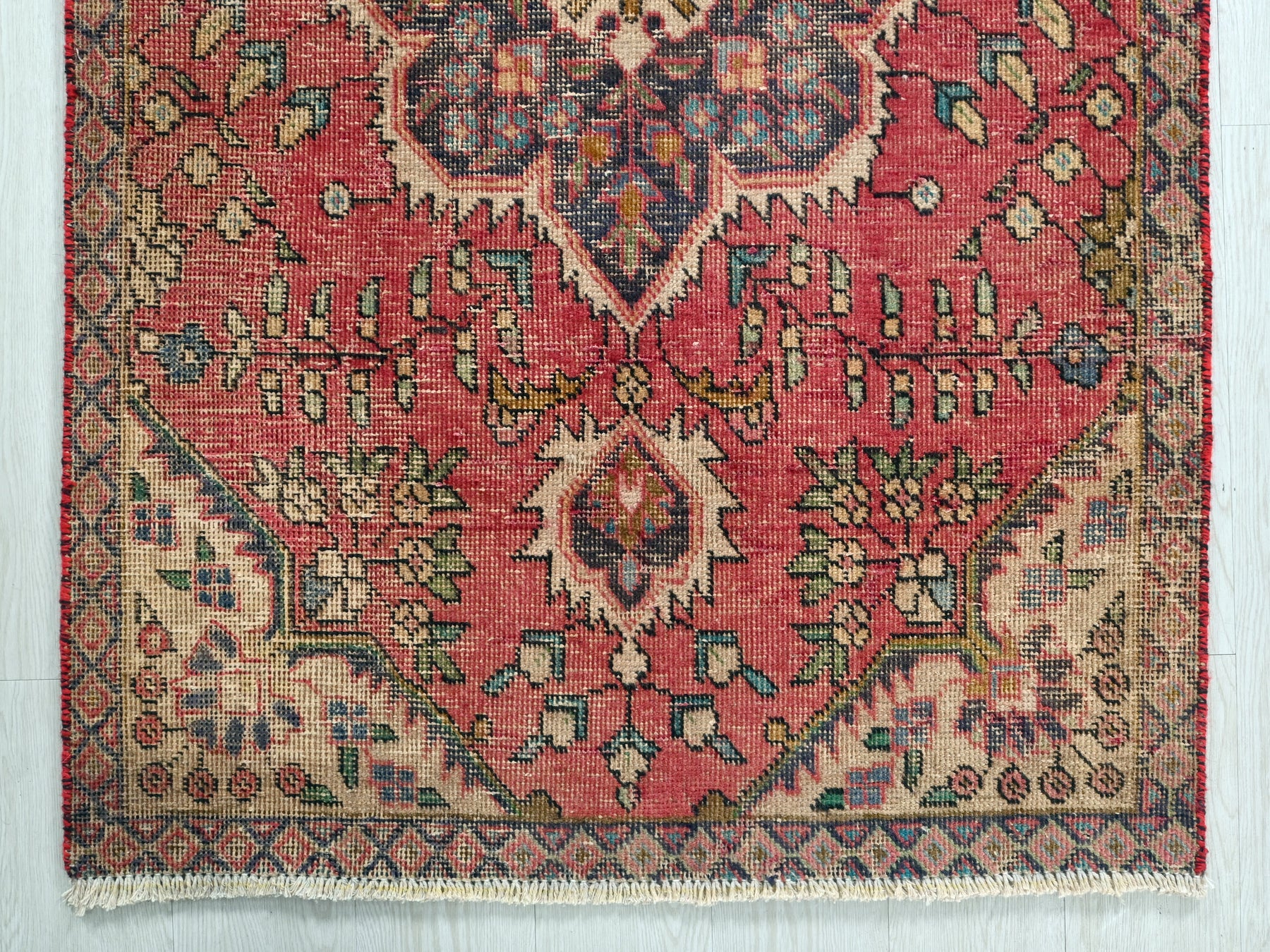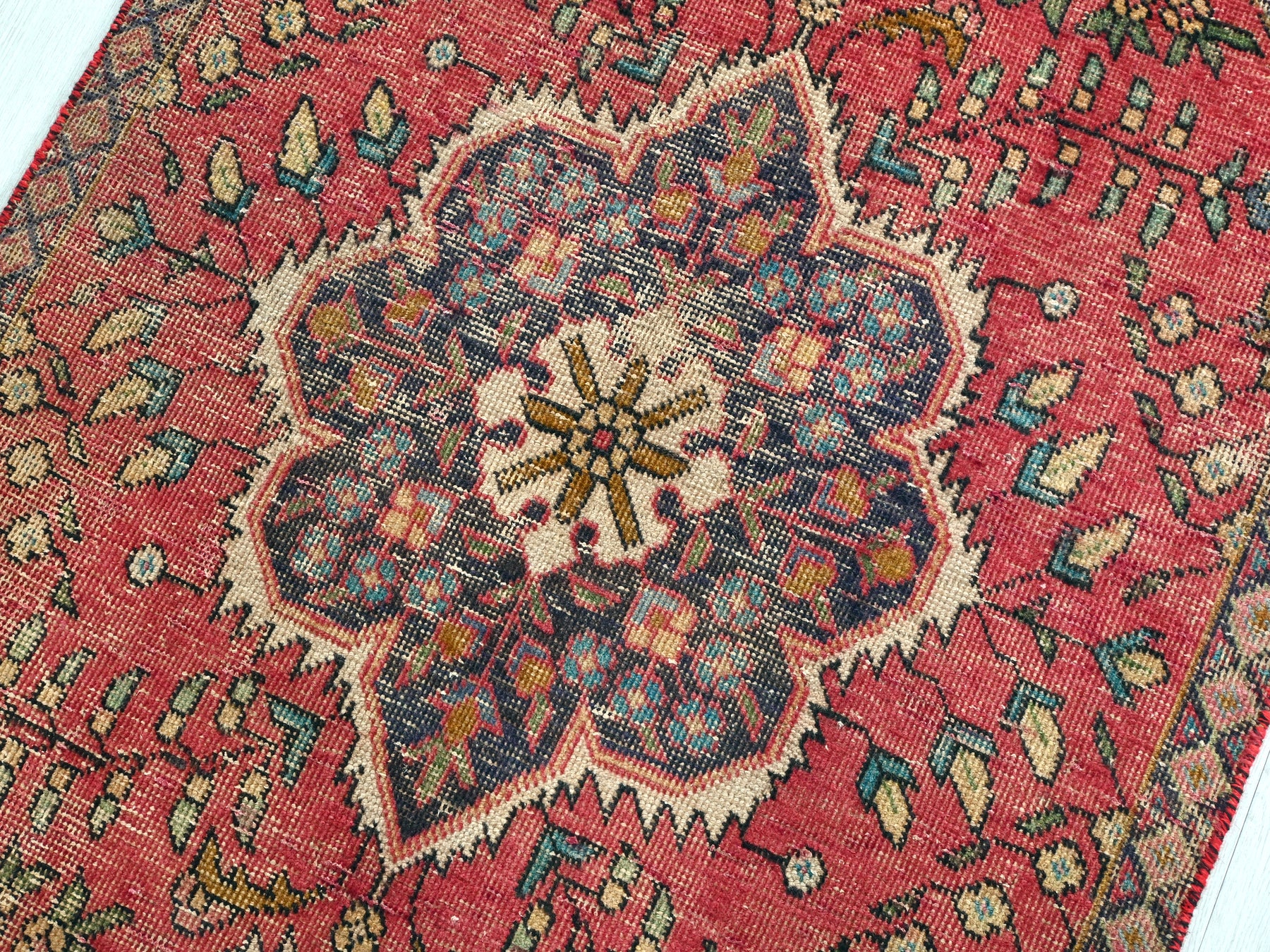 This is a hand-knotted, one-of-a-kind vintage rug. Due to the nature of this piece, there may be slight imperfections in its wear, shape, dimensions, and color. All of our rugs are professionally cleaned and repaired.