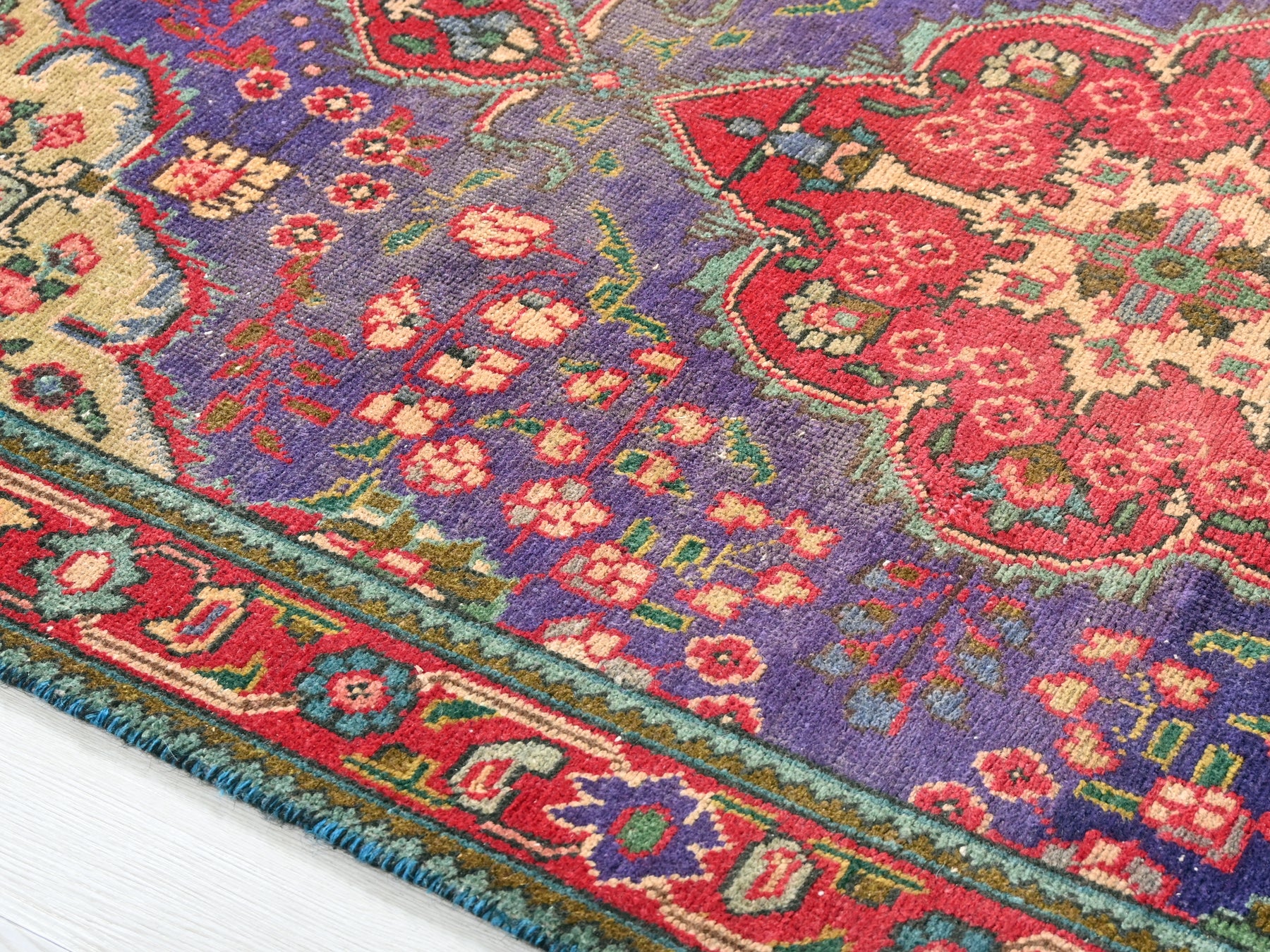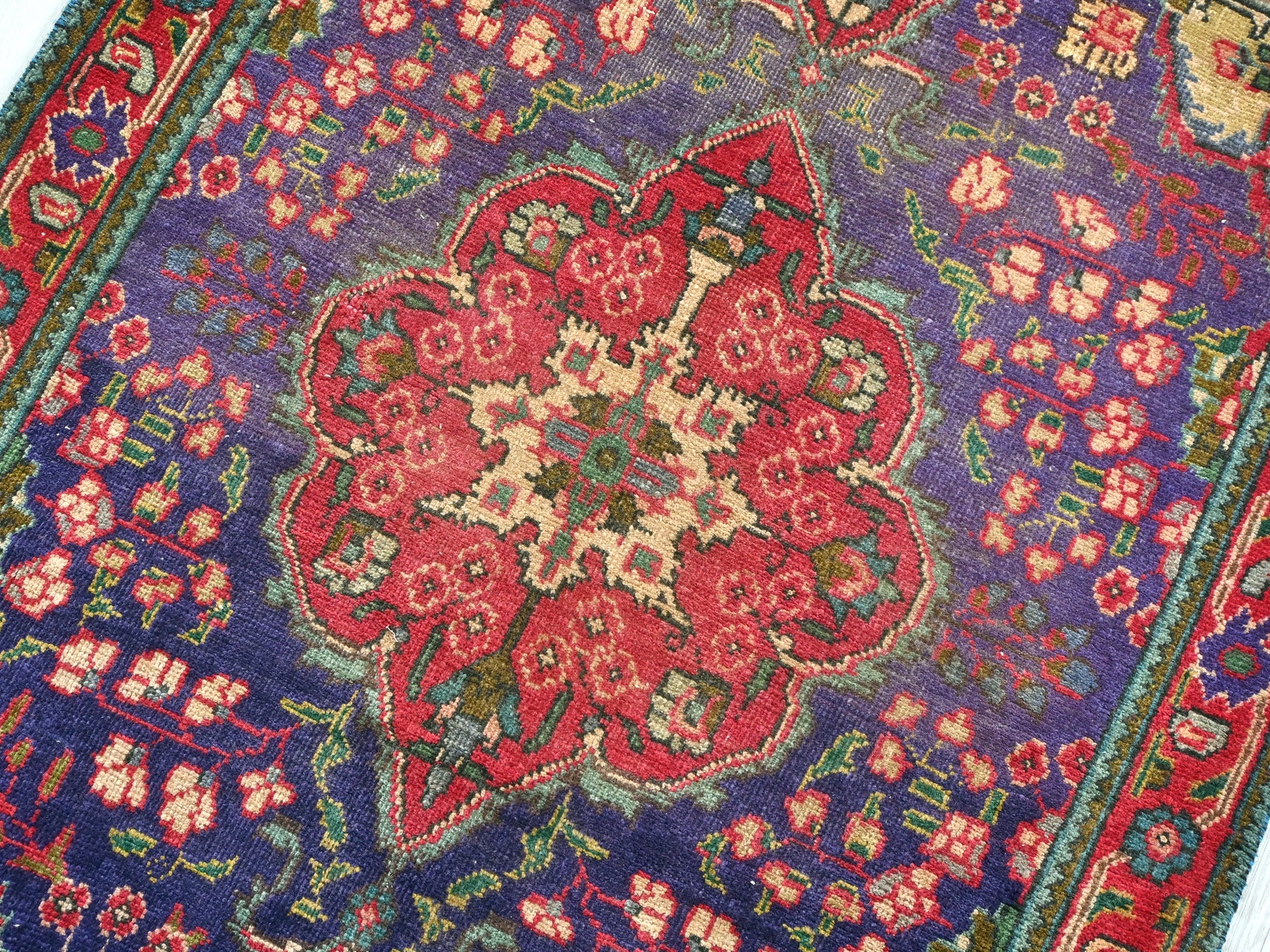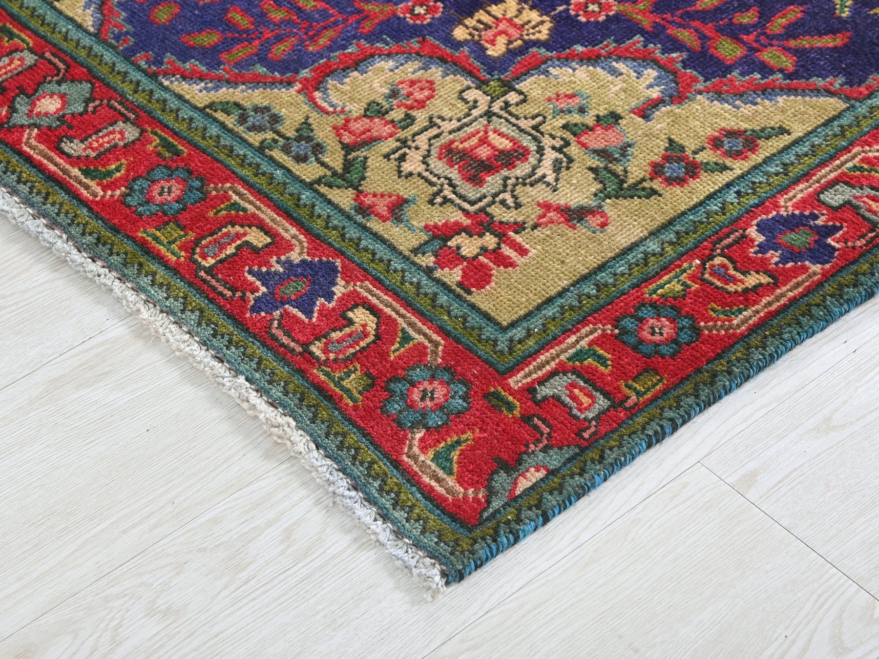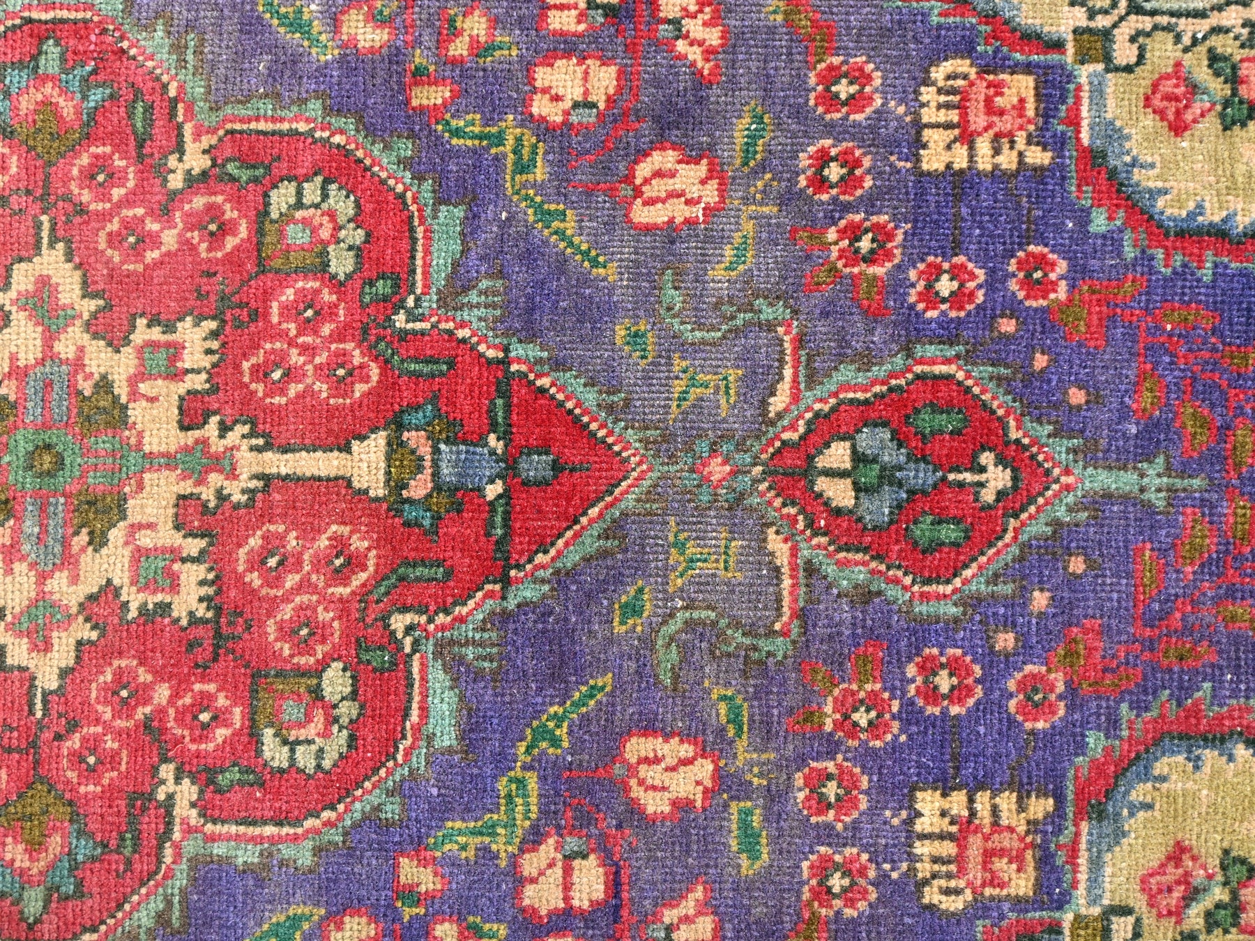 This is a hand-knotted, one-of-a-kind vintage rug. Due to the nature of this piece, there may be slight imperfections in its wear, shape, dimensions, and color. All of our rugs are professionally cleaned and repaired.