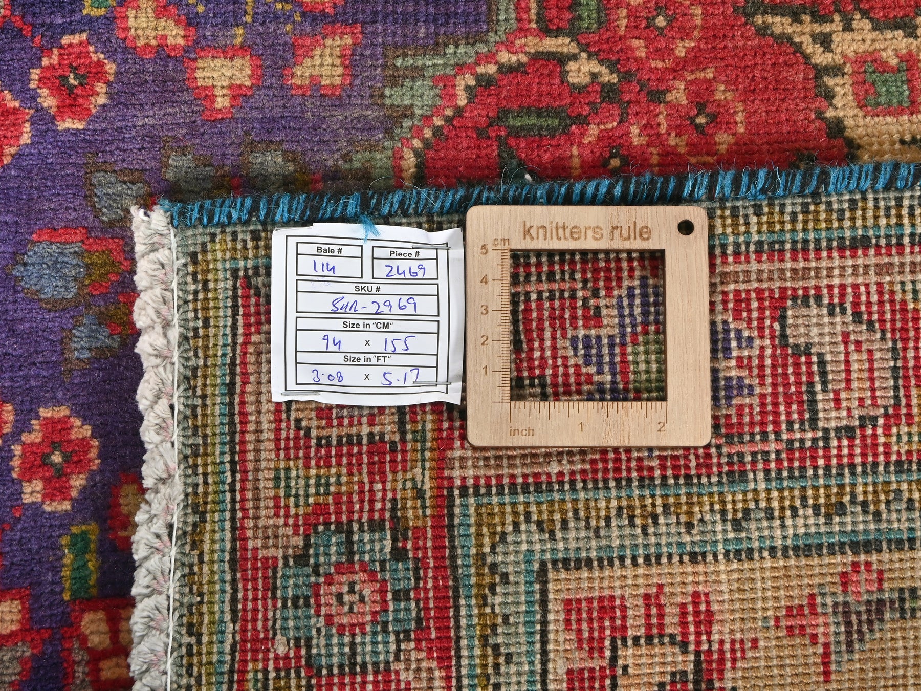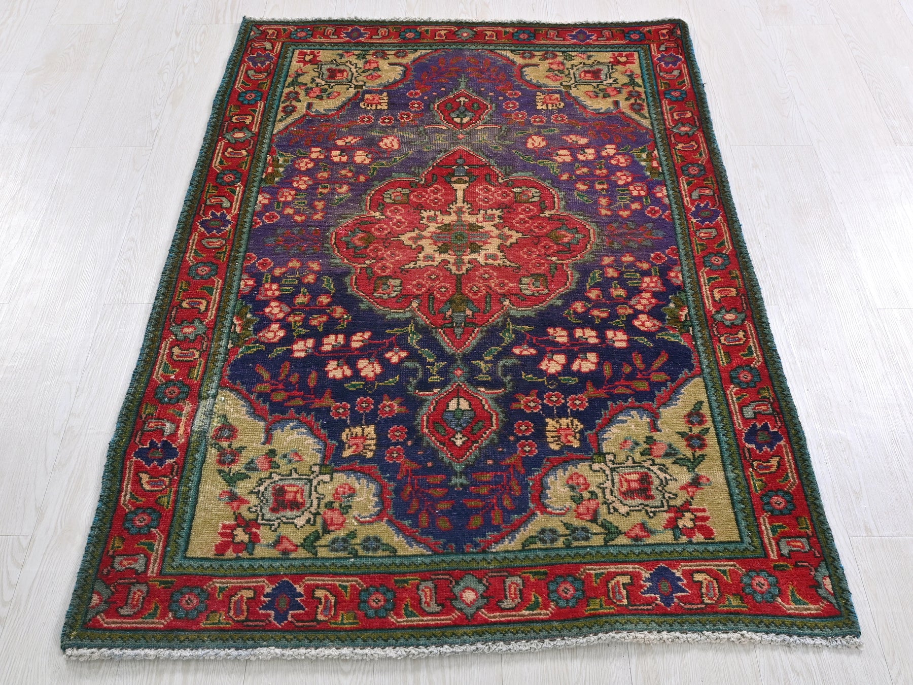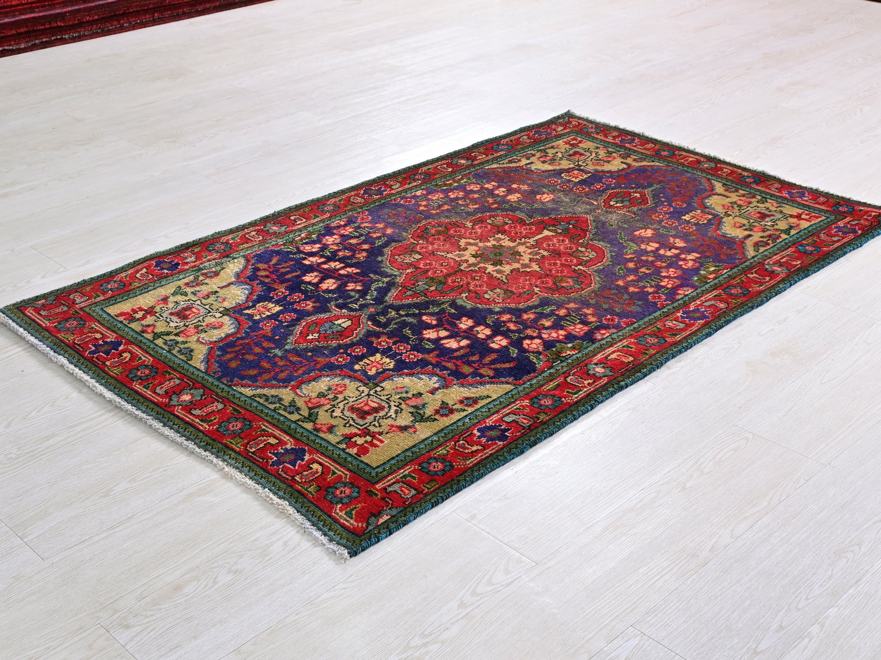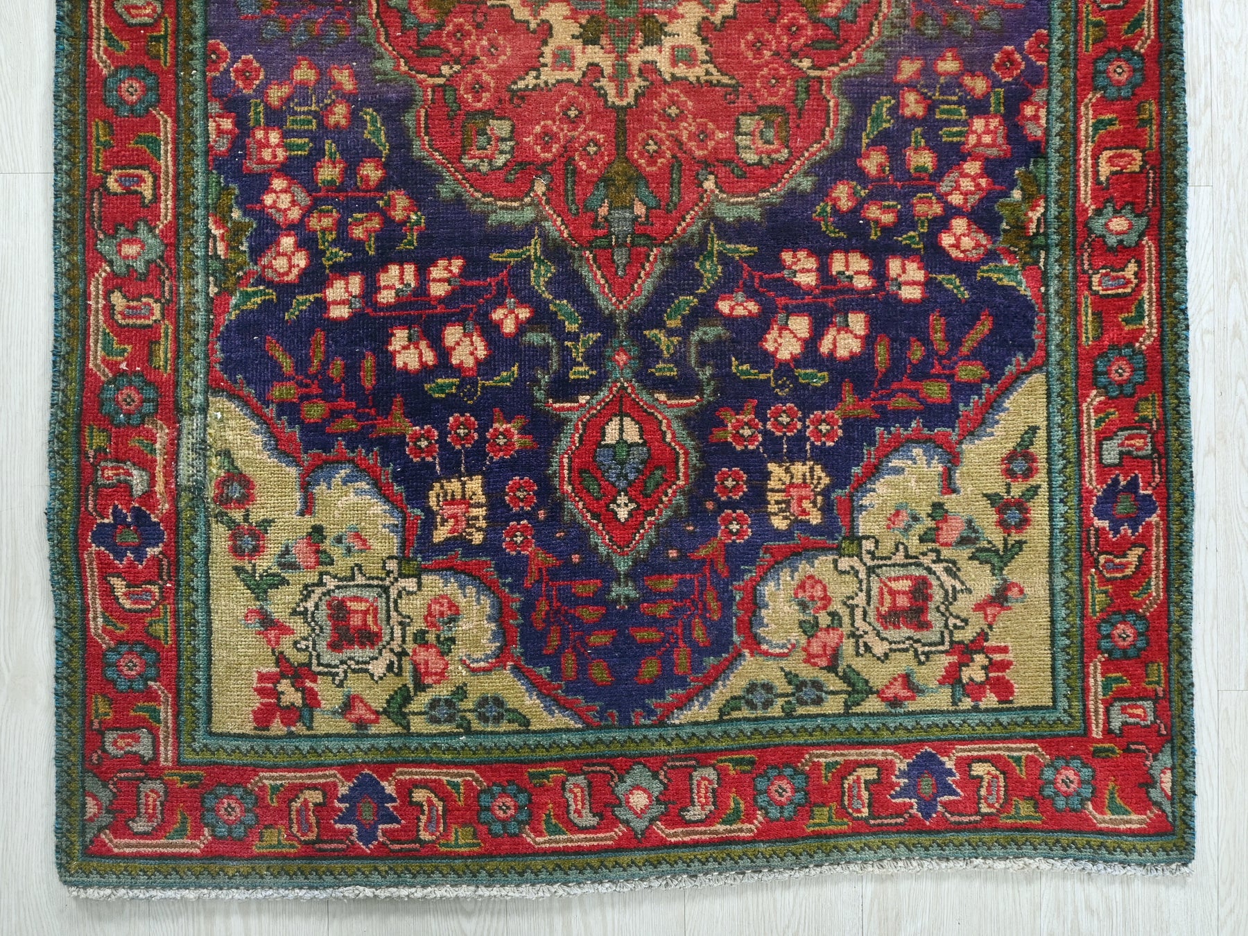 This is a hand-knotted, one-of-a-kind vintage rug. Due to the nature of this piece, there may be slight imperfections in its wear, shape, dimensions, and color. All of our rugs are professionally cleaned and repaired.