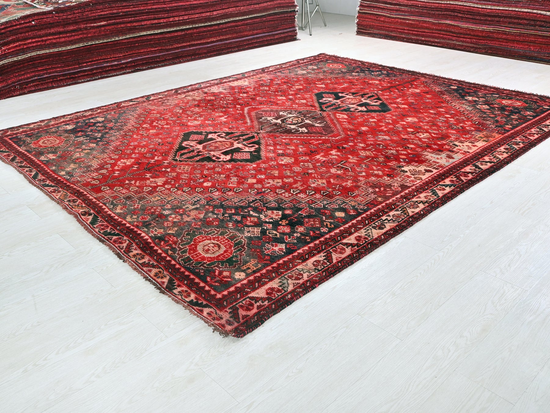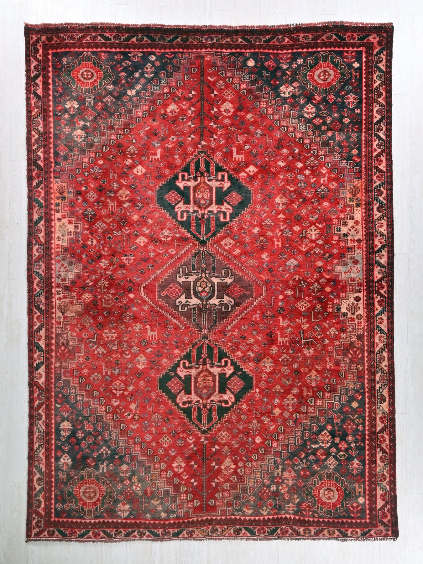 This is a hand-knotted, one-of-a-kind vintage rug. Due to the nature of this piece, there may be slight imperfections in its wear, shape, dimensions, and color. All of our rugs are professionally cleaned and repaired.