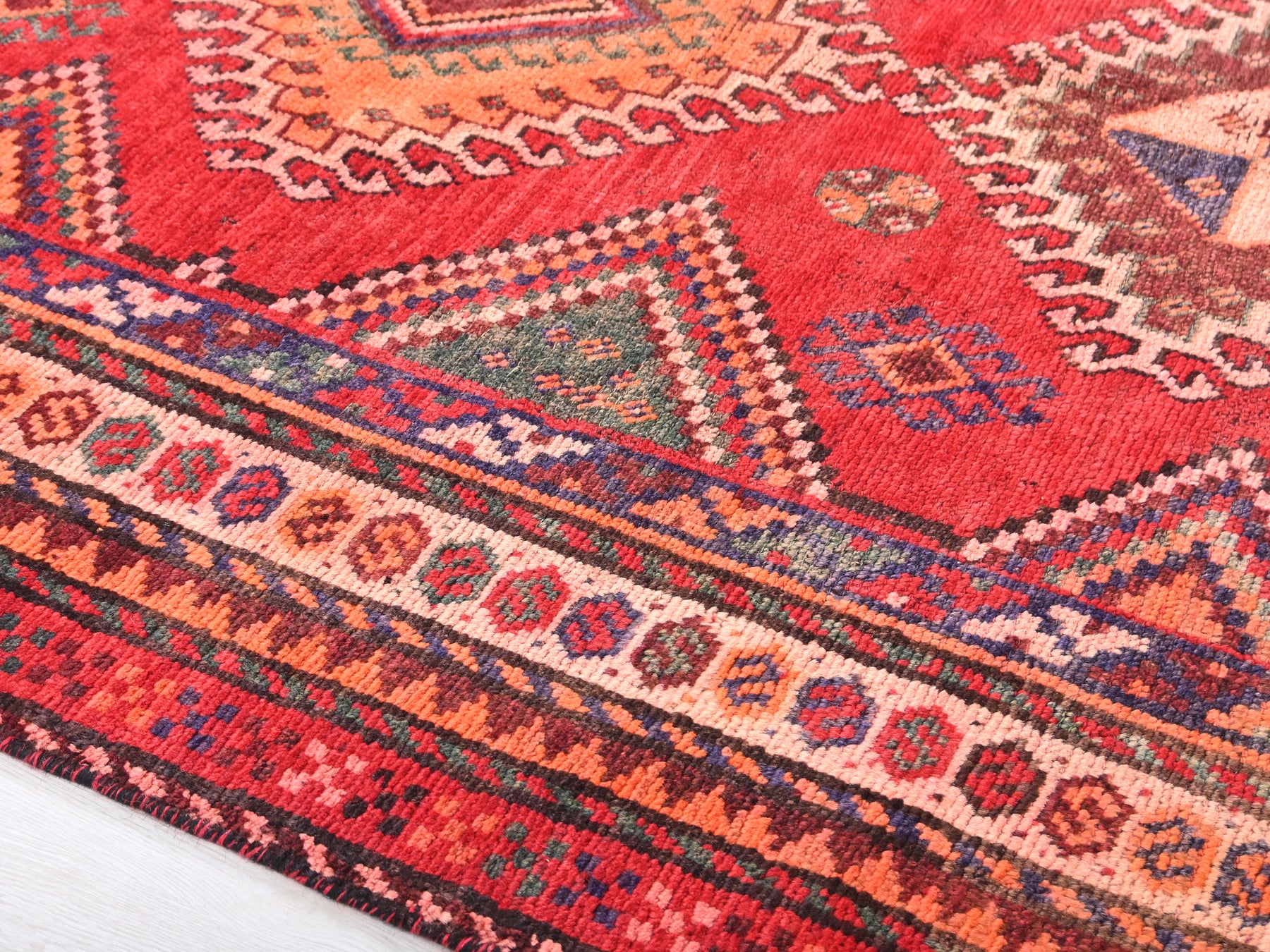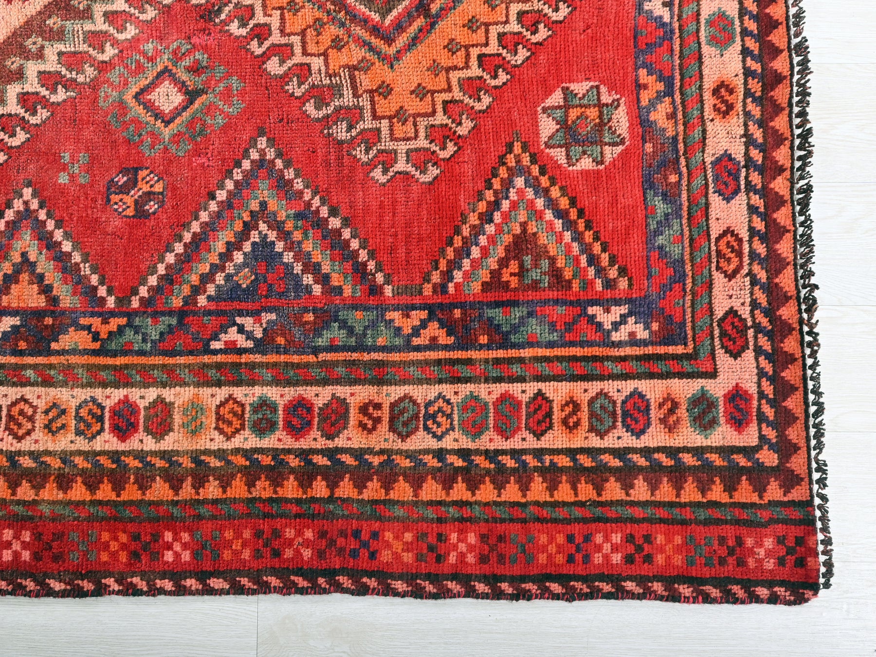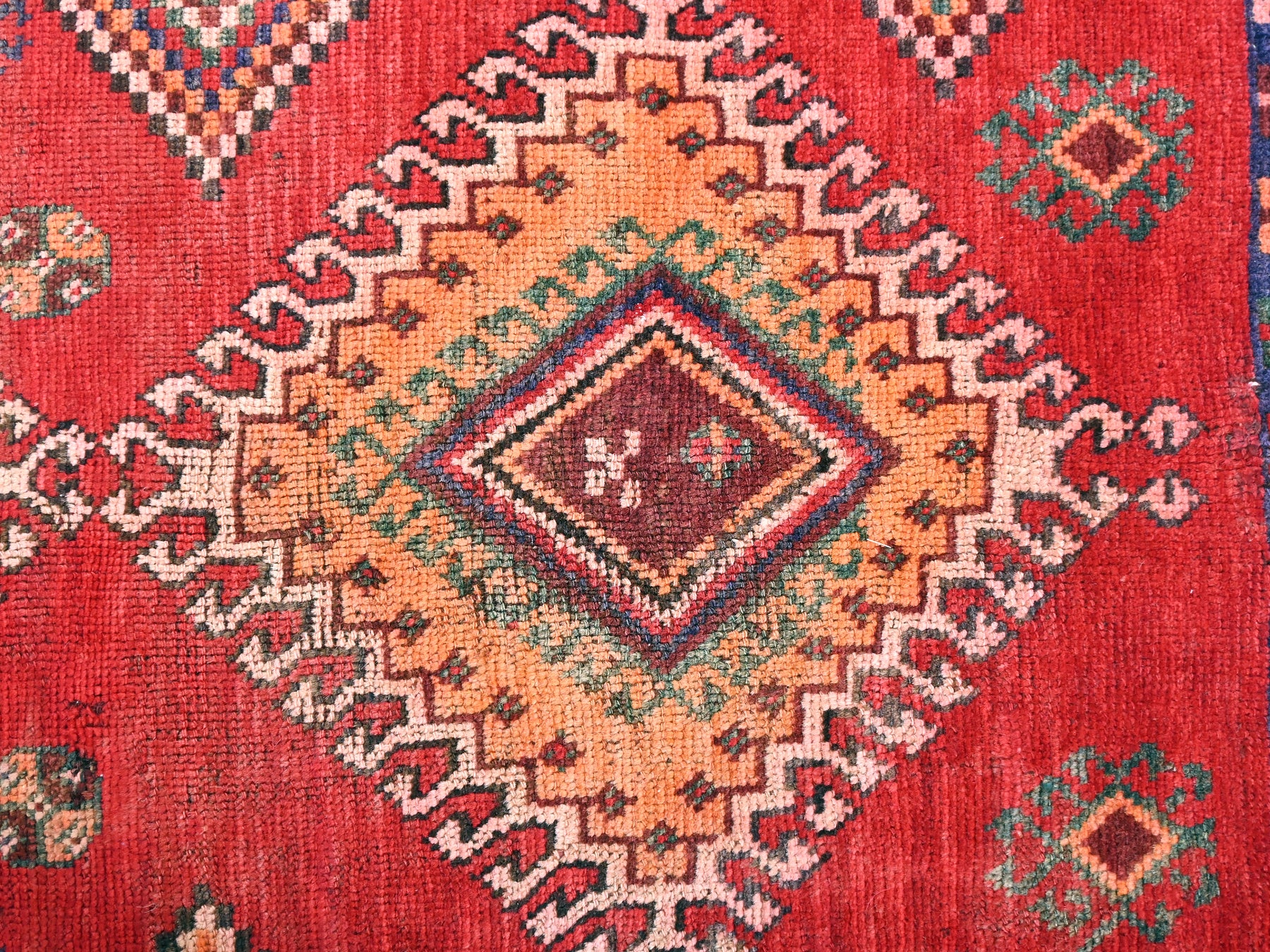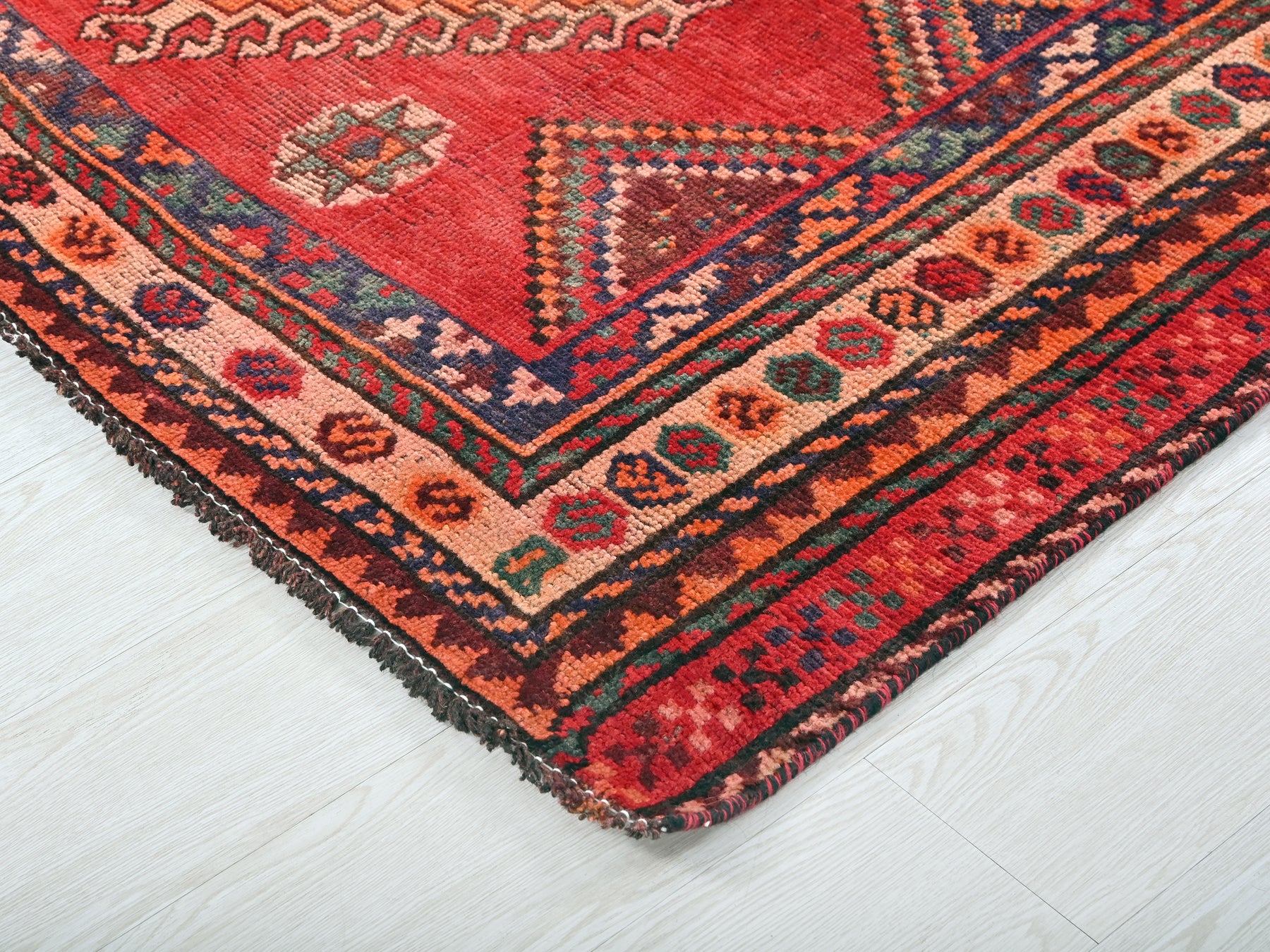 This is a hand-knotted, one-of-a-kind vintage rug. Due to the nature of this piece, there may be slight imperfections in its wear, shape, dimensions, and color. All of our rugs are professionally cleaned and repaired.