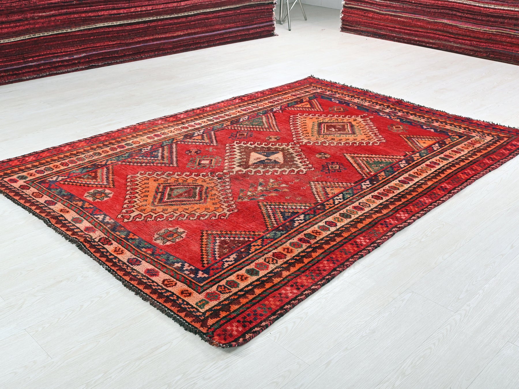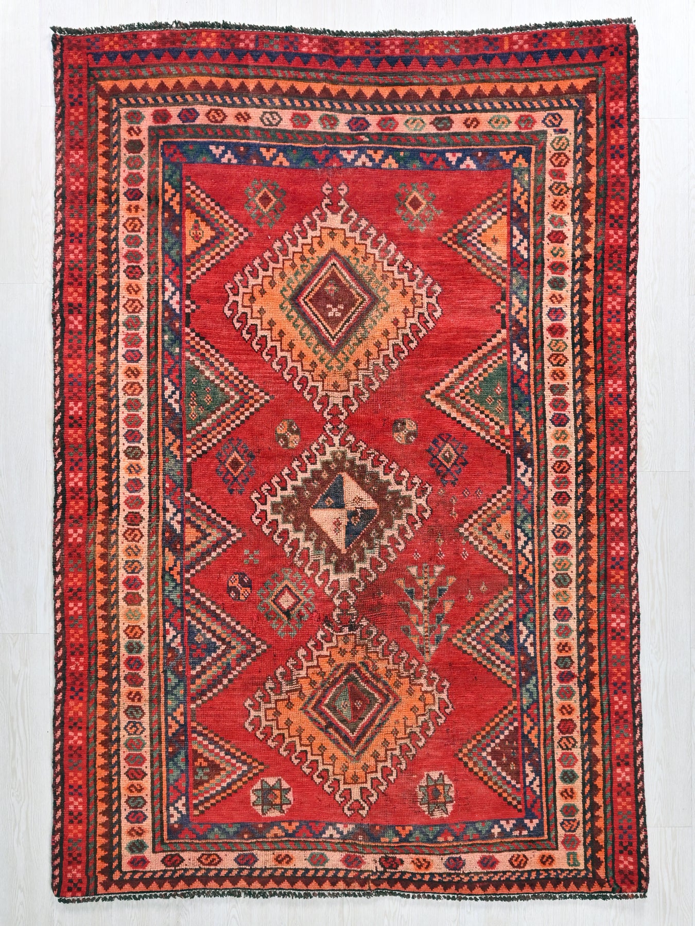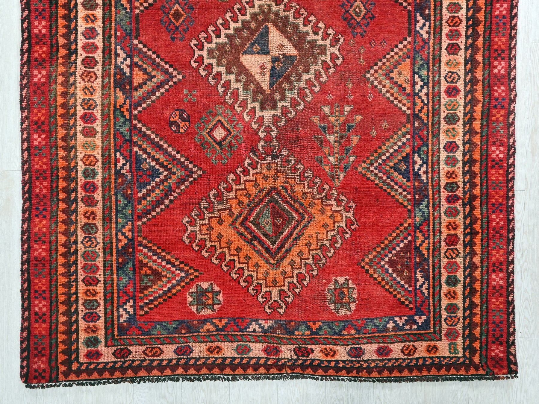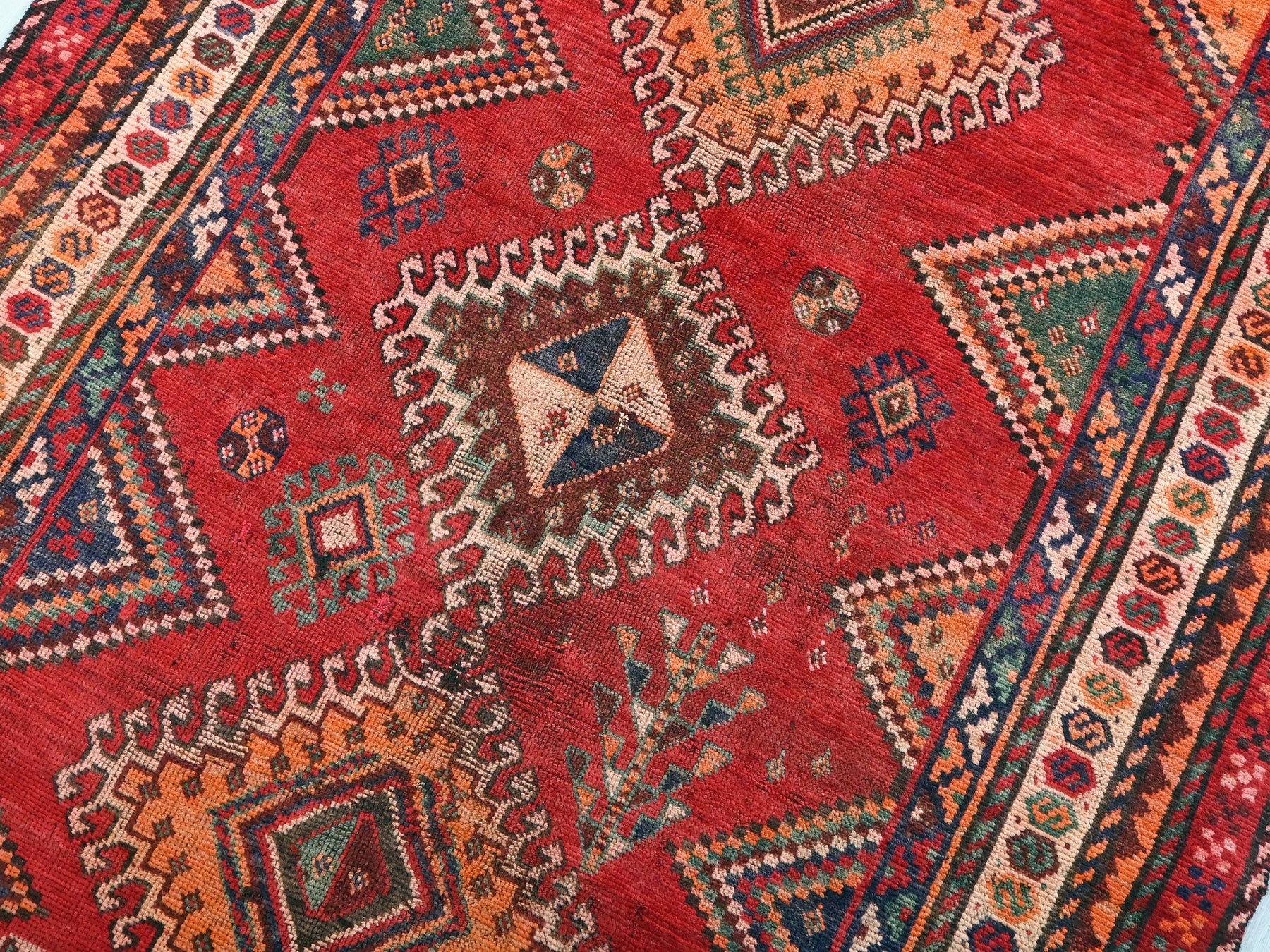 This is a hand-knotted, one-of-a-kind vintage rug. Due to the nature of this piece, there may be slight imperfections in its wear, shape, dimensions, and color. All of our rugs are professionally cleaned and repaired.
