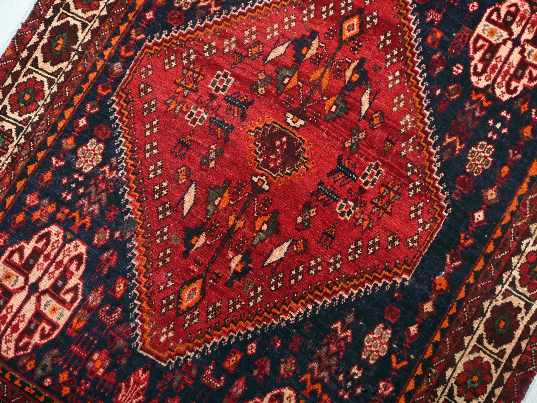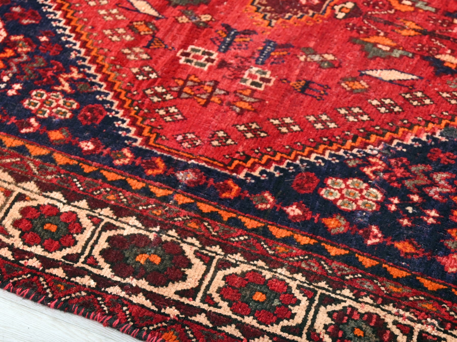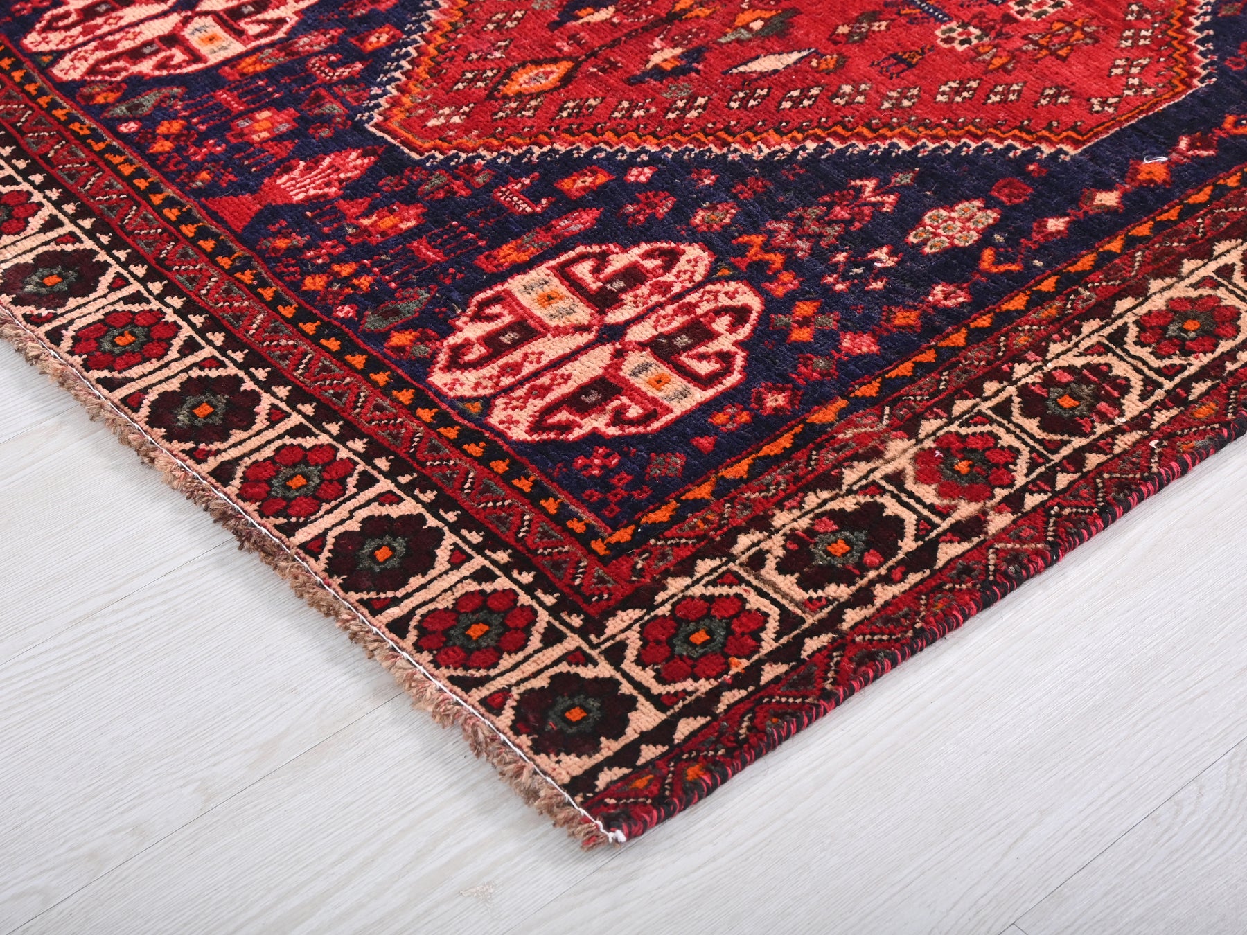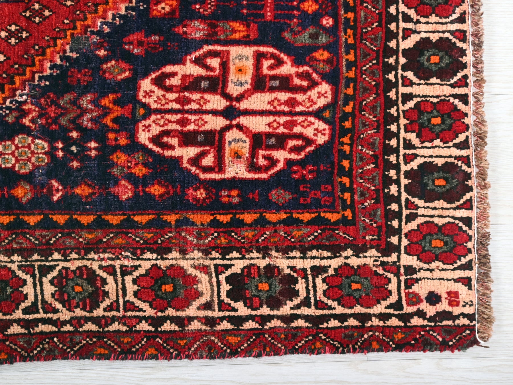 This is a hand-knotted, one-of-a-kind vintage rug. Due to the nature of this piece, there may be slight imperfections in its wear, shape, dimensions, and color. All of our rugs are professionally cleaned and repaired.