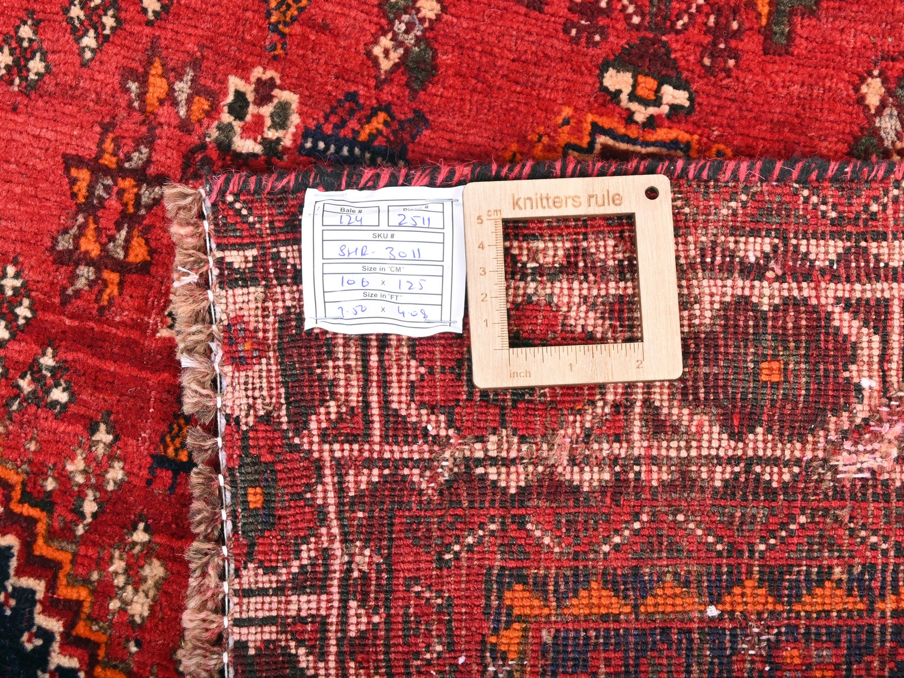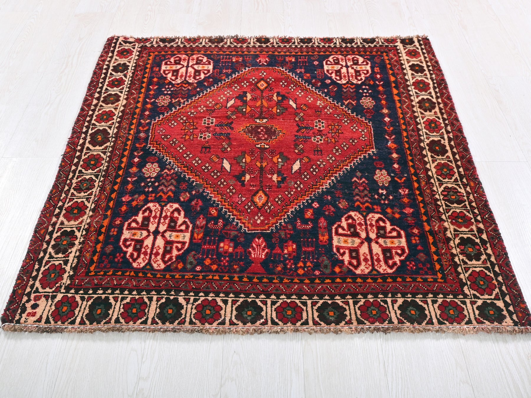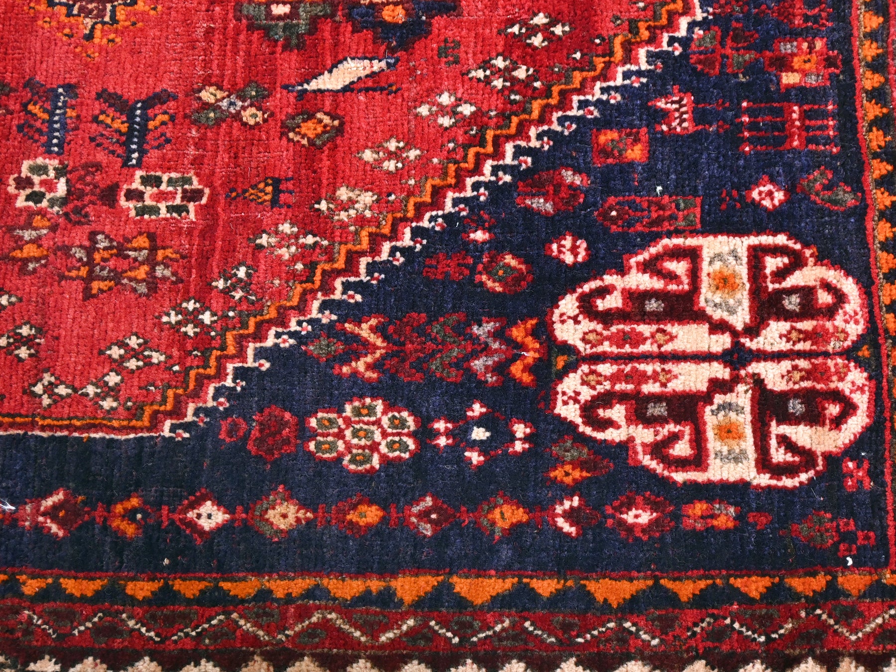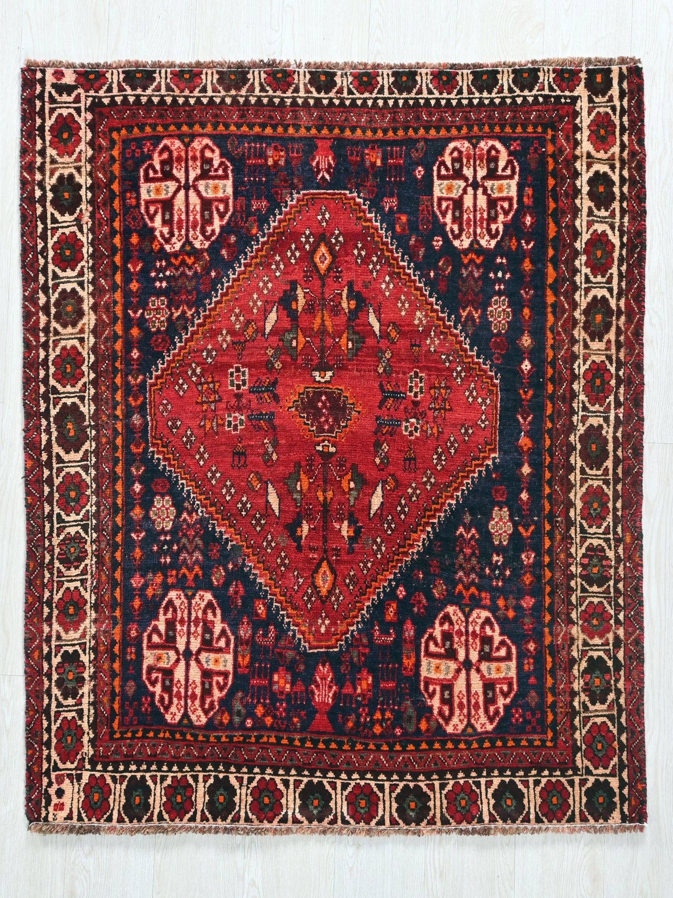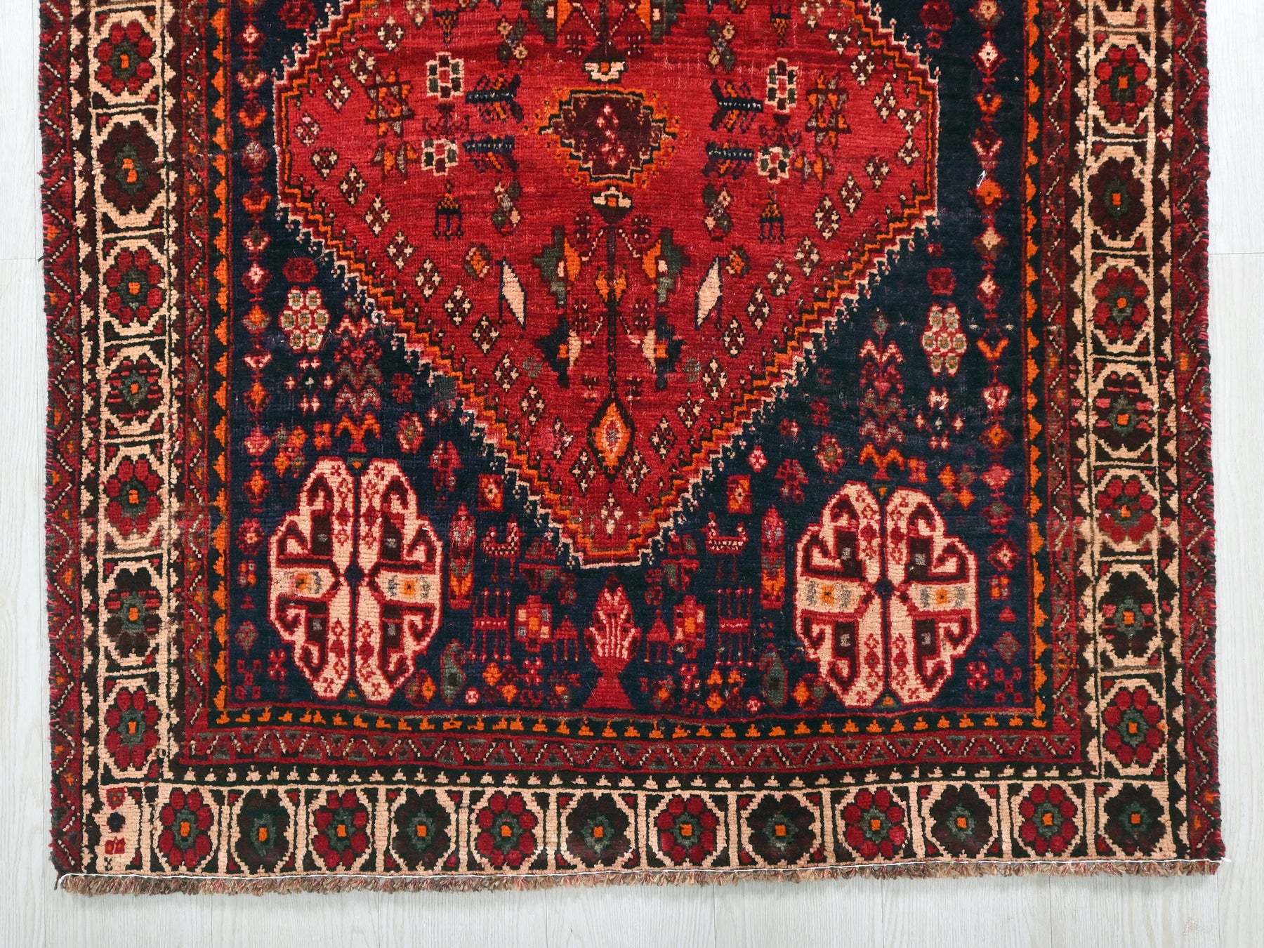 This is a hand-knotted, one-of-a-kind vintage rug. Due to the nature of this piece, there may be slight imperfections in its wear, shape, dimensions, and color. All of our rugs are professionally cleaned and repaired.