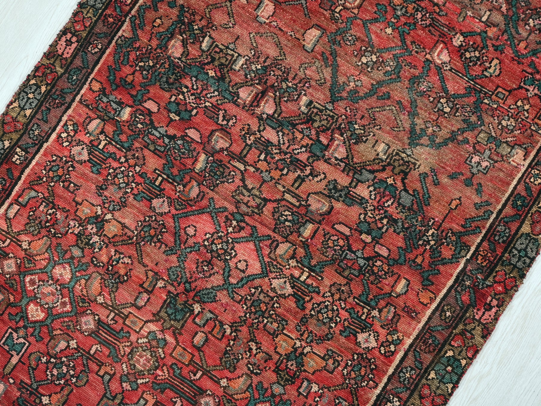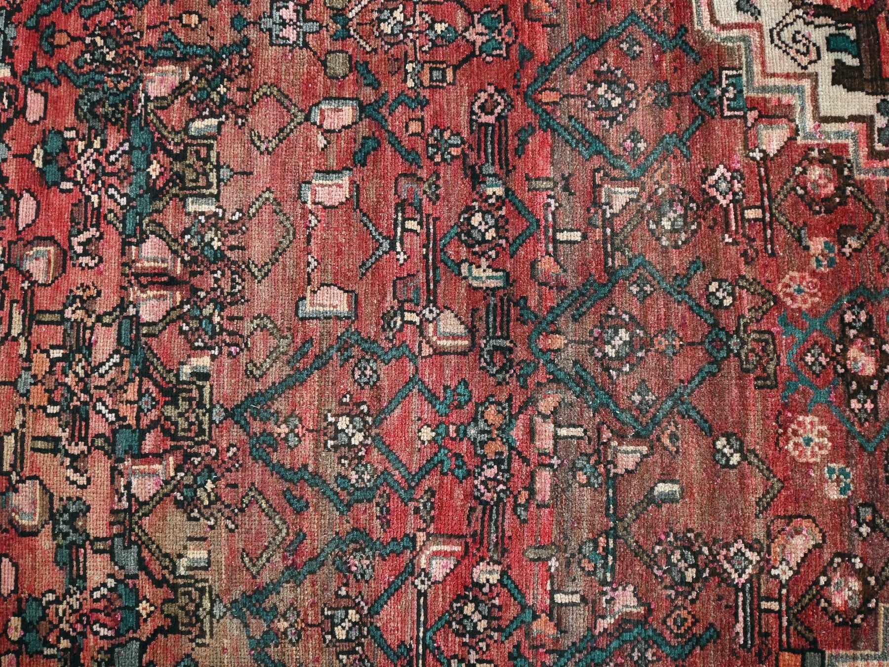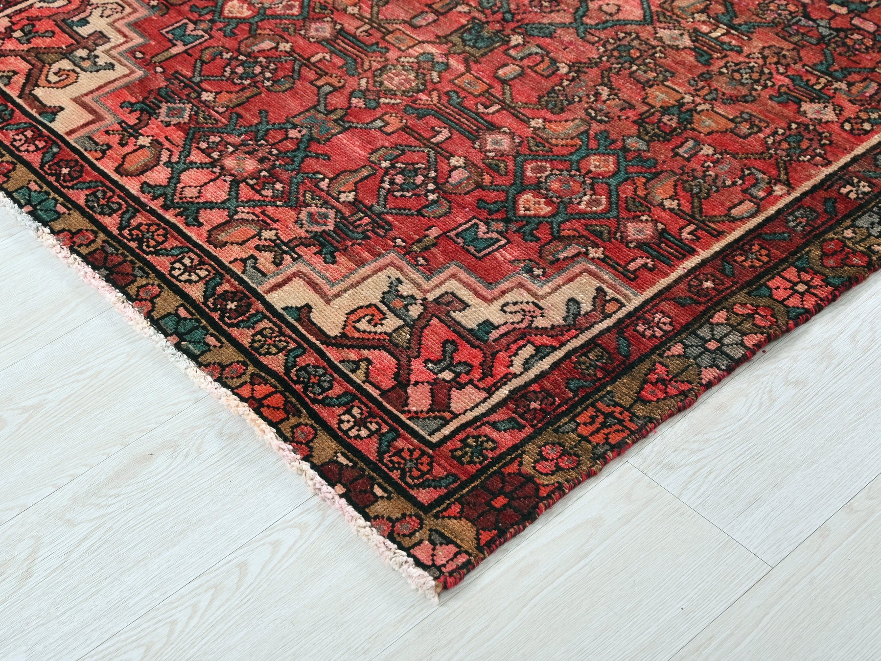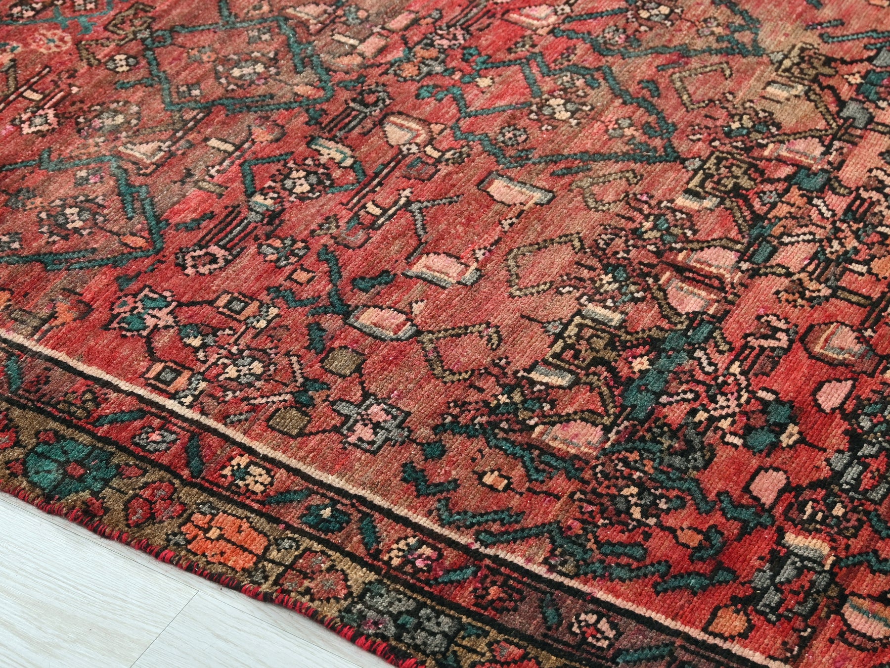 This is a hand-knotted, one-of-a-kind vintage rug. Due to the nature of this piece, there may be slight imperfections in its wear, shape, dimensions, and color. All of our rugs are professionally cleaned and repaired.