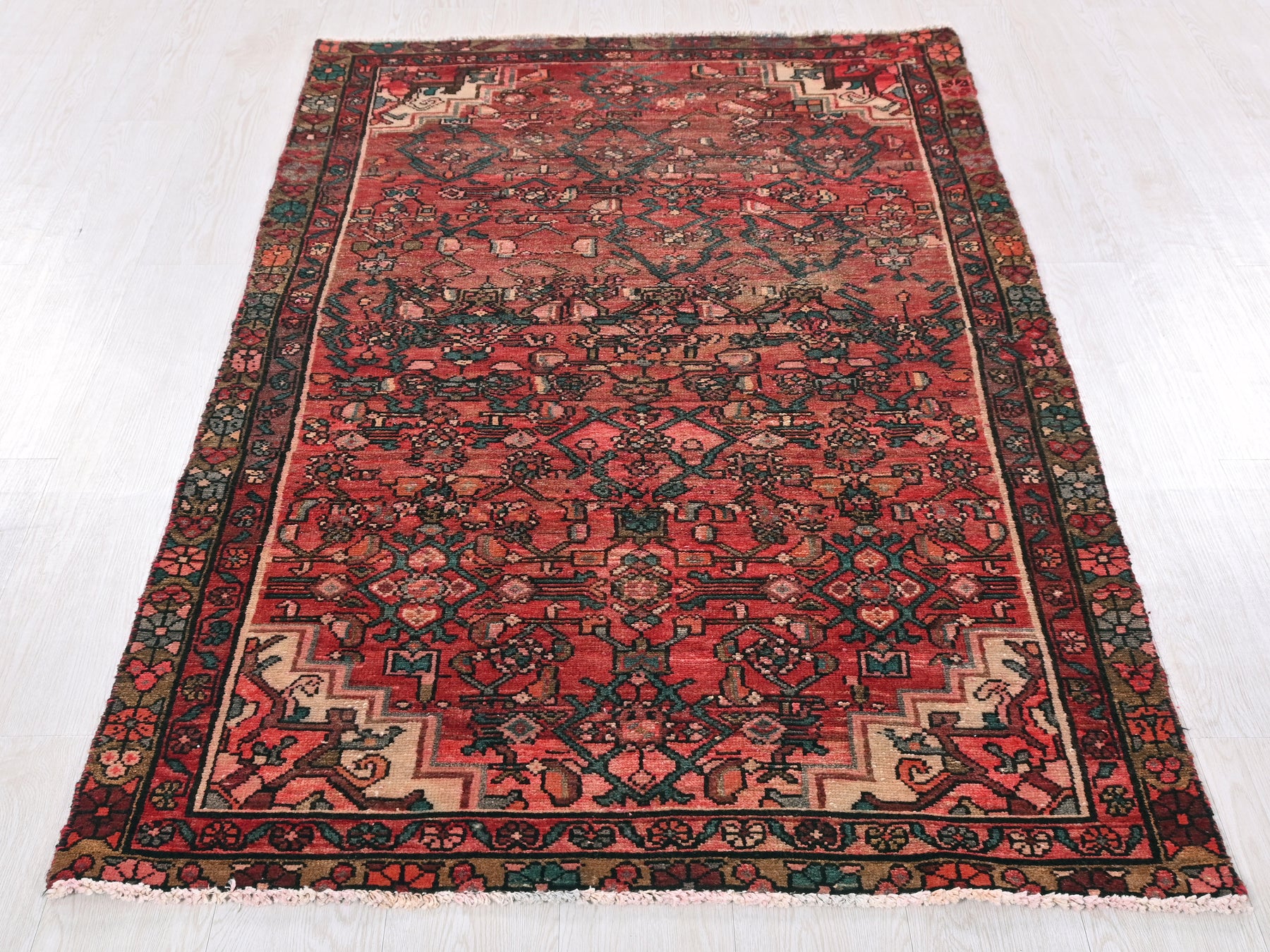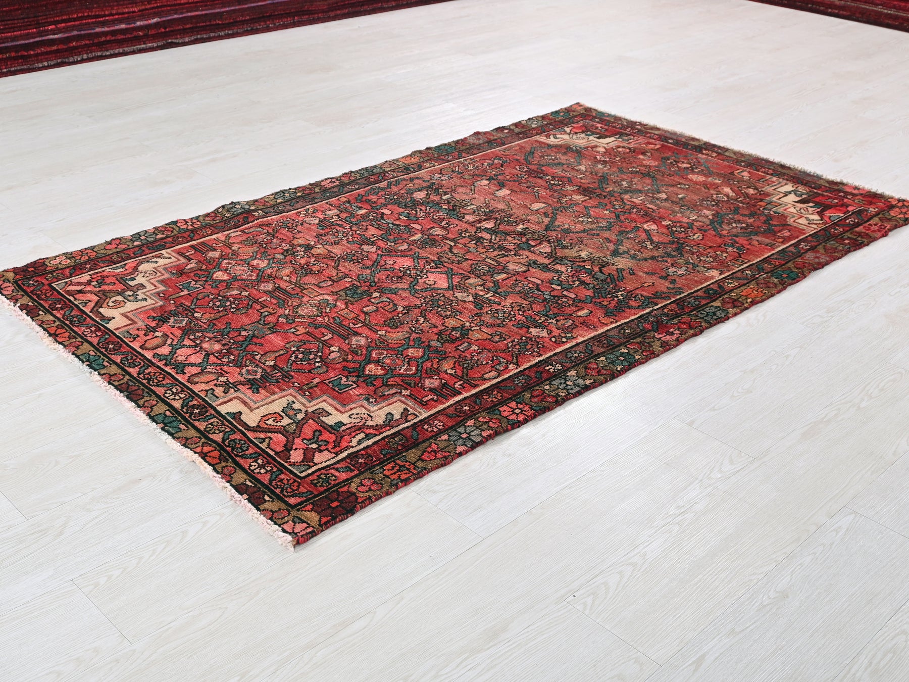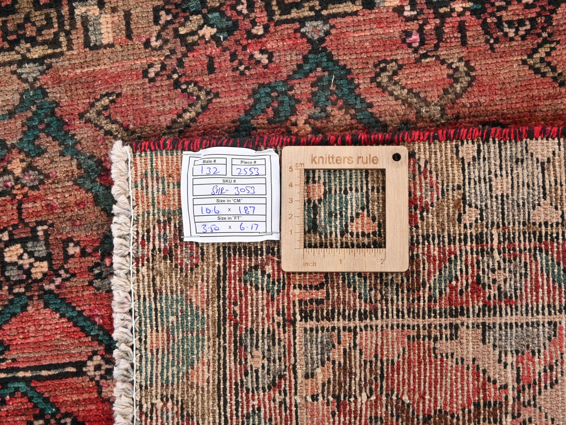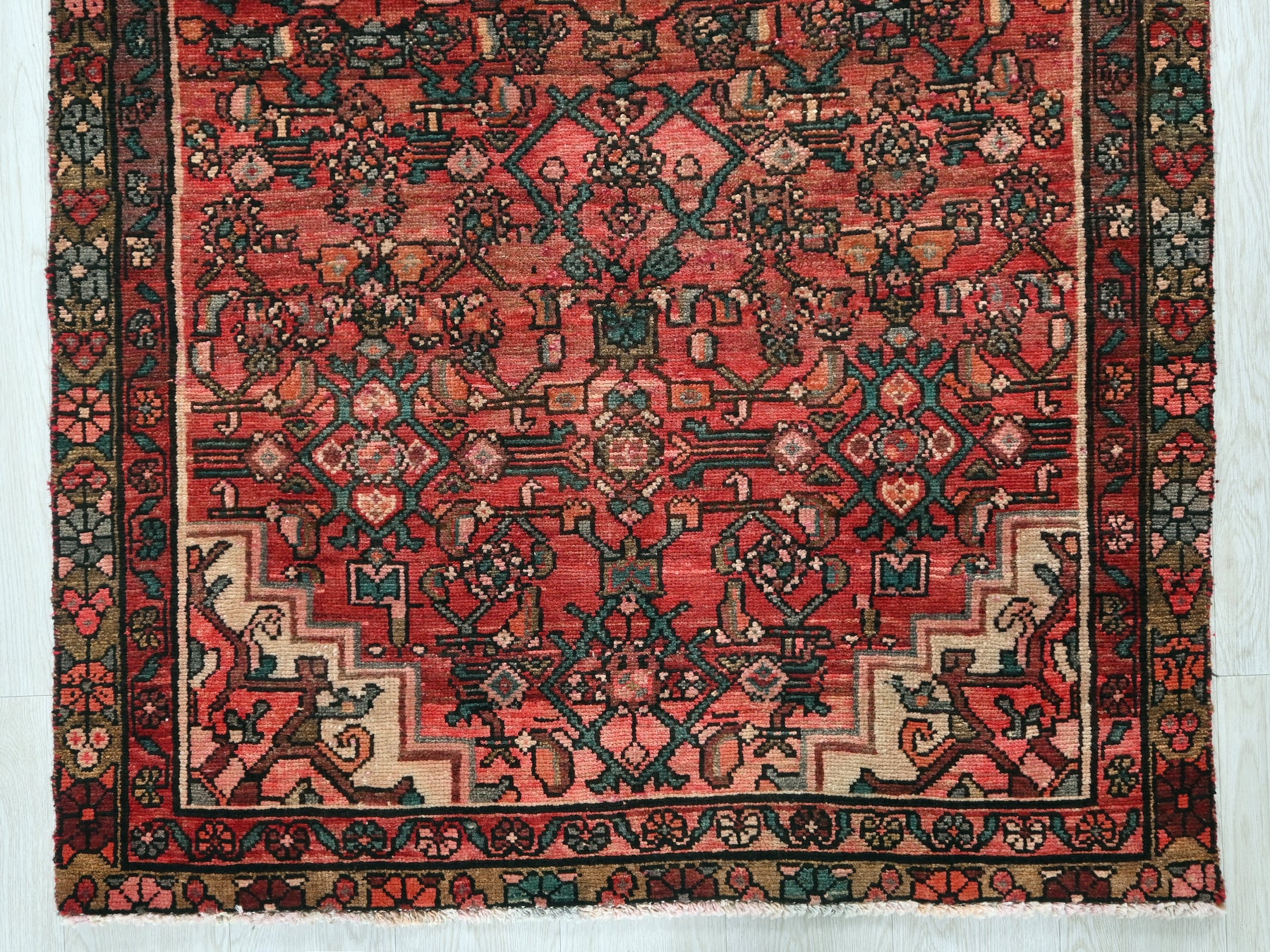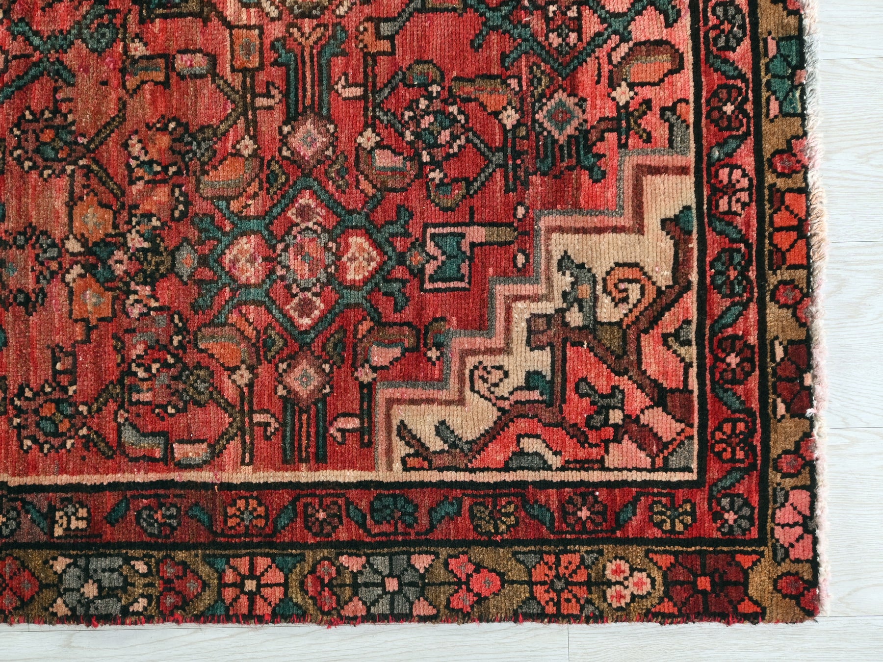 This is a hand-knotted, one-of-a-kind vintage rug. Due to the nature of this piece, there may be slight imperfections in its wear, shape, dimensions, and color. All of our rugs are professionally cleaned and repaired.