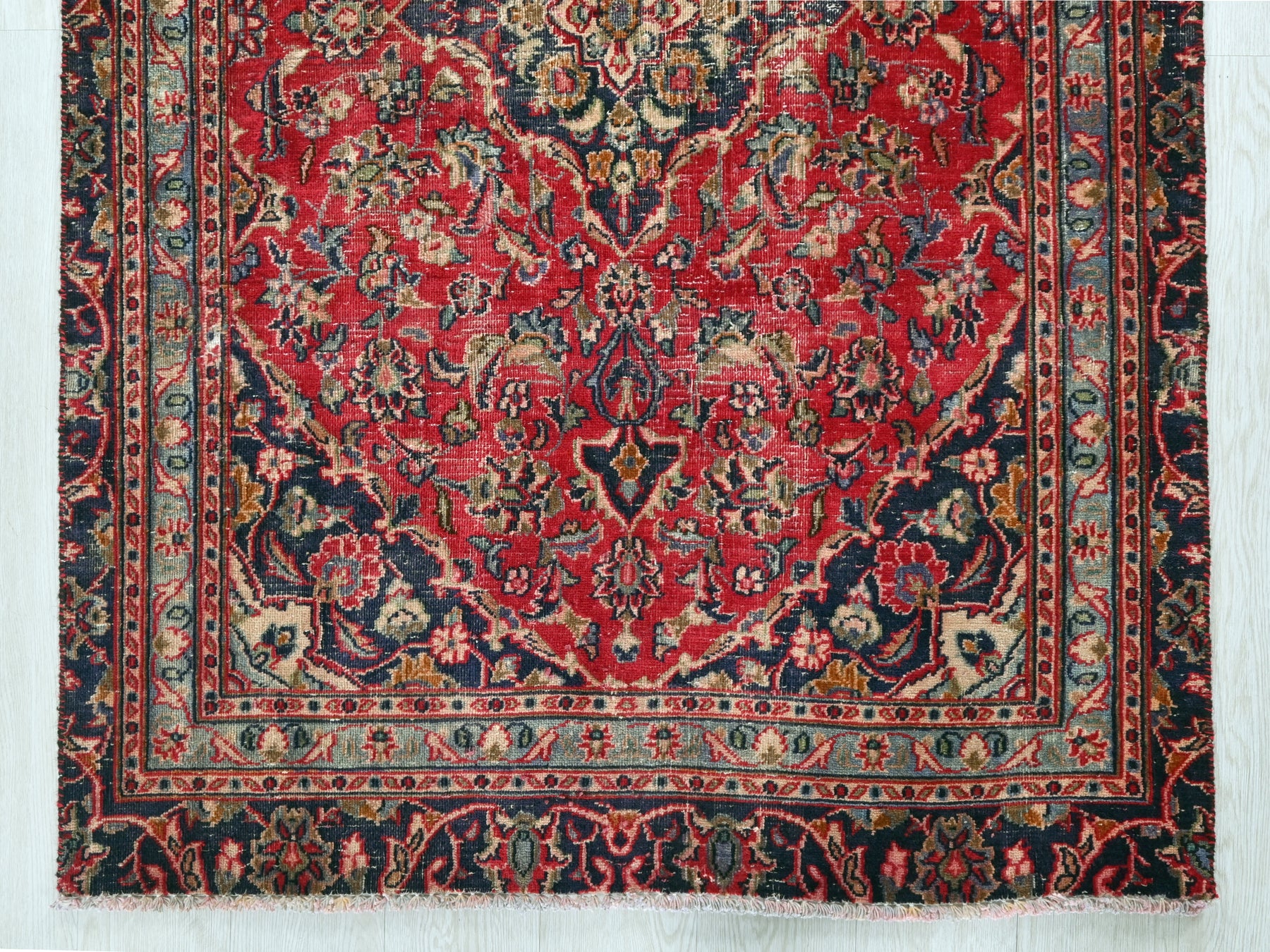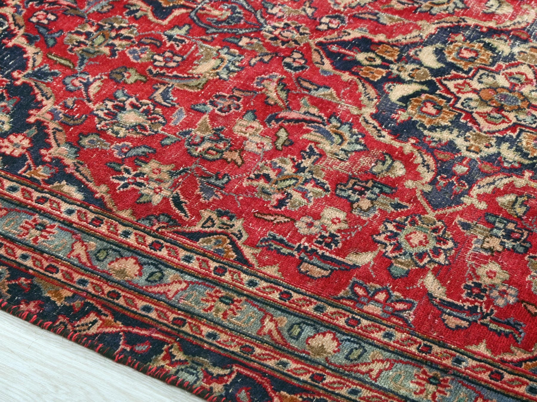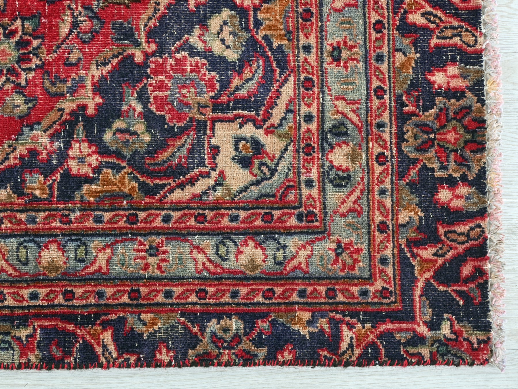 This is a hand-knotted, one-of-a-kind vintage rug. Due to the nature of this piece, there may be slight imperfections in its wear, shape, dimensions, and color. All of our rugs are professionally cleaned and repaired.