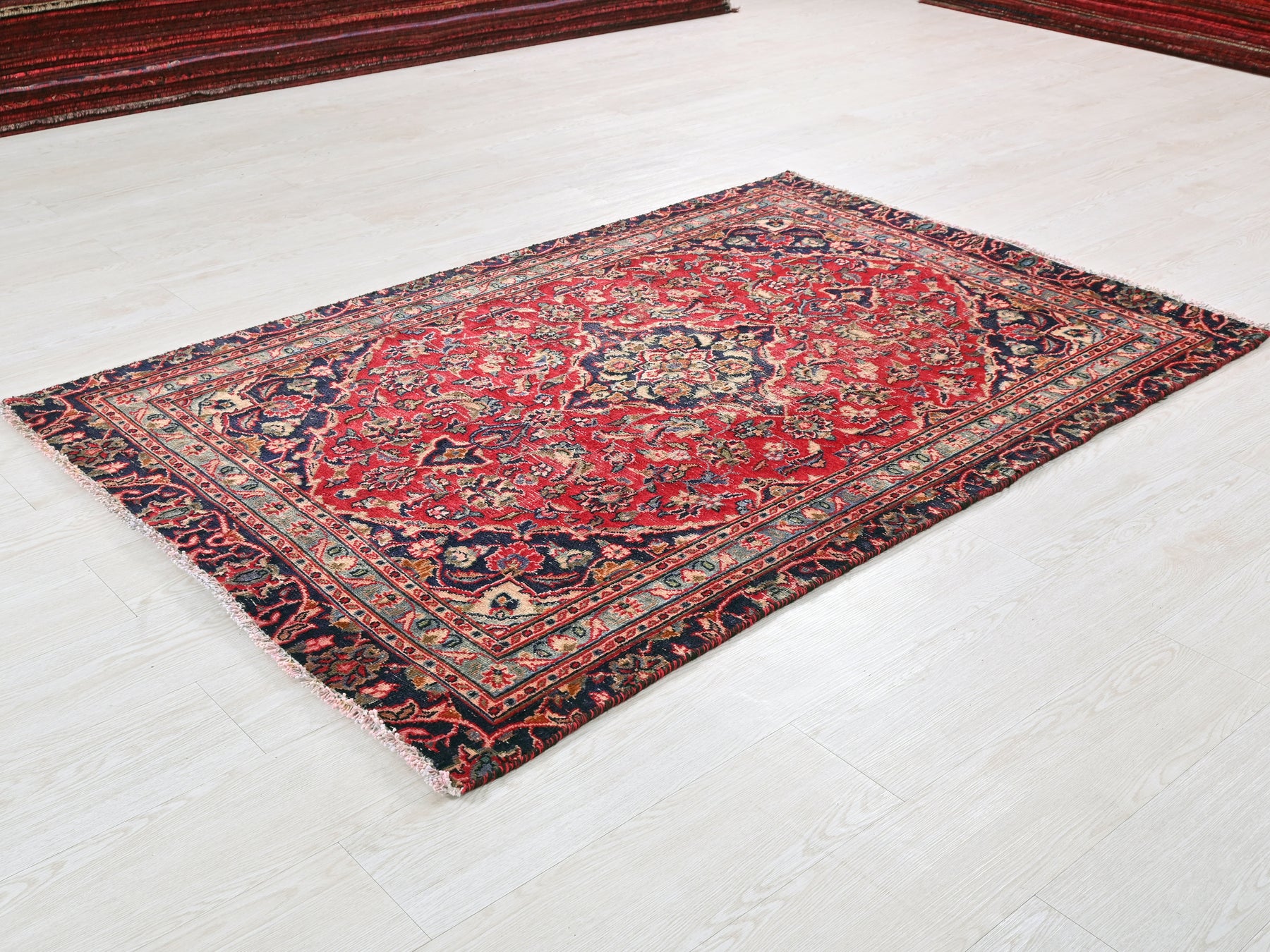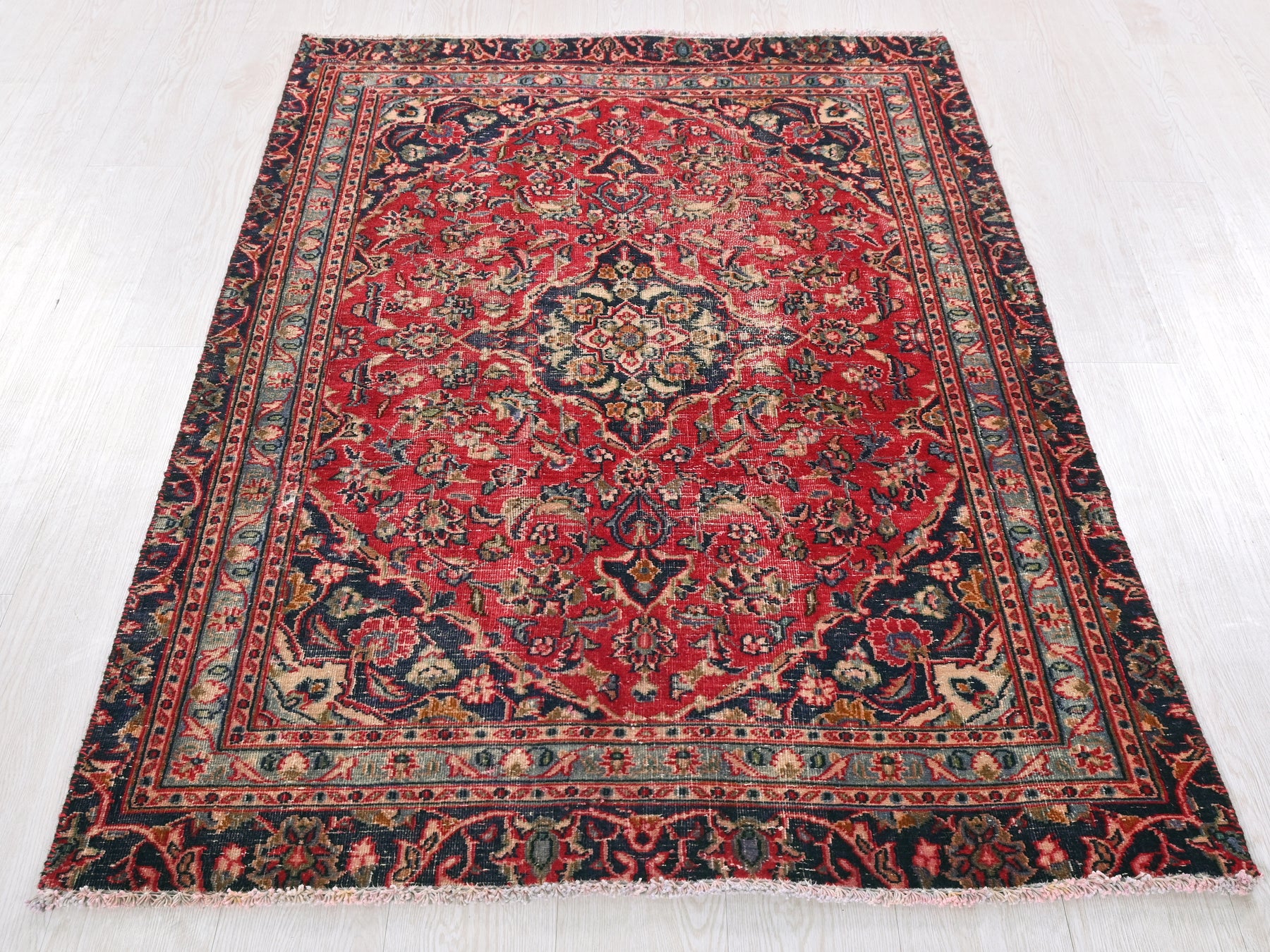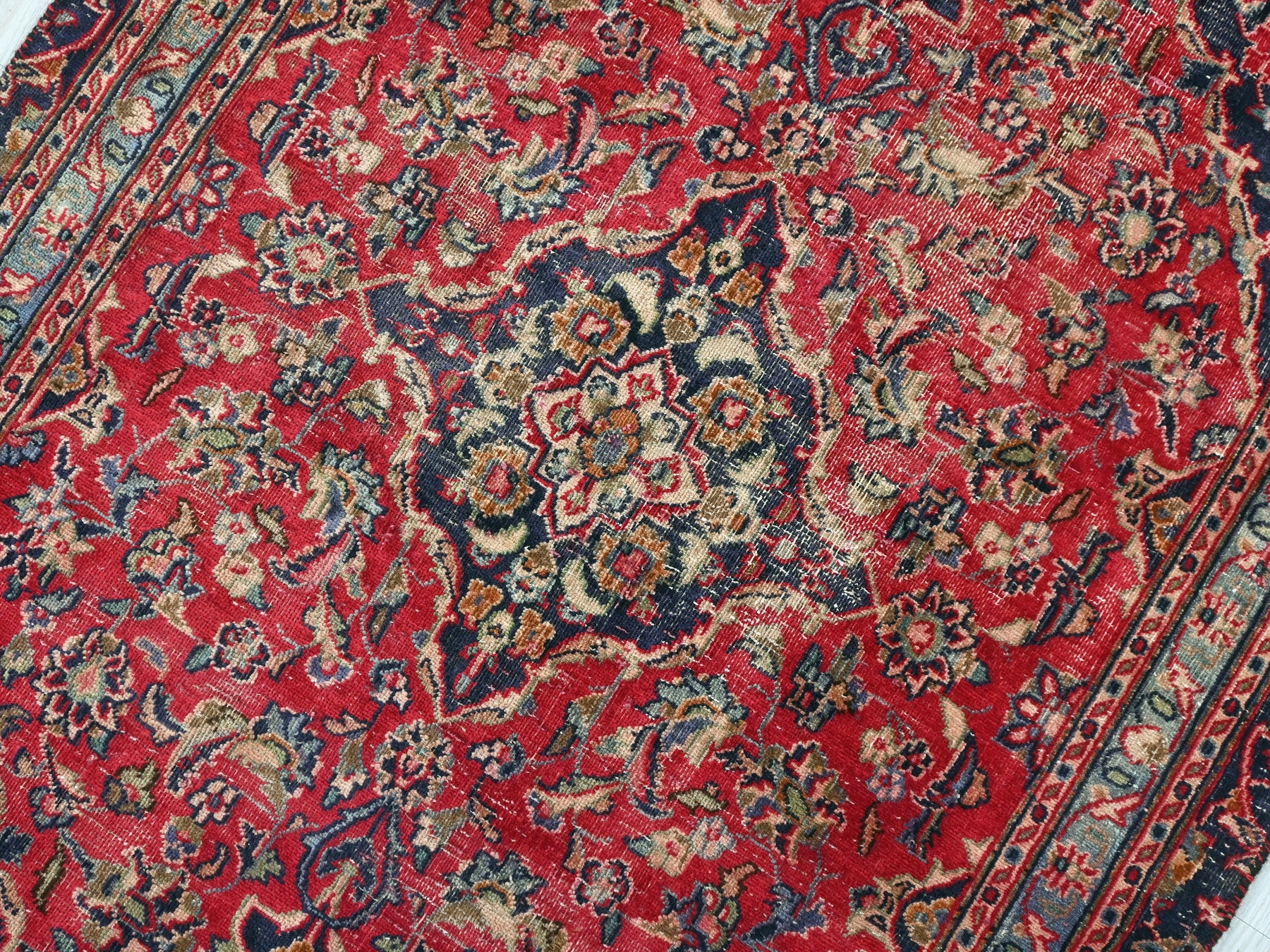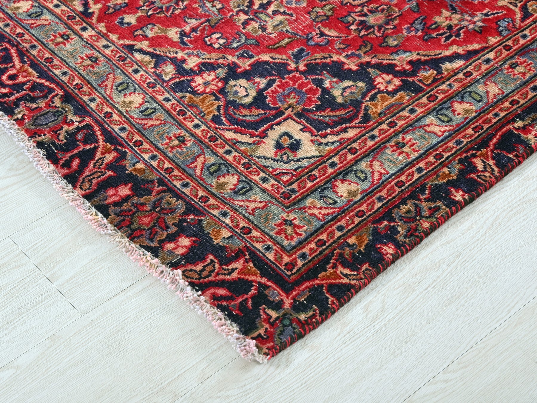 This is a hand-knotted, one-of-a-kind vintage rug. Due to the nature of this piece, there may be slight imperfections in its wear, shape, dimensions, and color. All of our rugs are professionally cleaned and repaired.