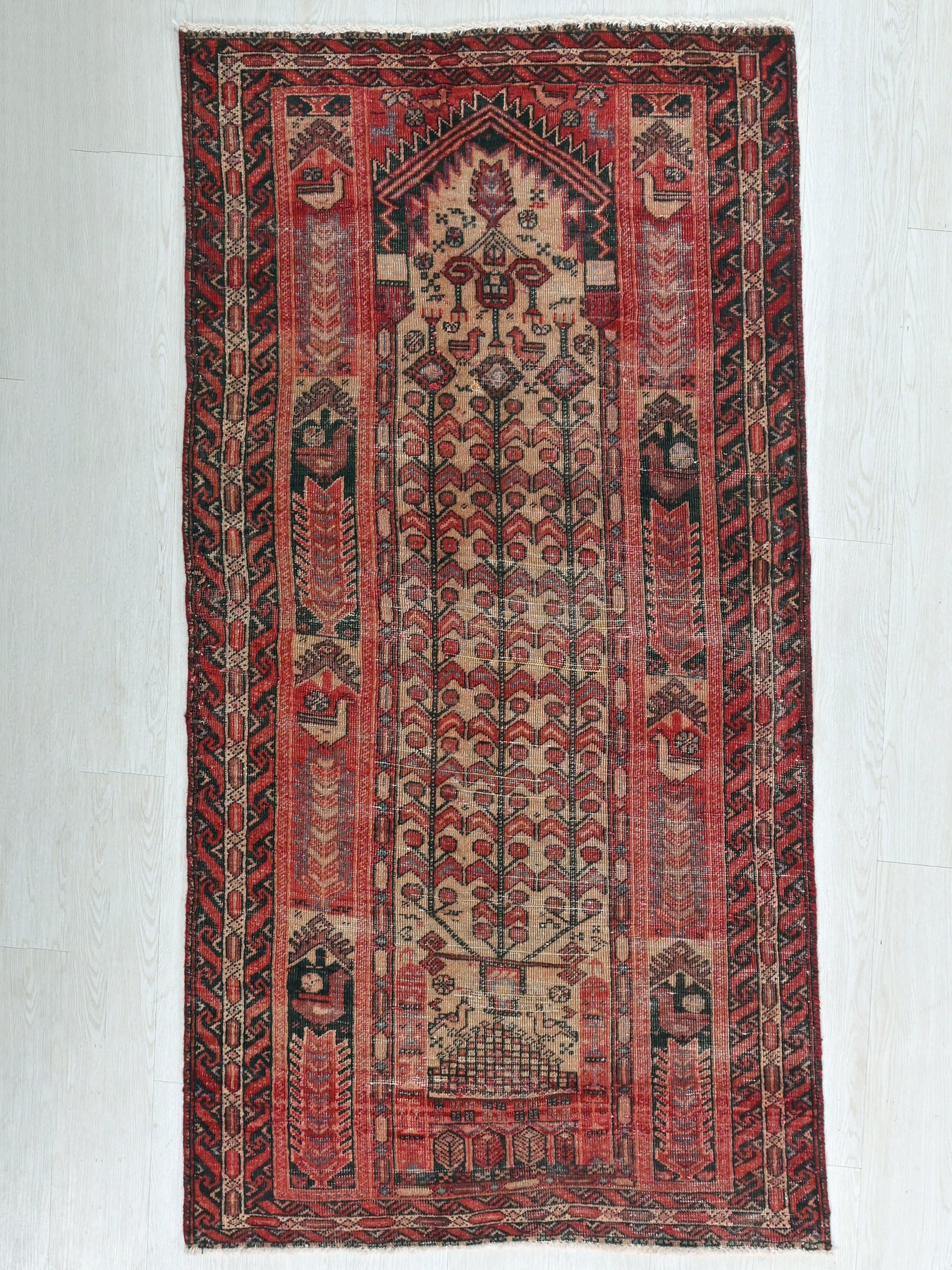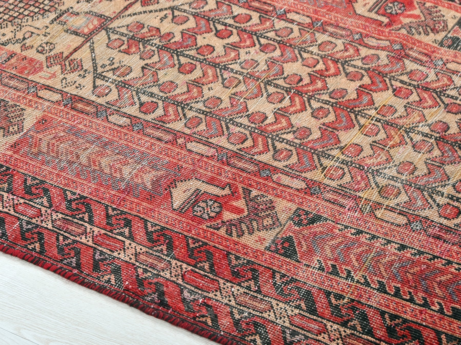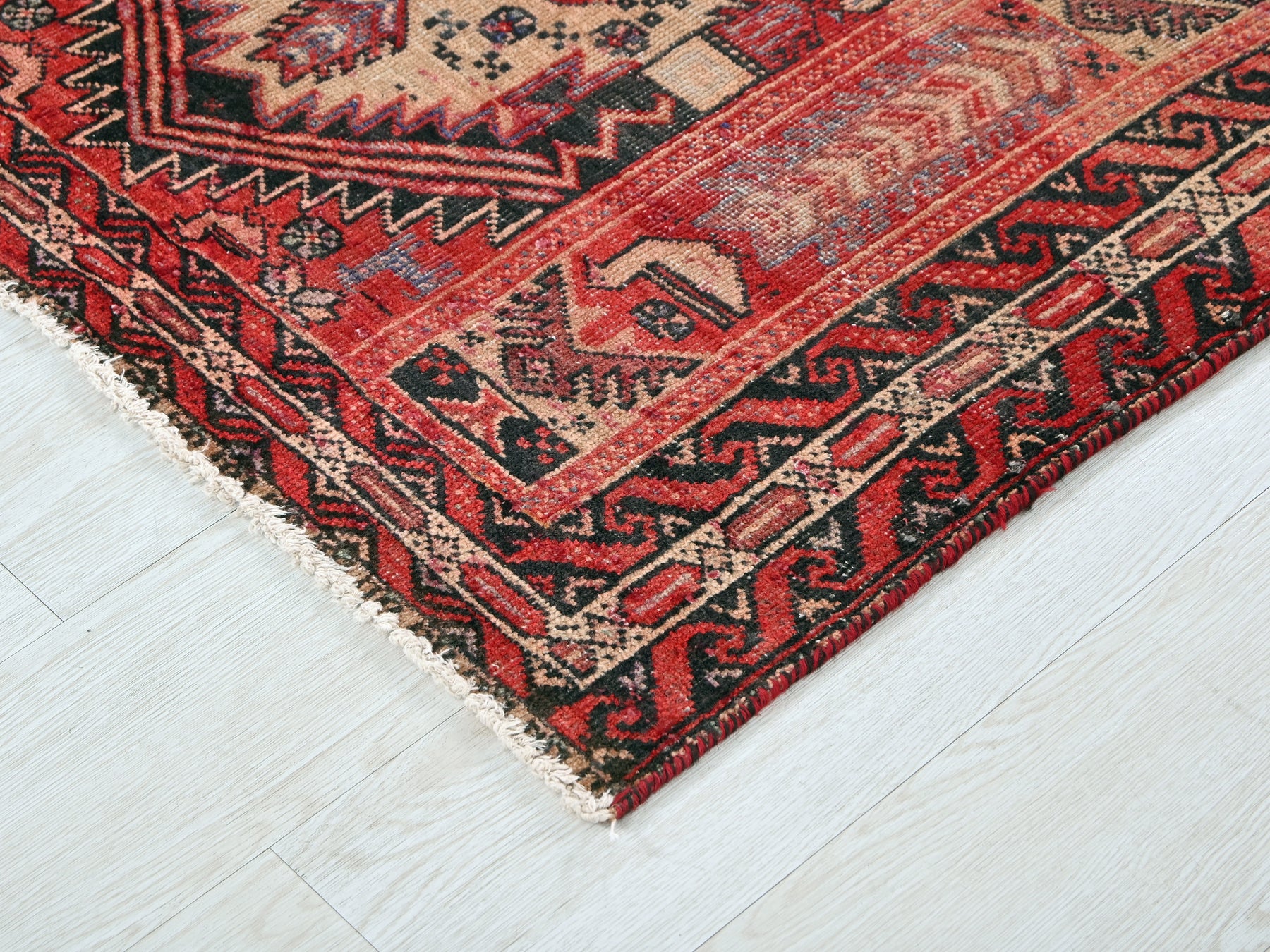 This is a hand-knotted, one-of-a-kind vintage rug. Due to the nature of this piece, there may be slight imperfections in its wear, shape, dimensions, and color. All of our rugs are professionally cleaned and repaired.