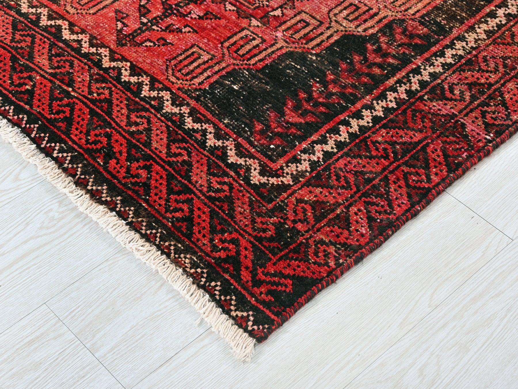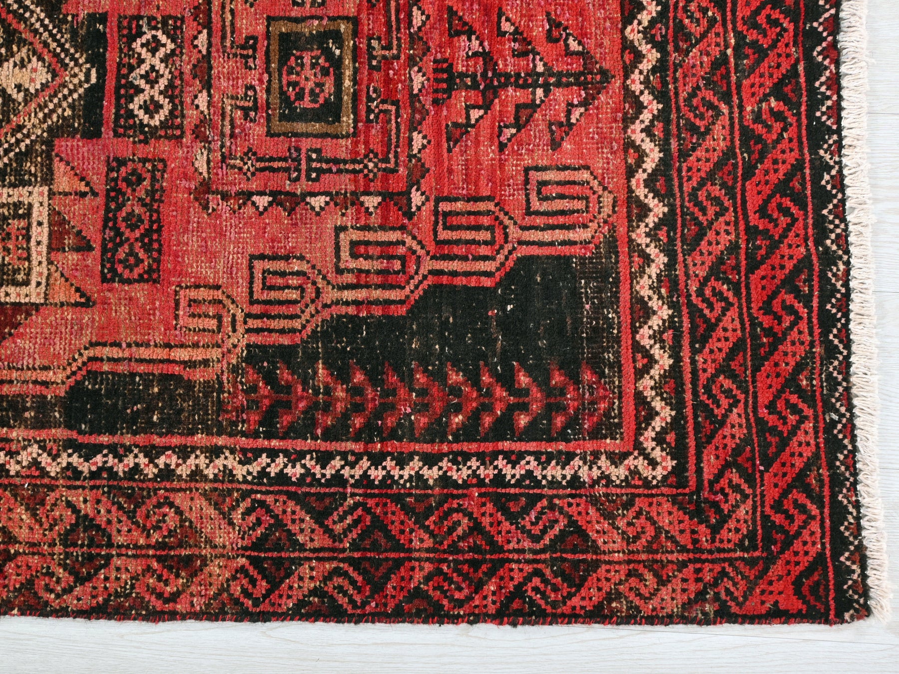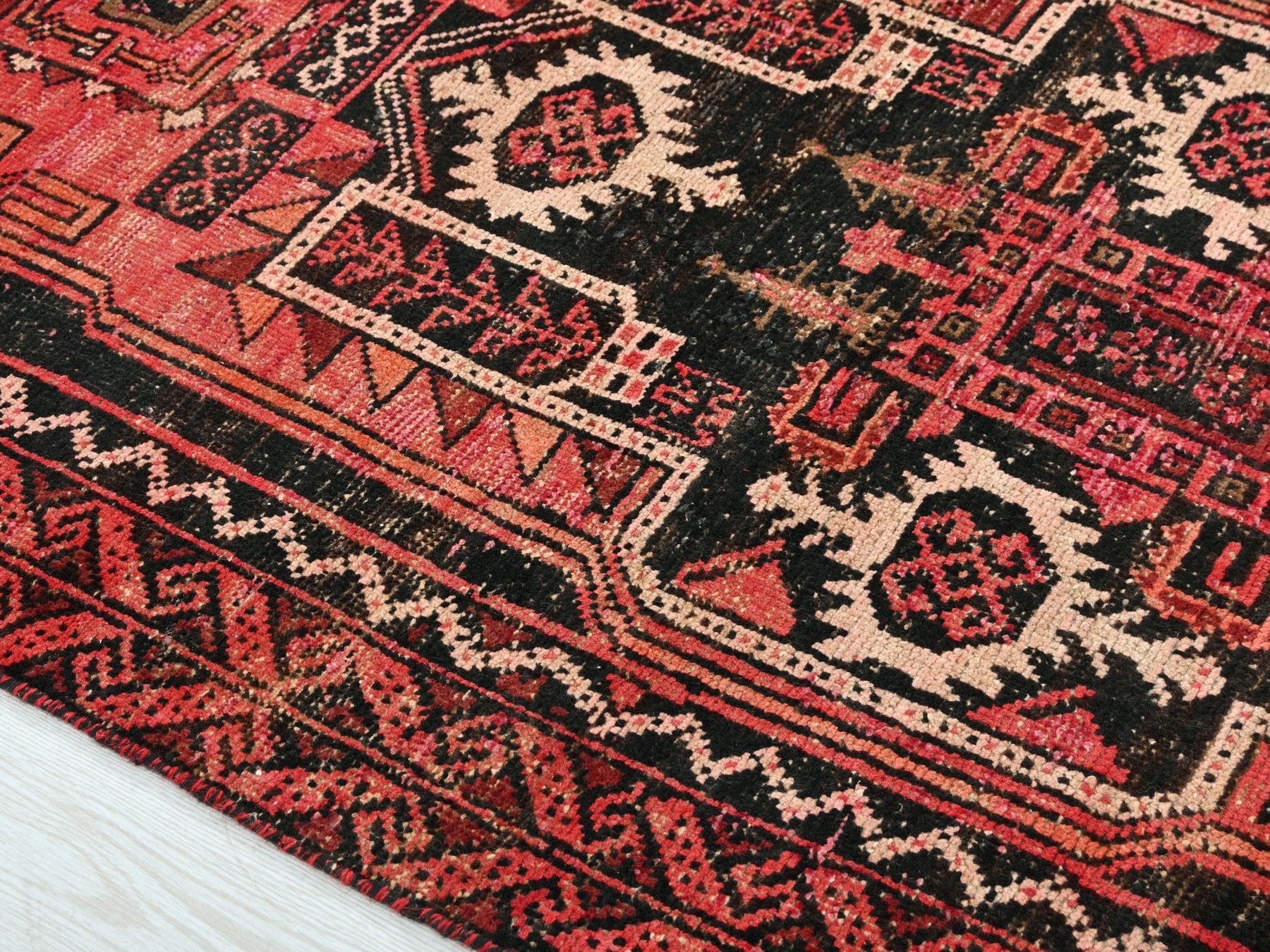 This is a hand-knotted, one-of-a-kind vintage rug. Due to the nature of this piece, there may be slight imperfections in its wear, shape, dimensions, and color. All of our rugs are professionally cleaned and repaired.