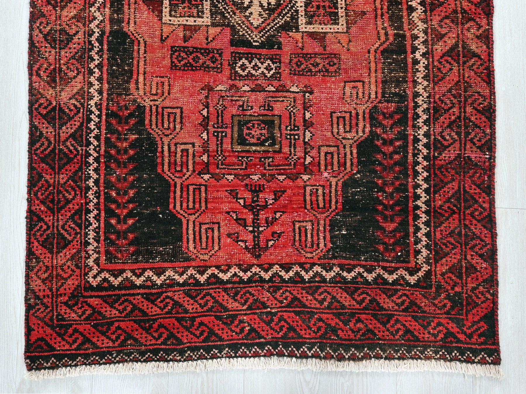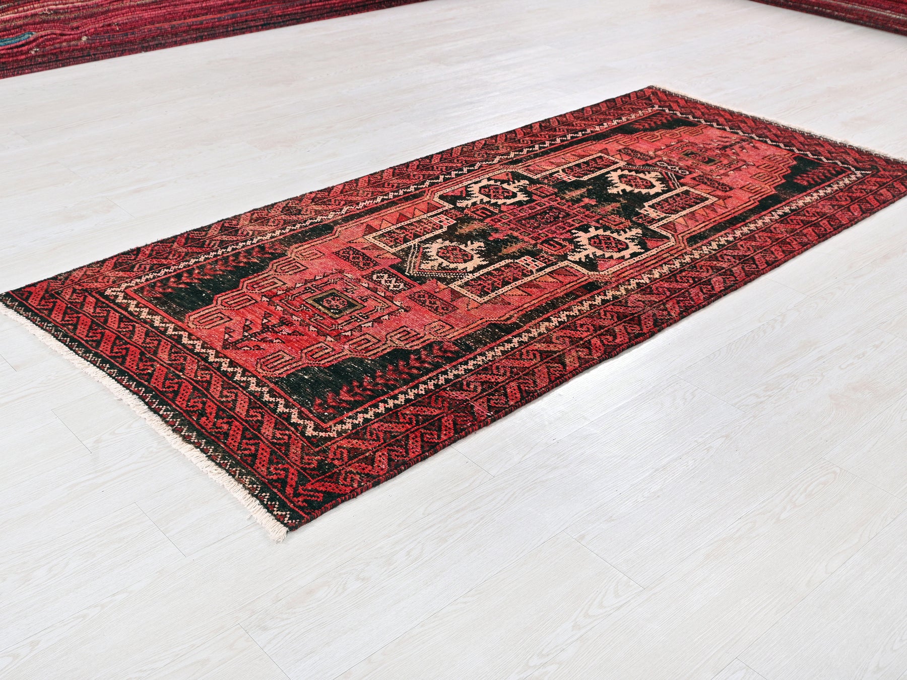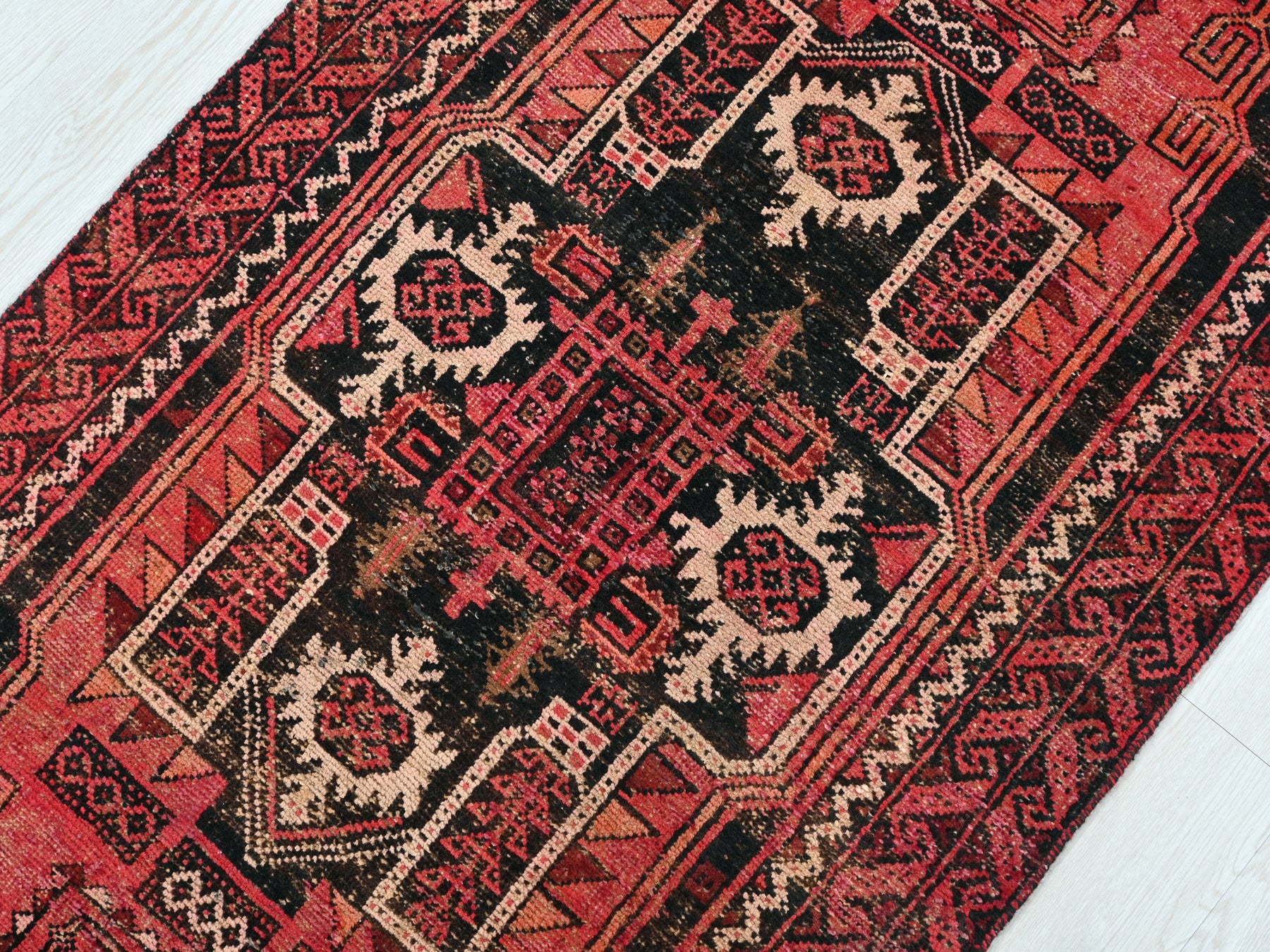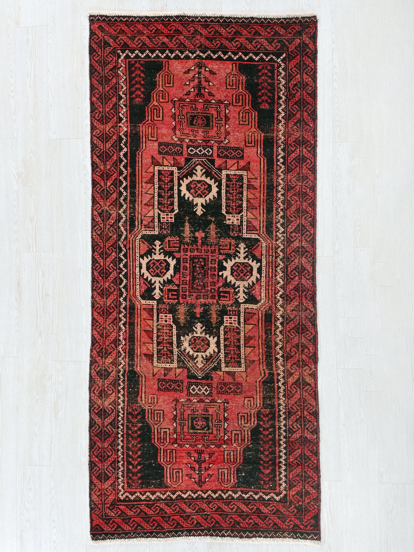 This is a hand-knotted, one-of-a-kind vintage rug. Due to the nature of this piece, there may be slight imperfections in its wear, shape, dimensions, and color. All of our rugs are professionally cleaned and repaired.