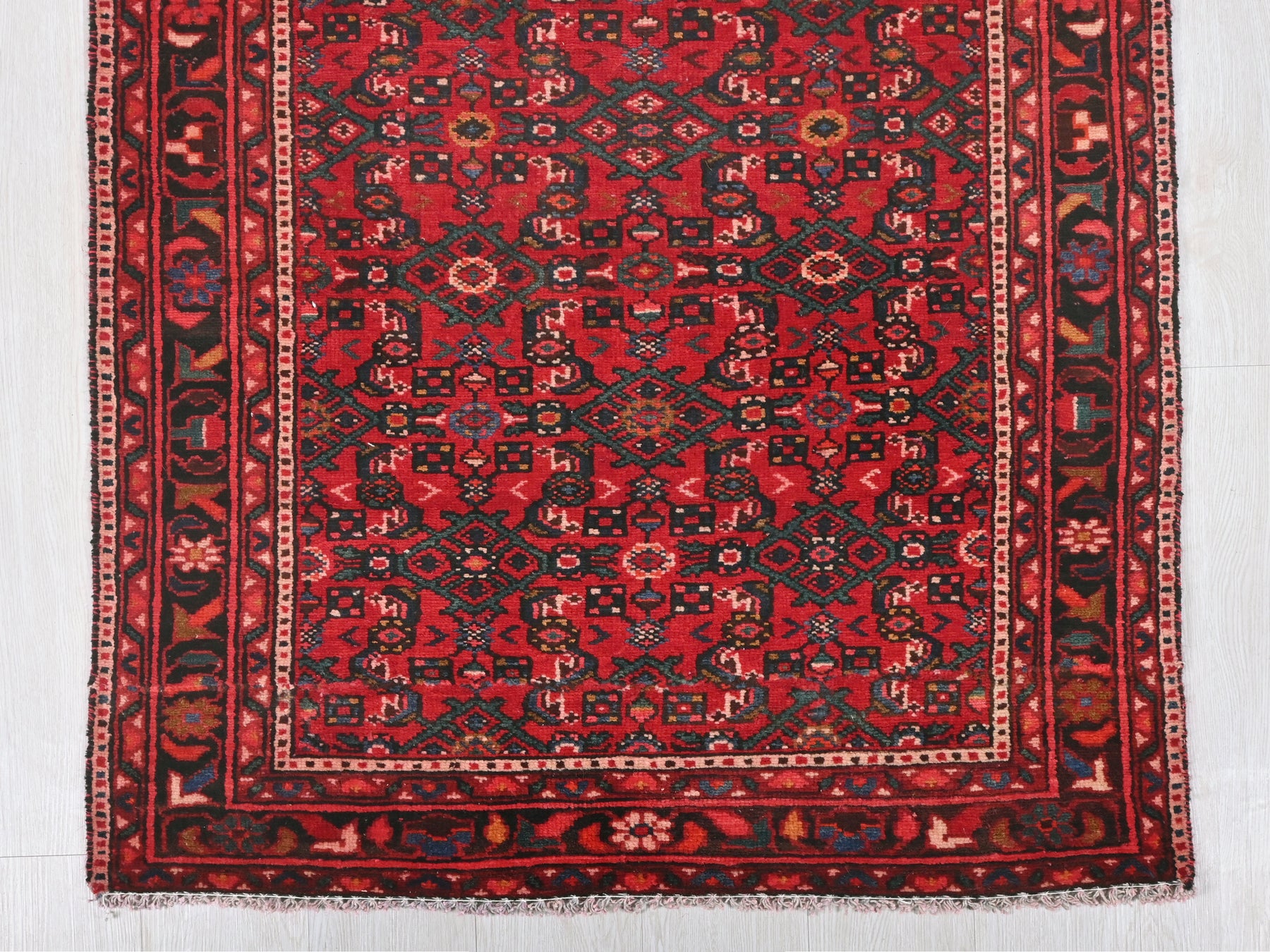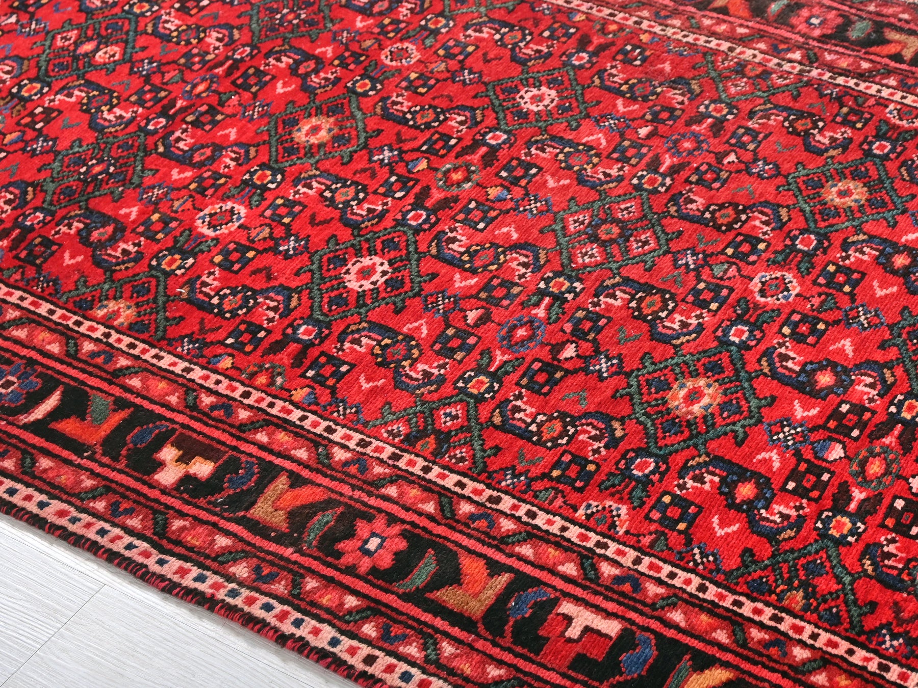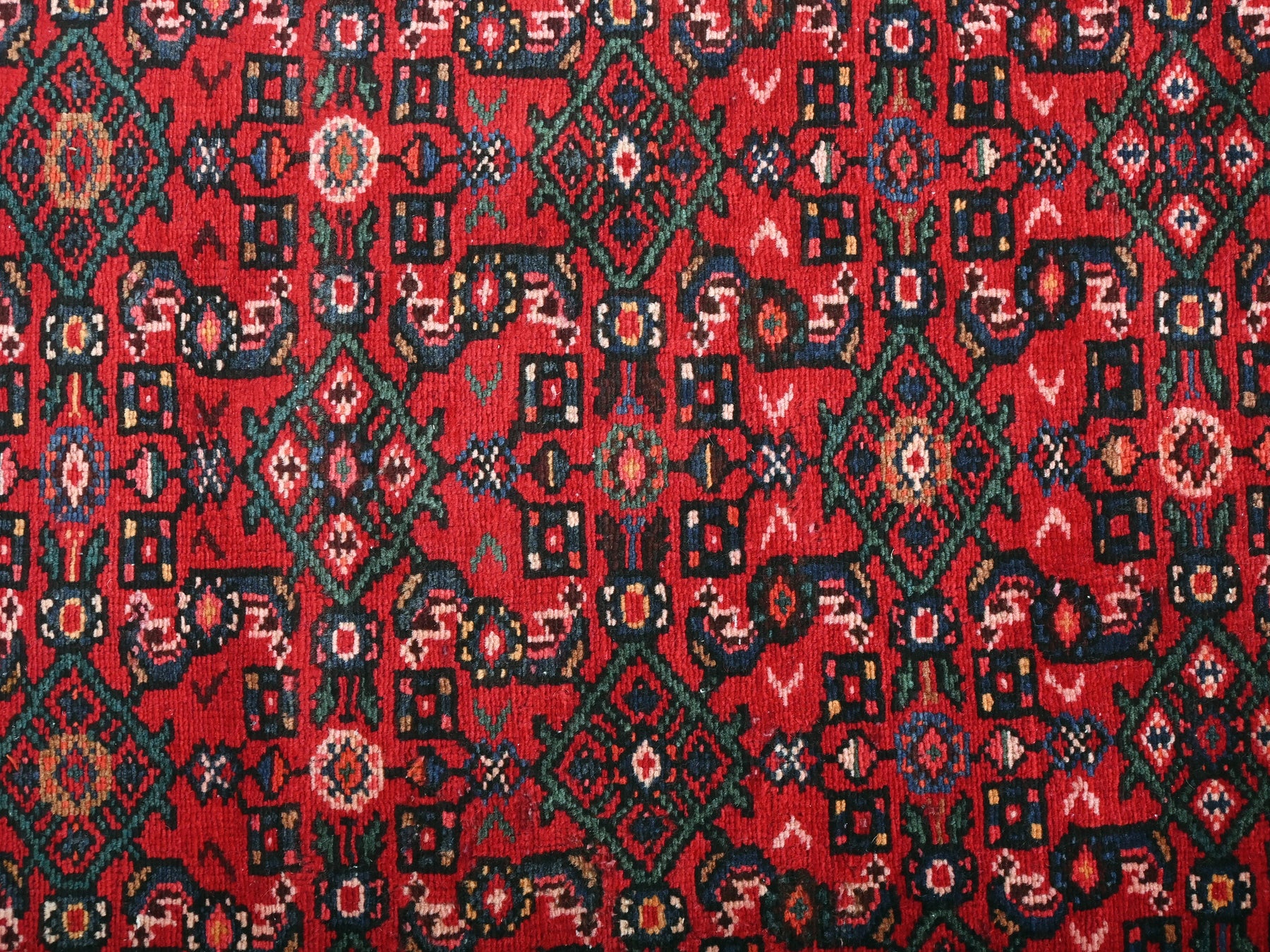 This is a hand-knotted, one-of-a-kind vintage rug. Due to the nature of this piece, there may be slight imperfections in its wear, shape, dimensions, and color. All of our rugs are professionally cleaned and repaired.