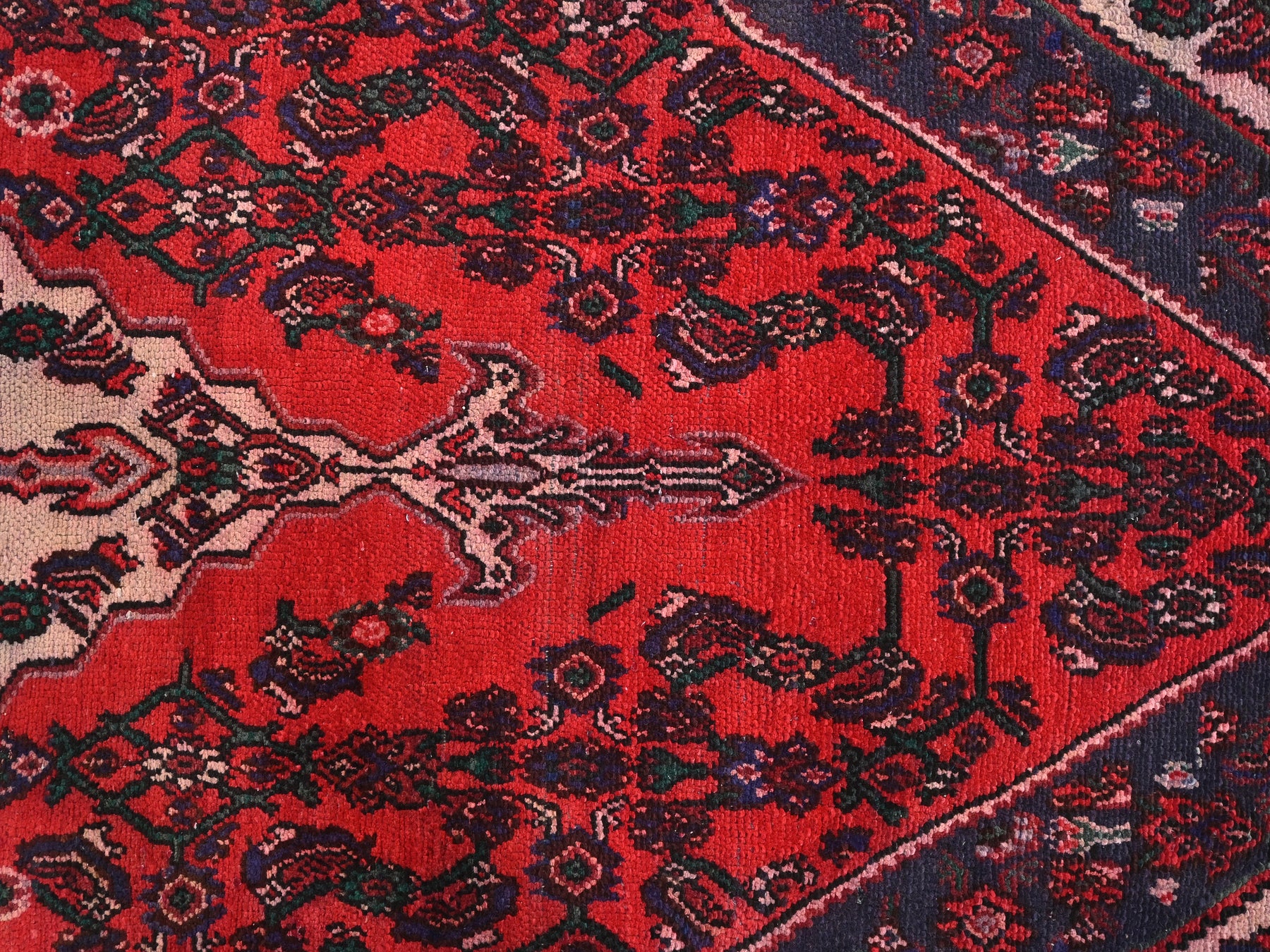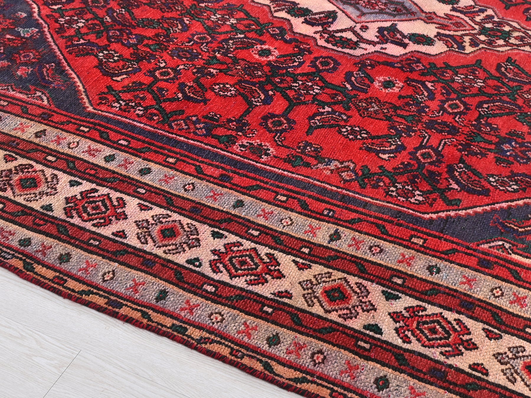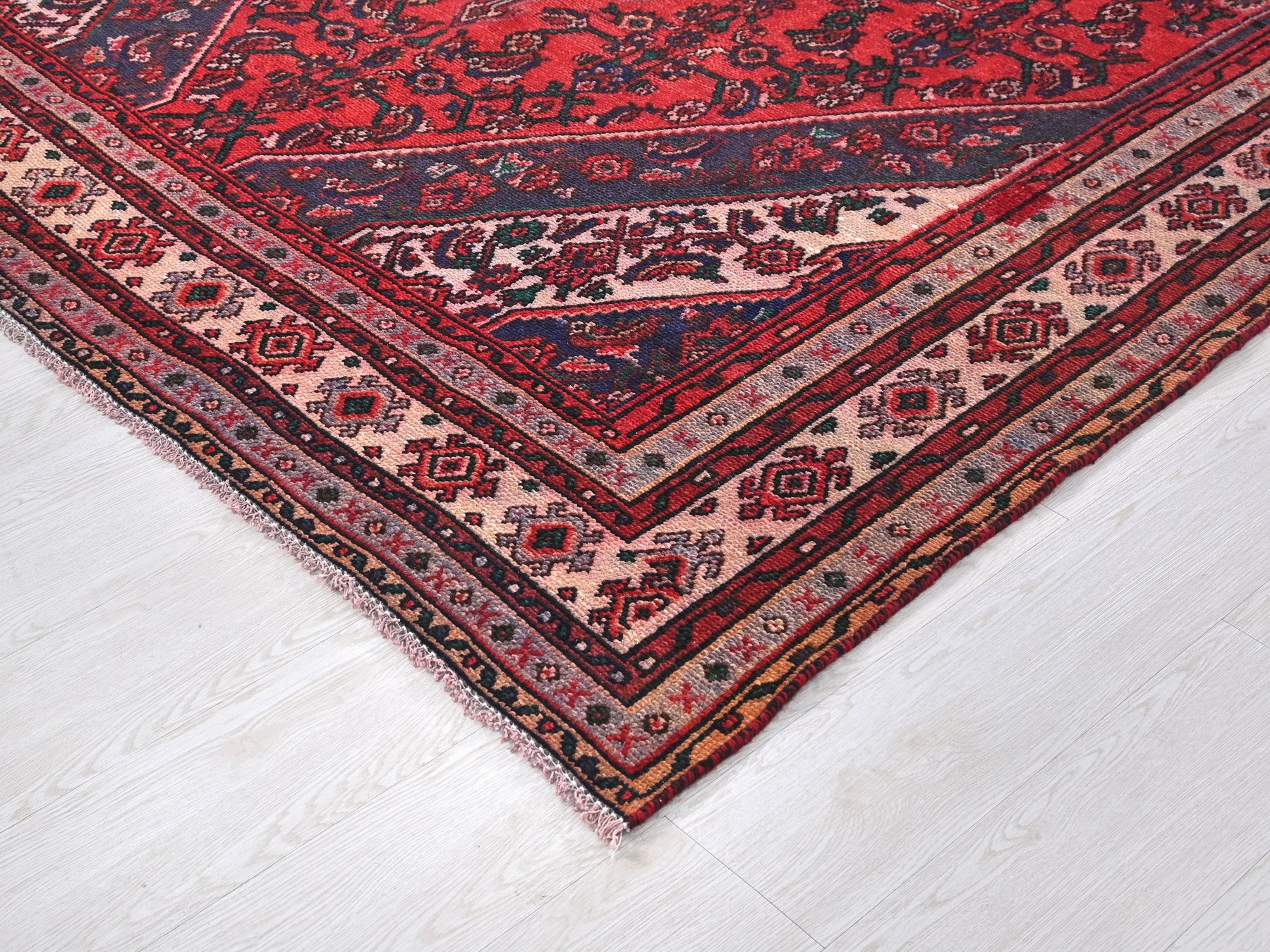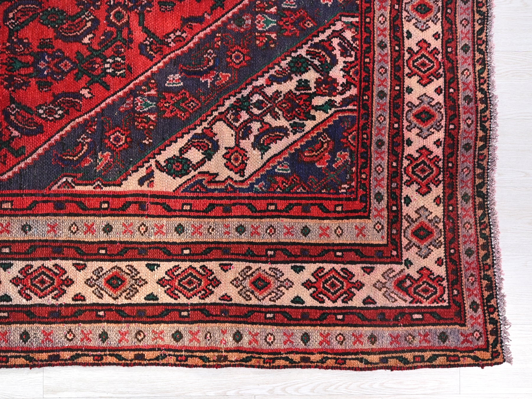 This is a hand-knotted, one-of-a-kind vintage rug. Due to the nature of this piece, there may be slight imperfections in its wear, shape, dimensions, and color. All of our rugs are professionally cleaned and repaired.