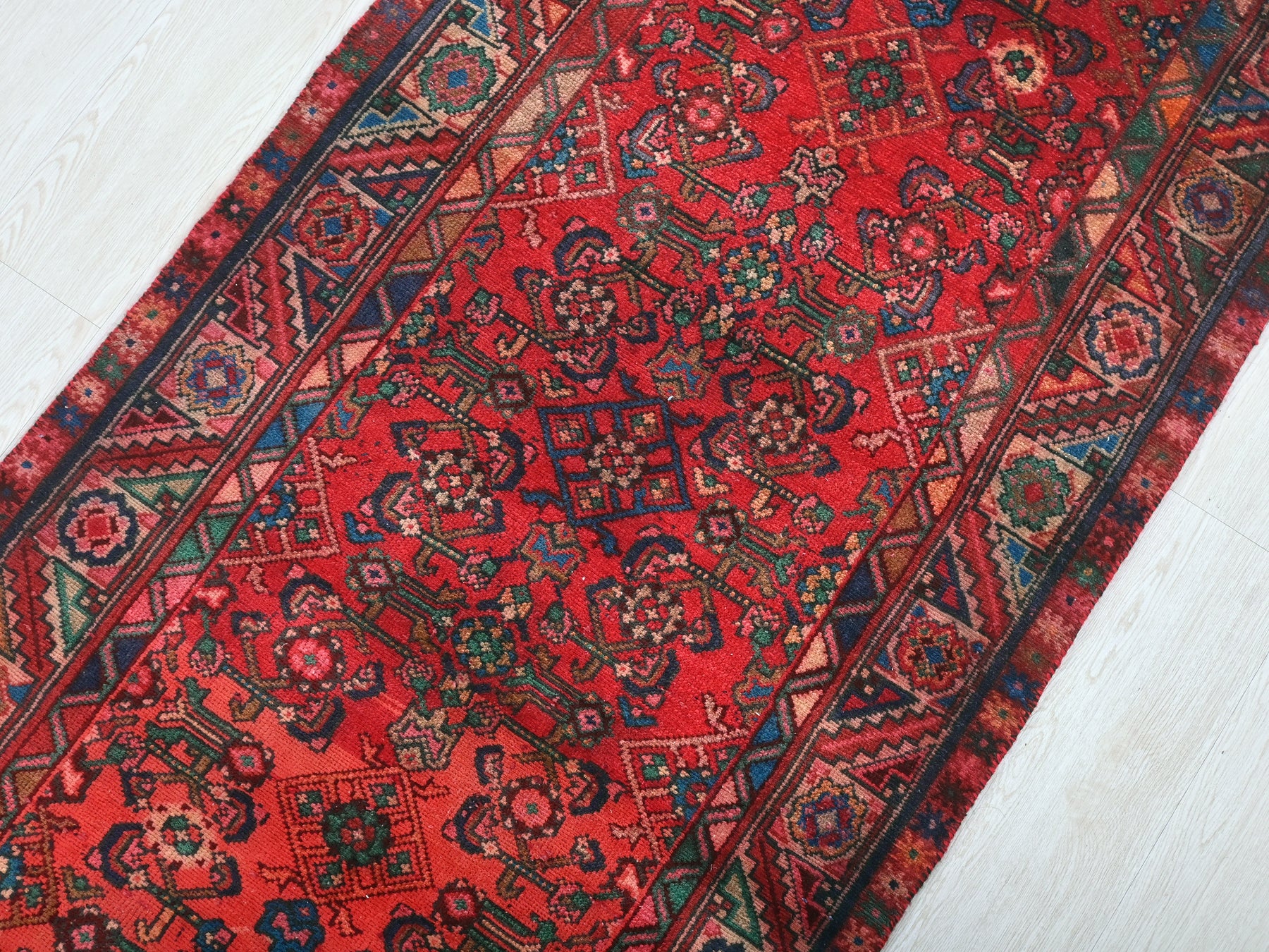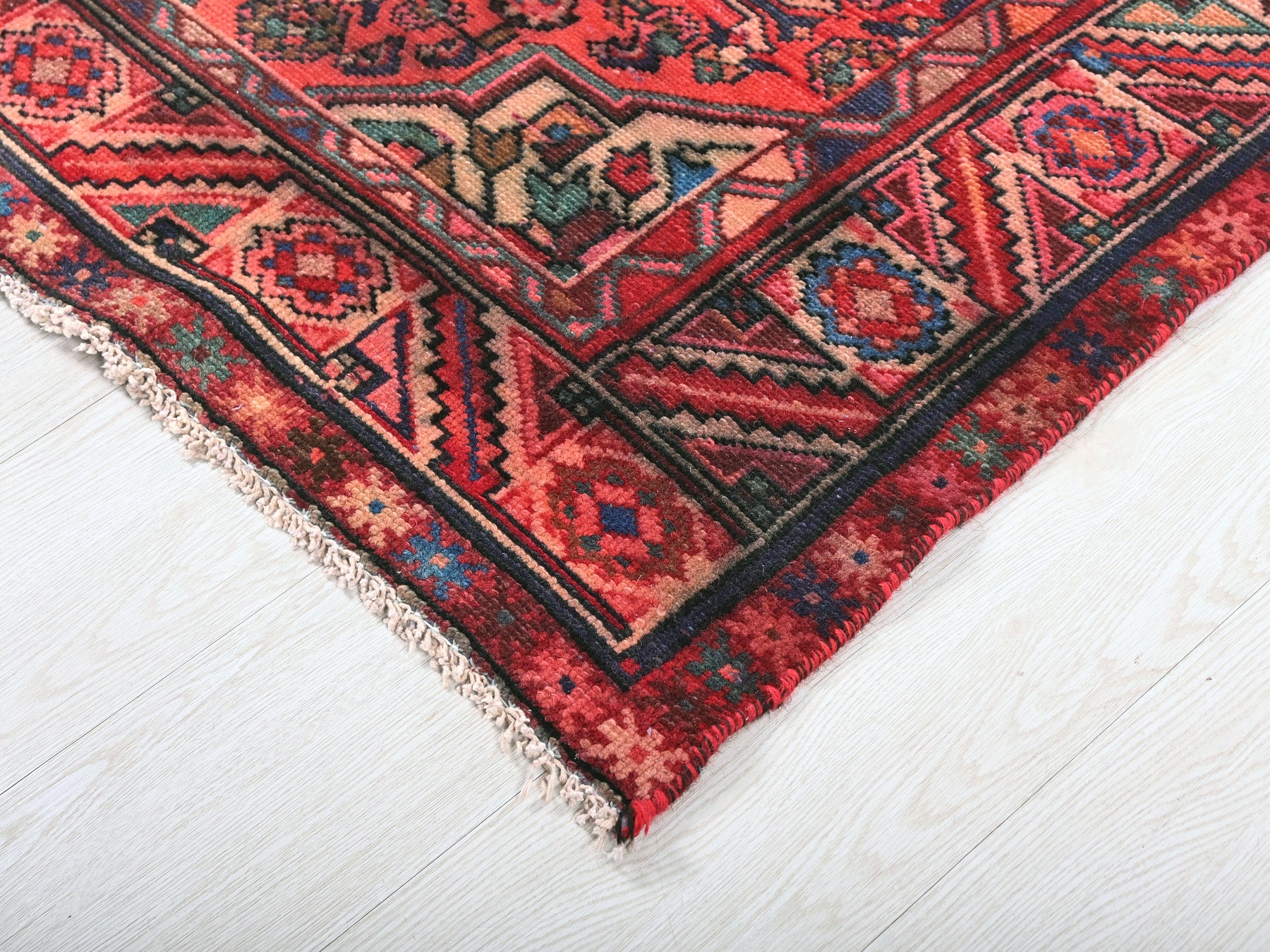 This is a hand-knotted, one-of-a-kind vintage rug. Due to the nature of this piece, there may be slight imperfections in its wear, shape, dimensions, and color. All of our rugs are professionally cleaned and repaired.