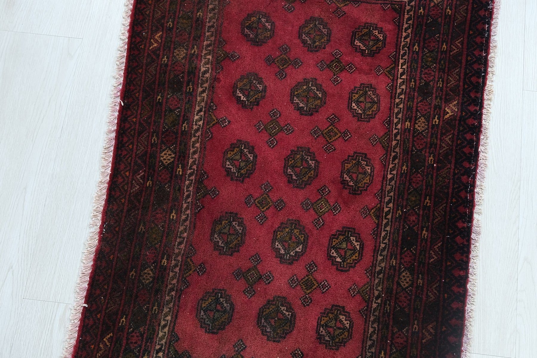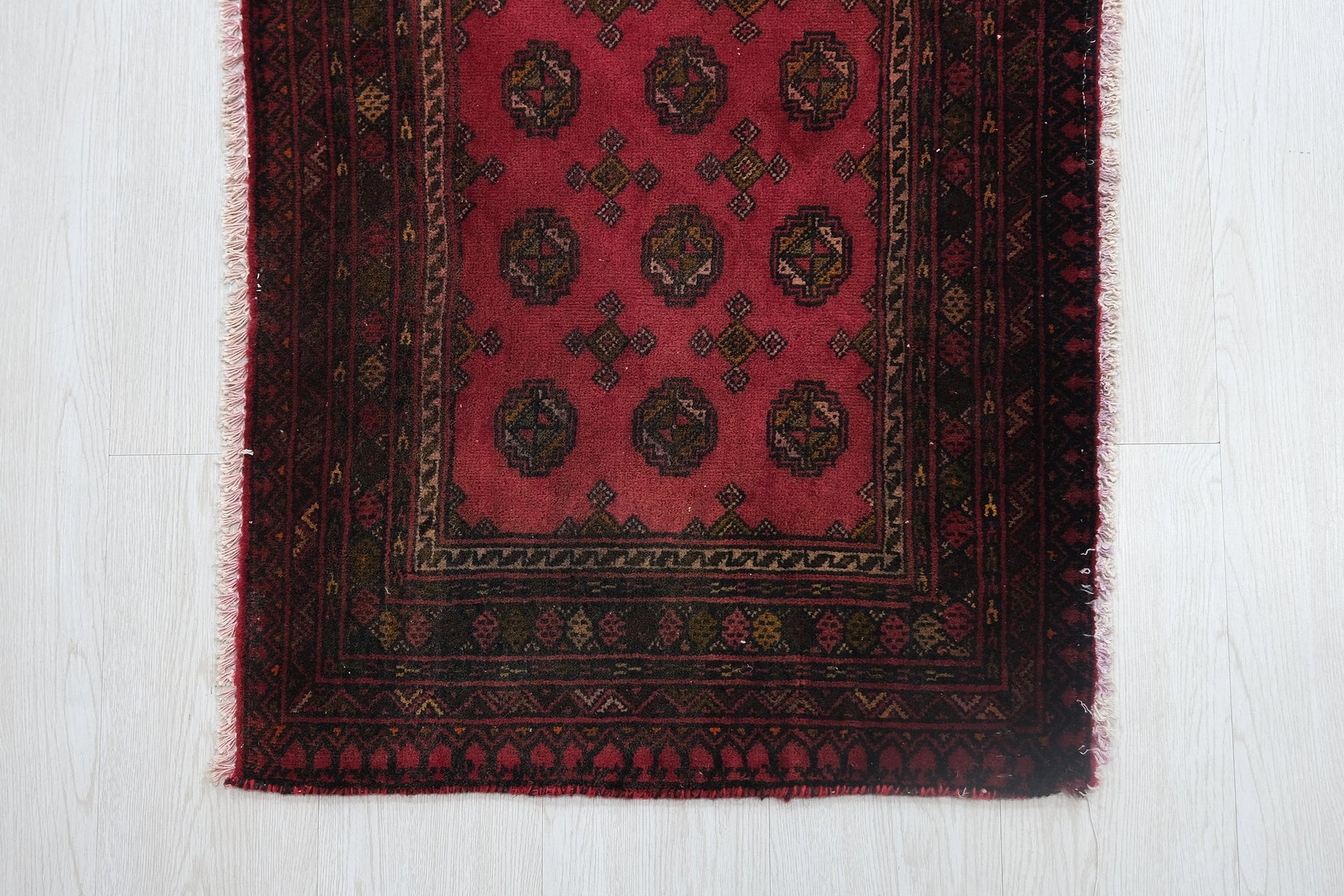 This is a hand-knotted, one-of-a-kind vintage rug. Due to the nature of this piece, there may be slight imperfections in its wear, shape, dimensions, and color. All of our rugs are professionally cleaned and repaired.