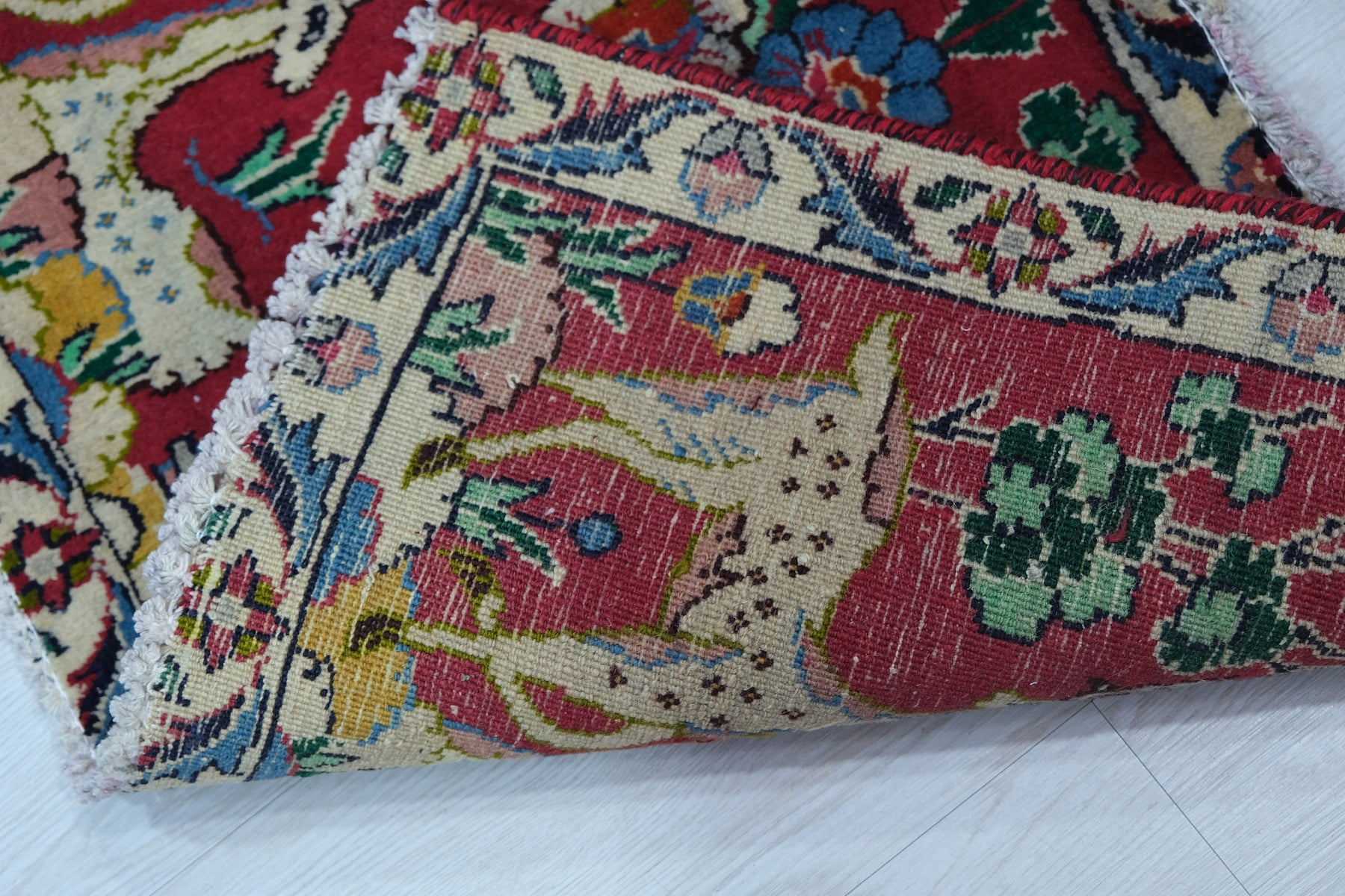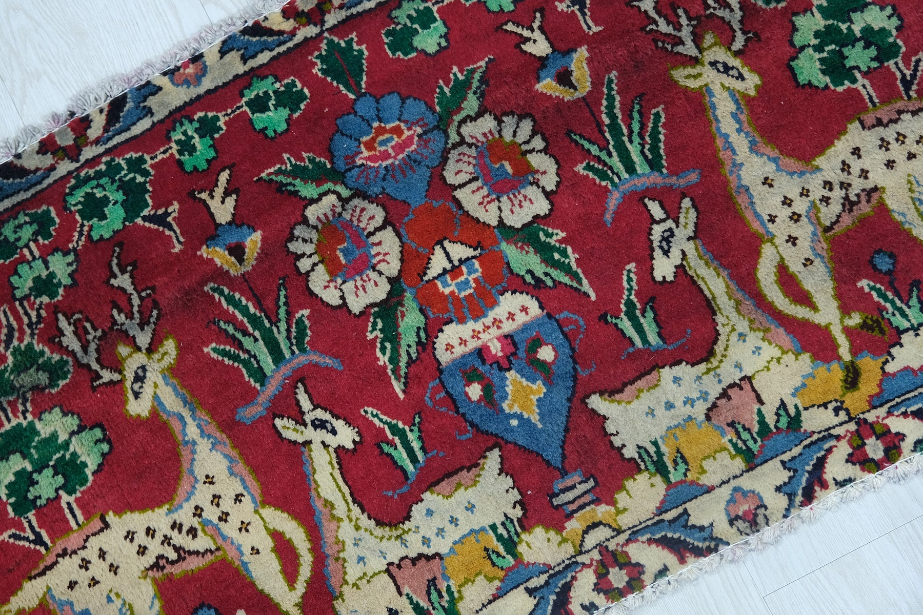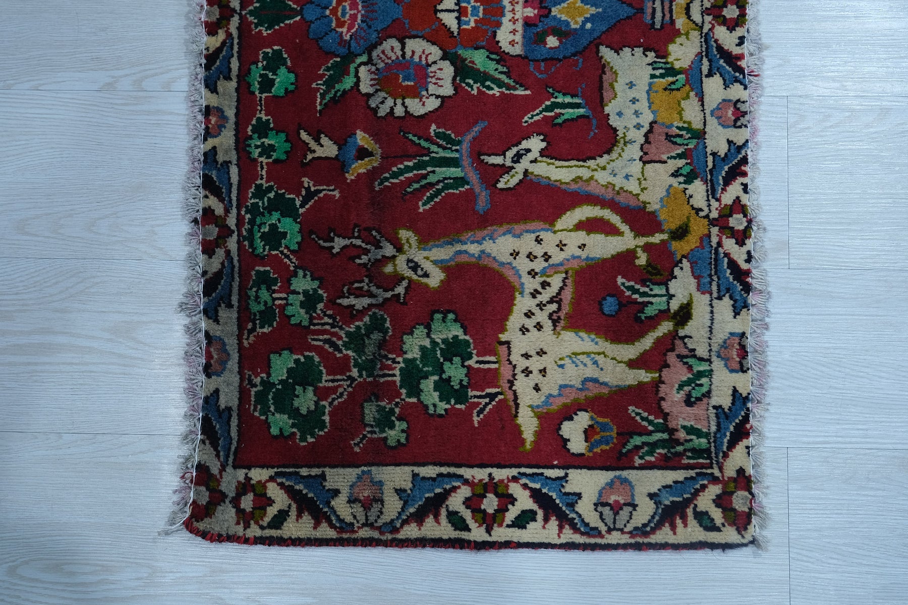This is a hand-knotted, one-of-a-kind vintage rug. Due to the nature of this piece, there may be slight imperfections in its wear, shape, dimensions, and color. All of our rugs are professionally cleaned and repaired.