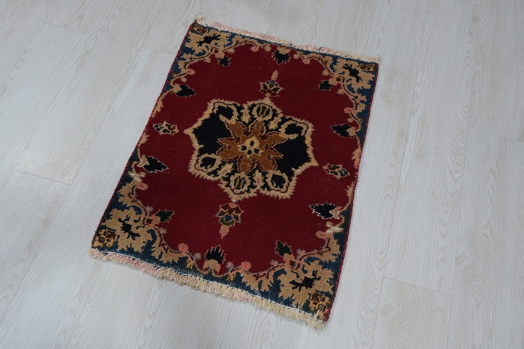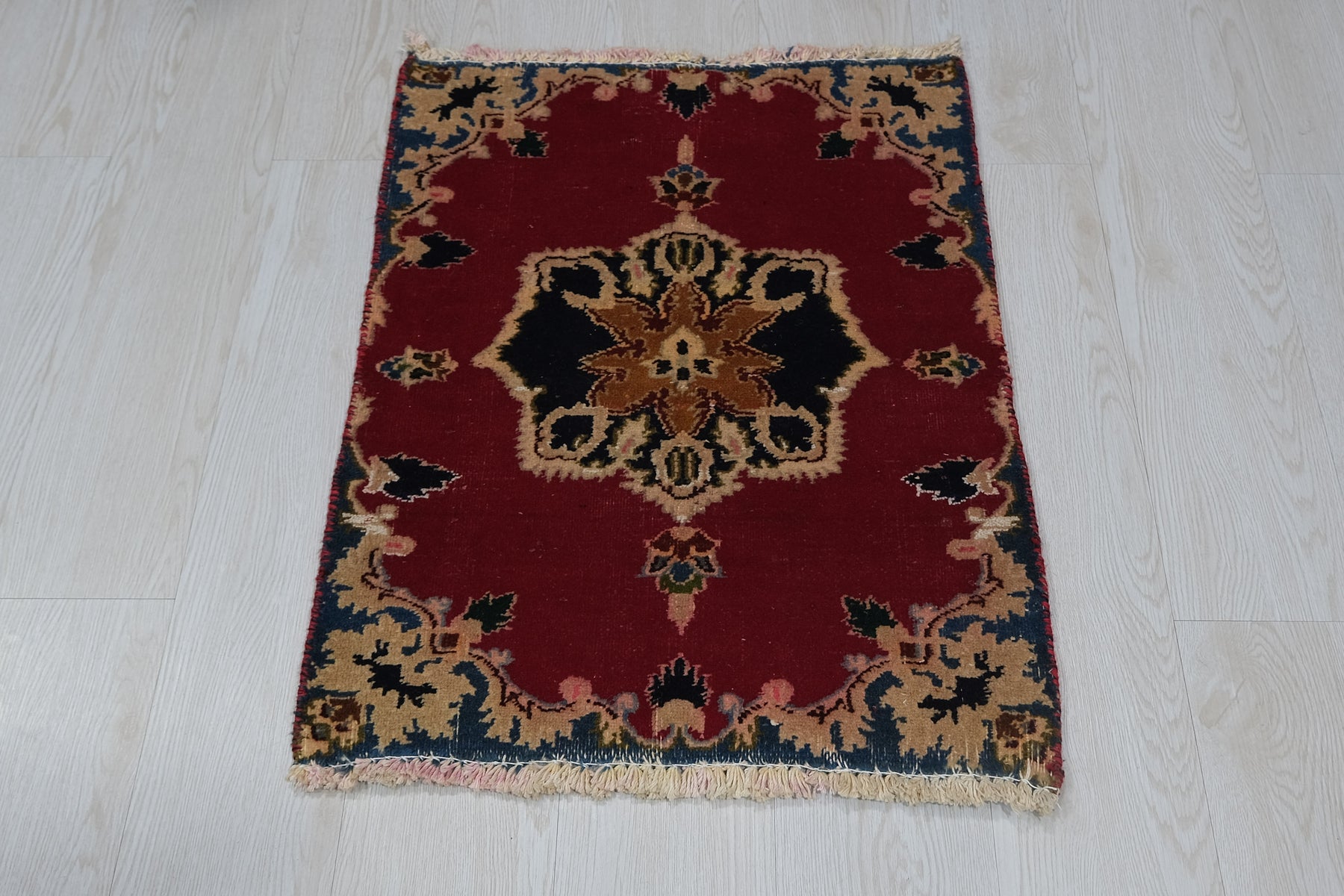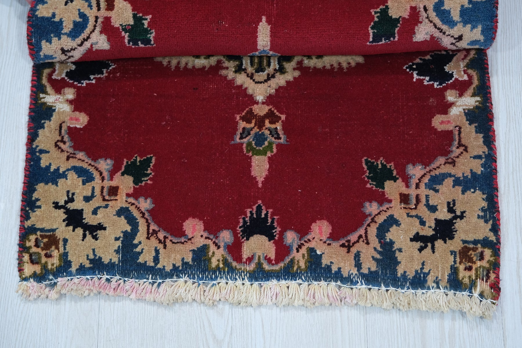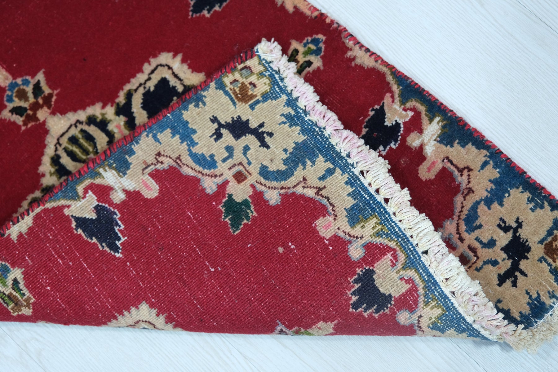 This is a hand-knotted, one-of-a-kind vintage rug. Due to the nature of this piece, there may be slight imperfections in its wear, shape, dimensions, and color. All of our rugs are professionally cleaned and repaired.