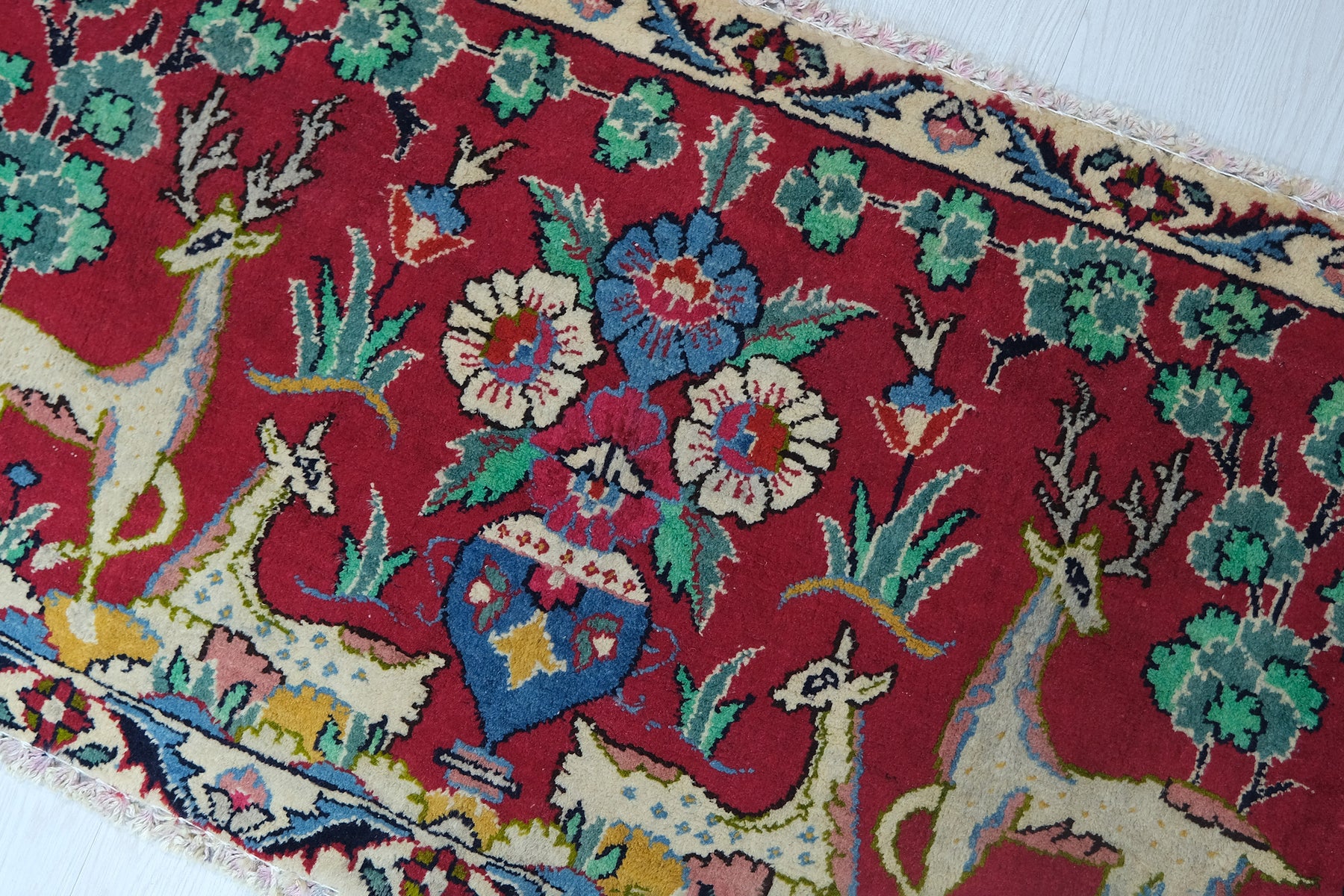This is a hand-knotted, one-of-a-kind vintage rug. Due to the nature of this piece, there may be slight imperfections in its wear, shape, dimensions, and color. All of our rugs are professionally cleaned and repaired.
