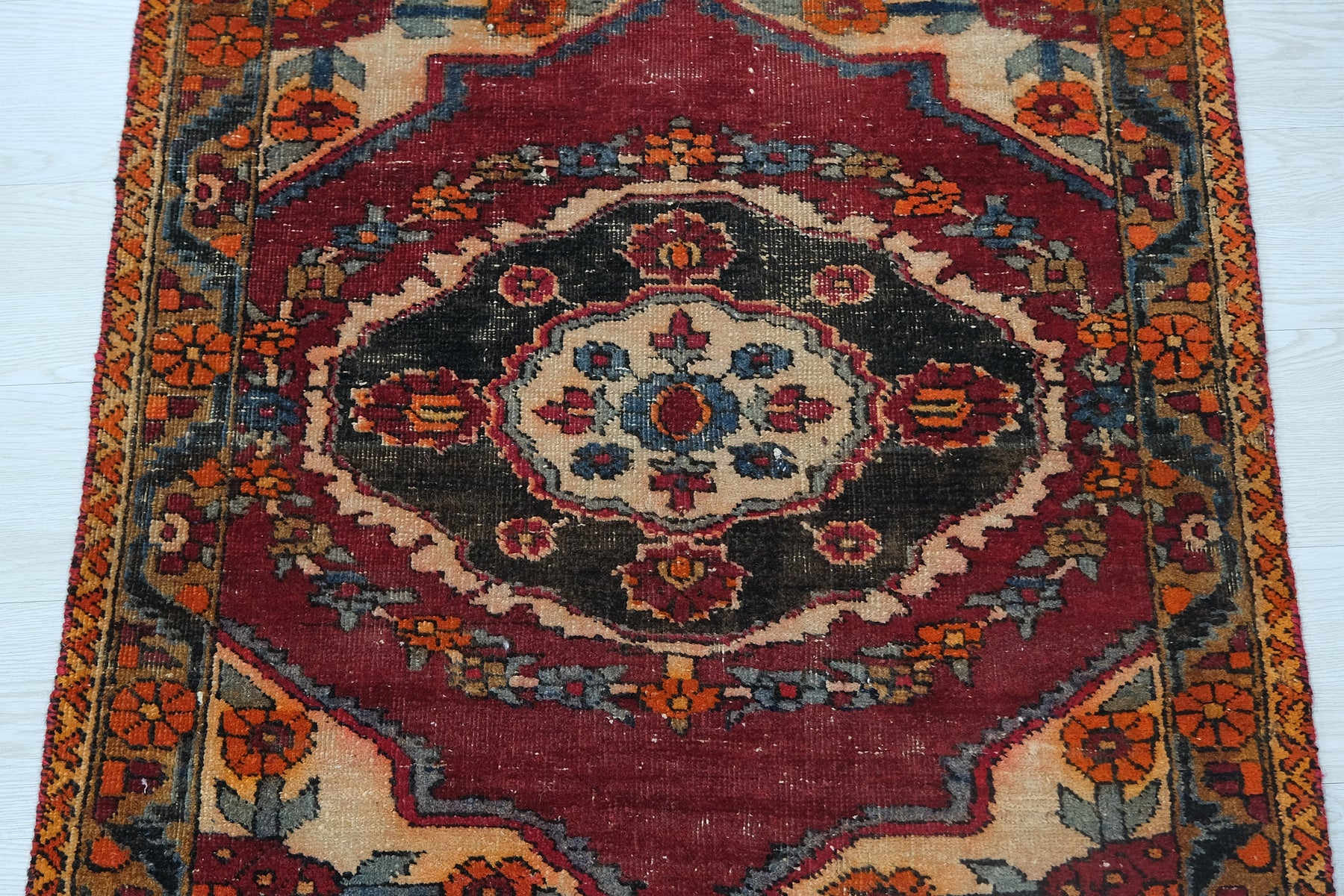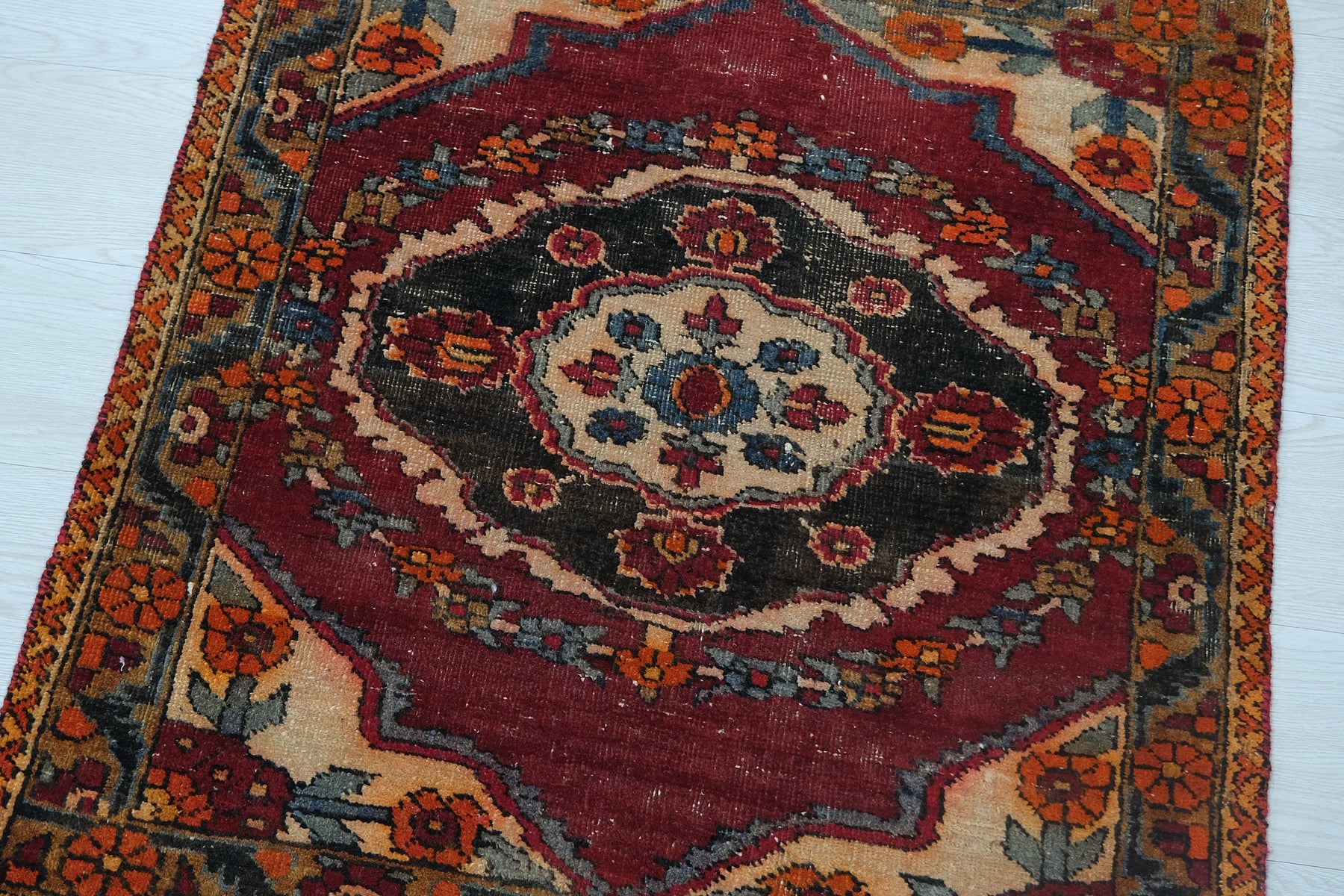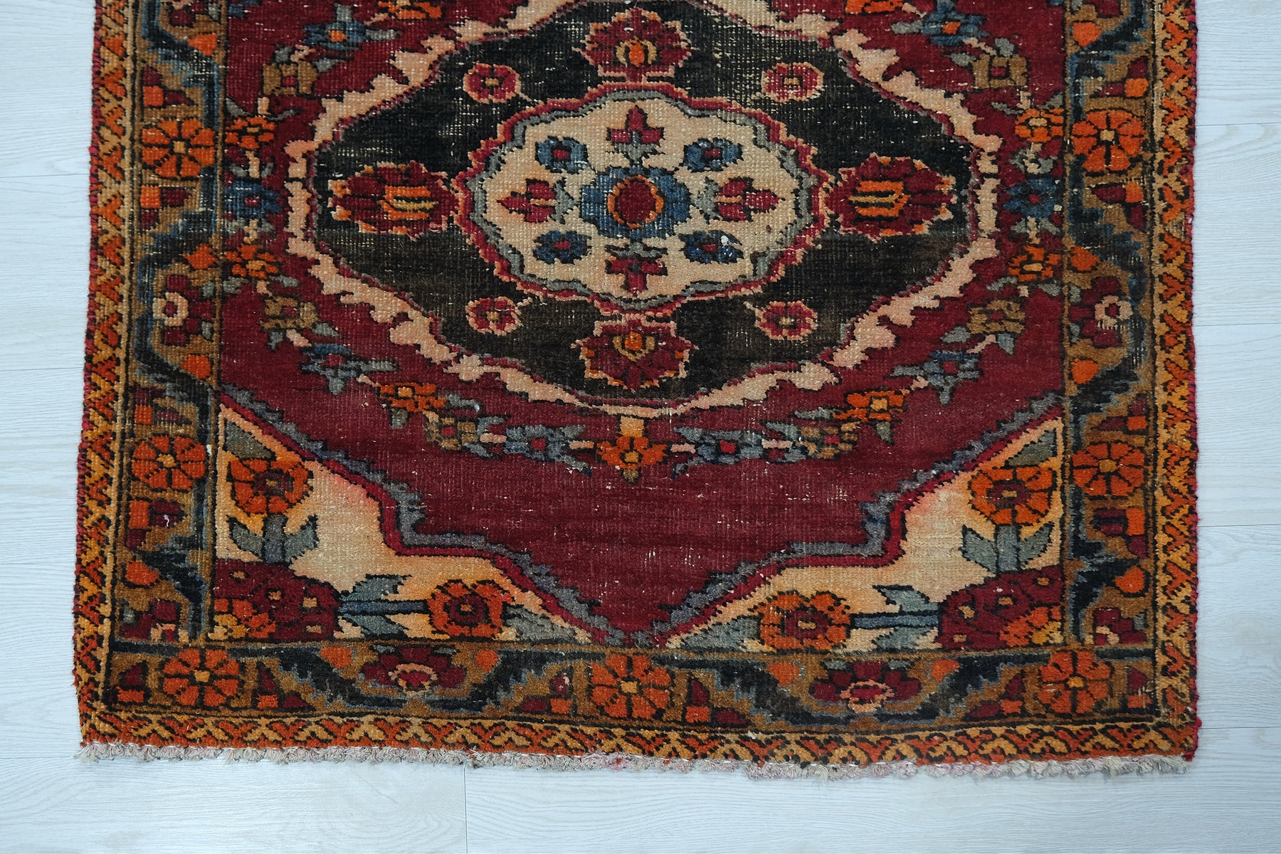This is a hand-knotted, one-of-a-kind vintage rug. Due to the nature of this piece, there may be slight imperfections in its wear, shape, dimensions, and color. All of our rugs are professionally cleaned and repaired.