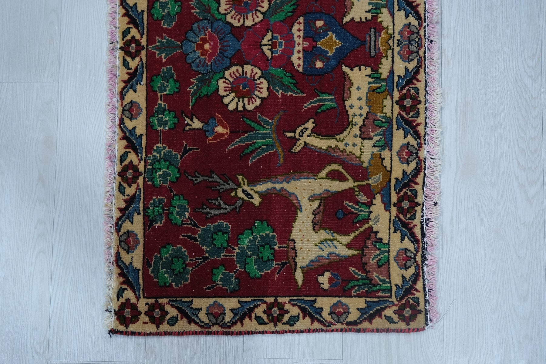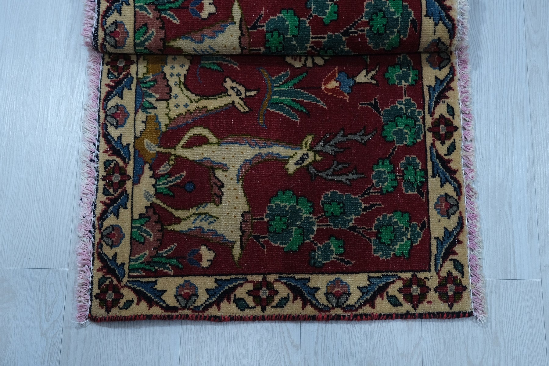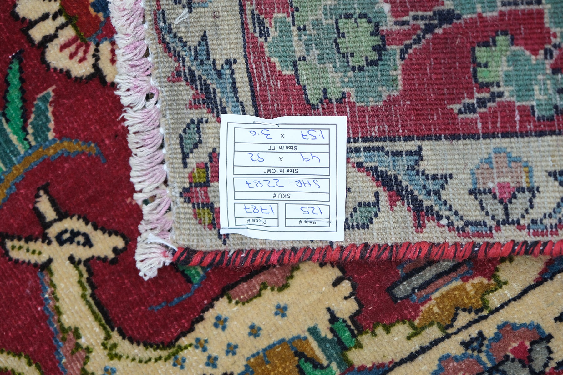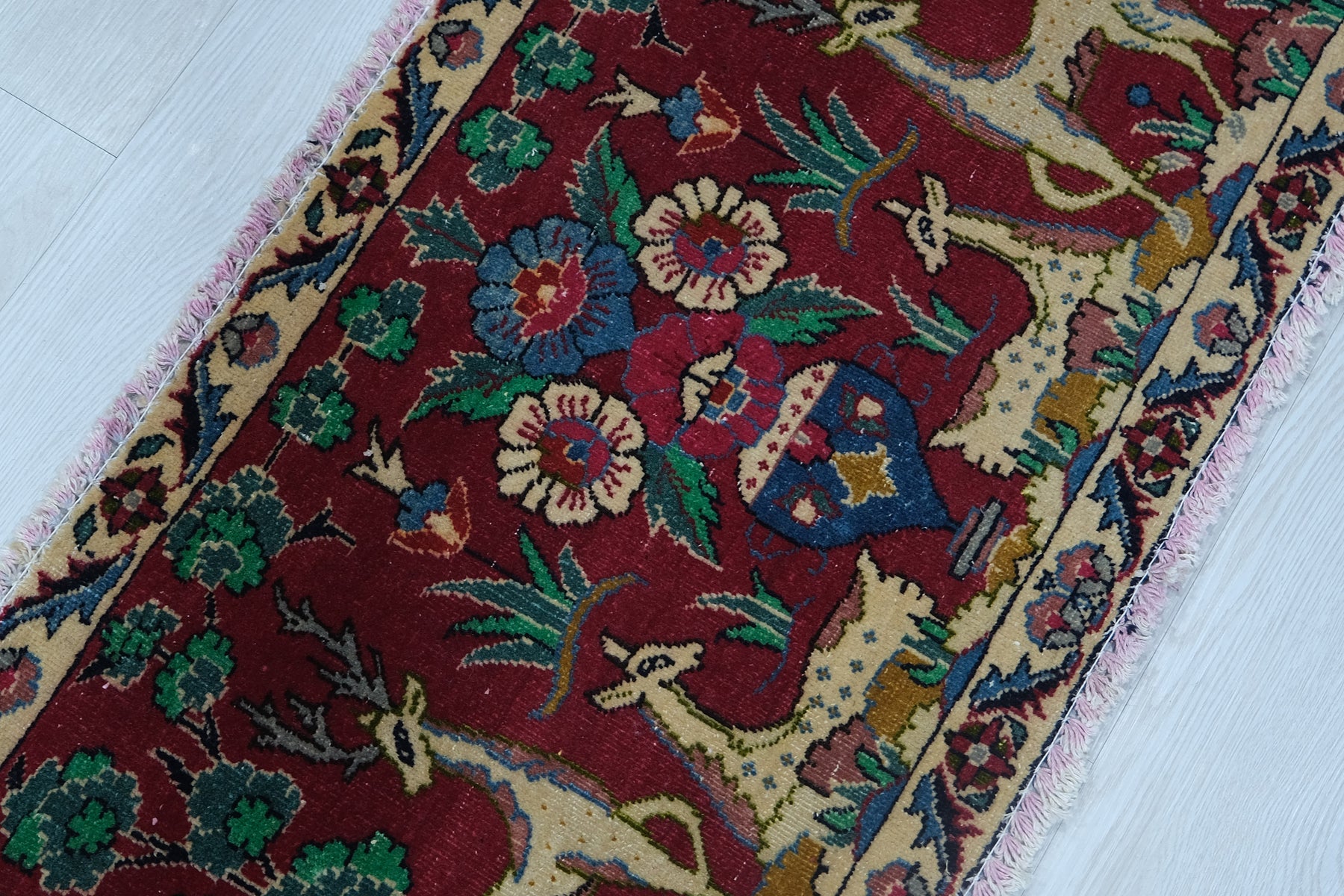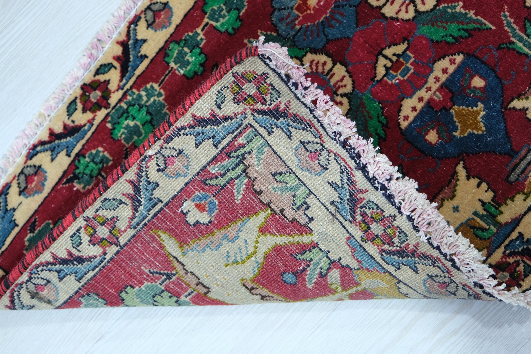 This is a hand-knotted, one-of-a-kind vintage rug. Due to the nature of this piece, there may be slight imperfections in its wear, shape, dimensions, and color. All of our rugs are professionally cleaned and repaired.