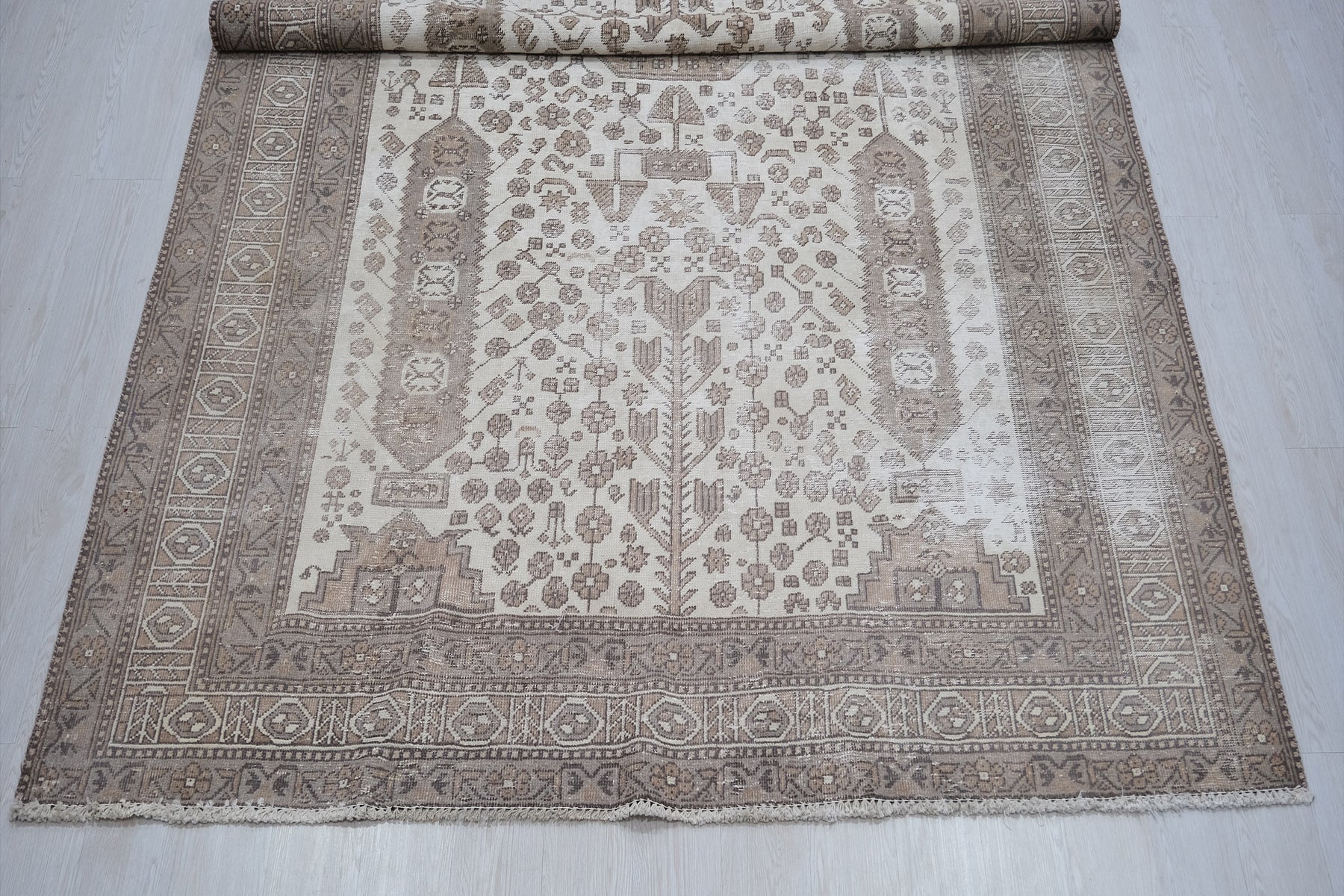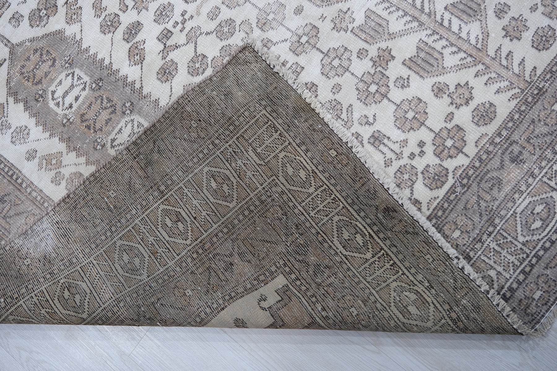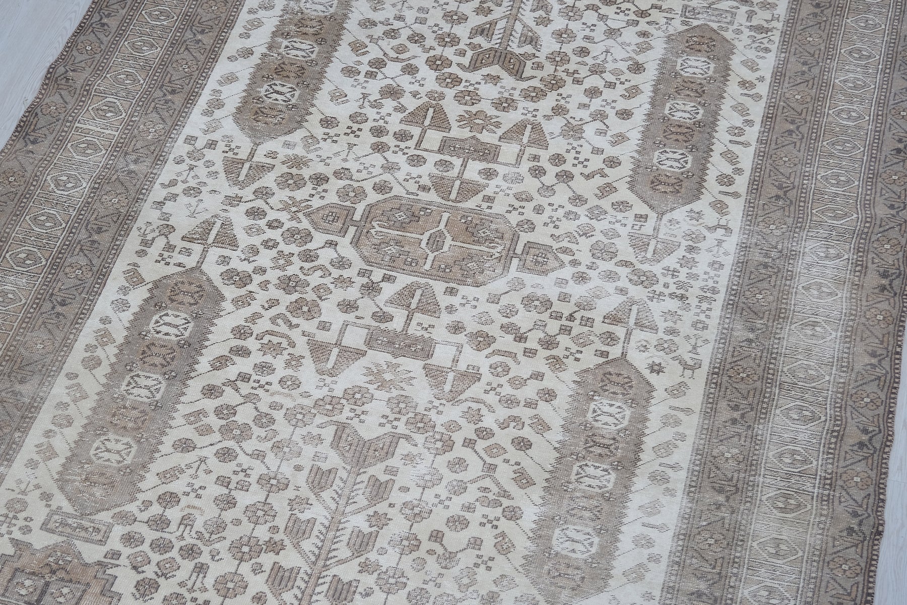 This is a hand-knotted, one-of-a-kind vintage rug. Due to the nature of this piece, there may be slight imperfections in its wear, shape, dimensions, and color. All of our rugs are professionally cleaned and repaired.