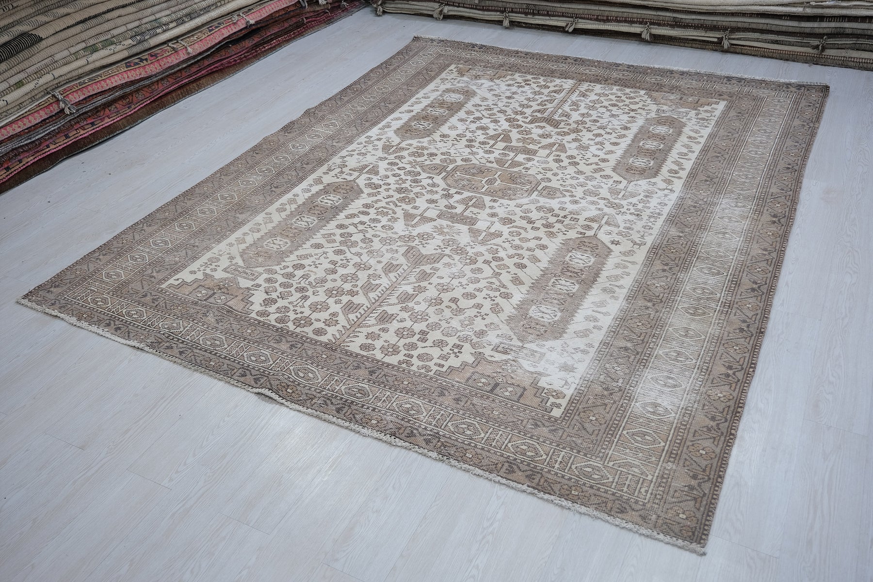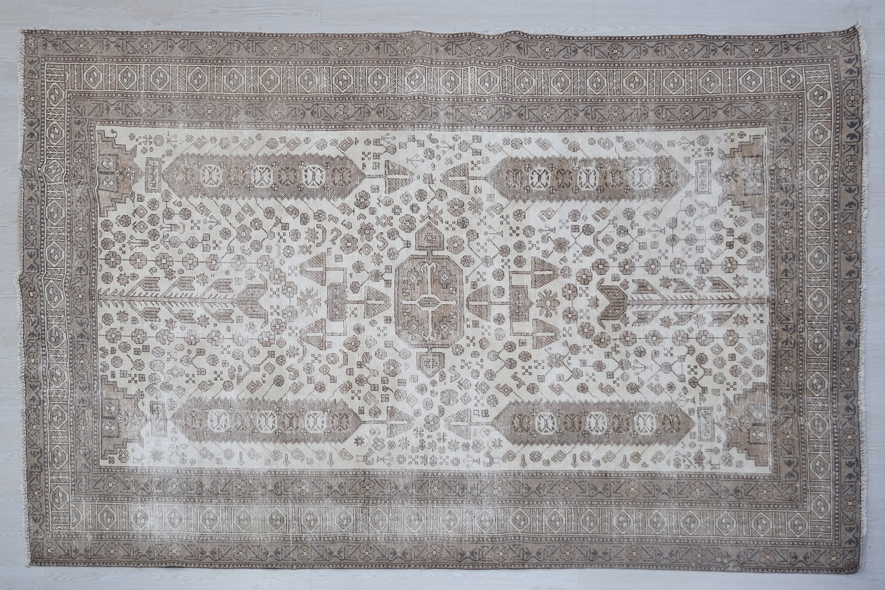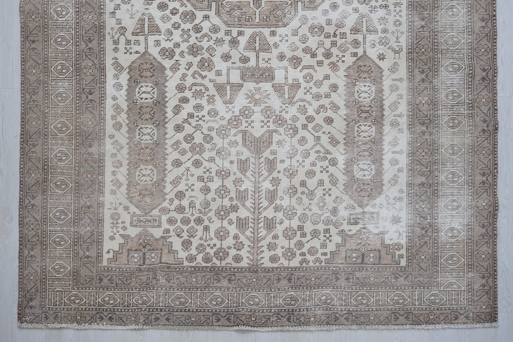 This is a hand-knotted, one-of-a-kind vintage rug. Due to the nature of this piece, there may be slight imperfections in its wear, shape, dimensions, and color. All of our rugs are professionally cleaned and repaired.