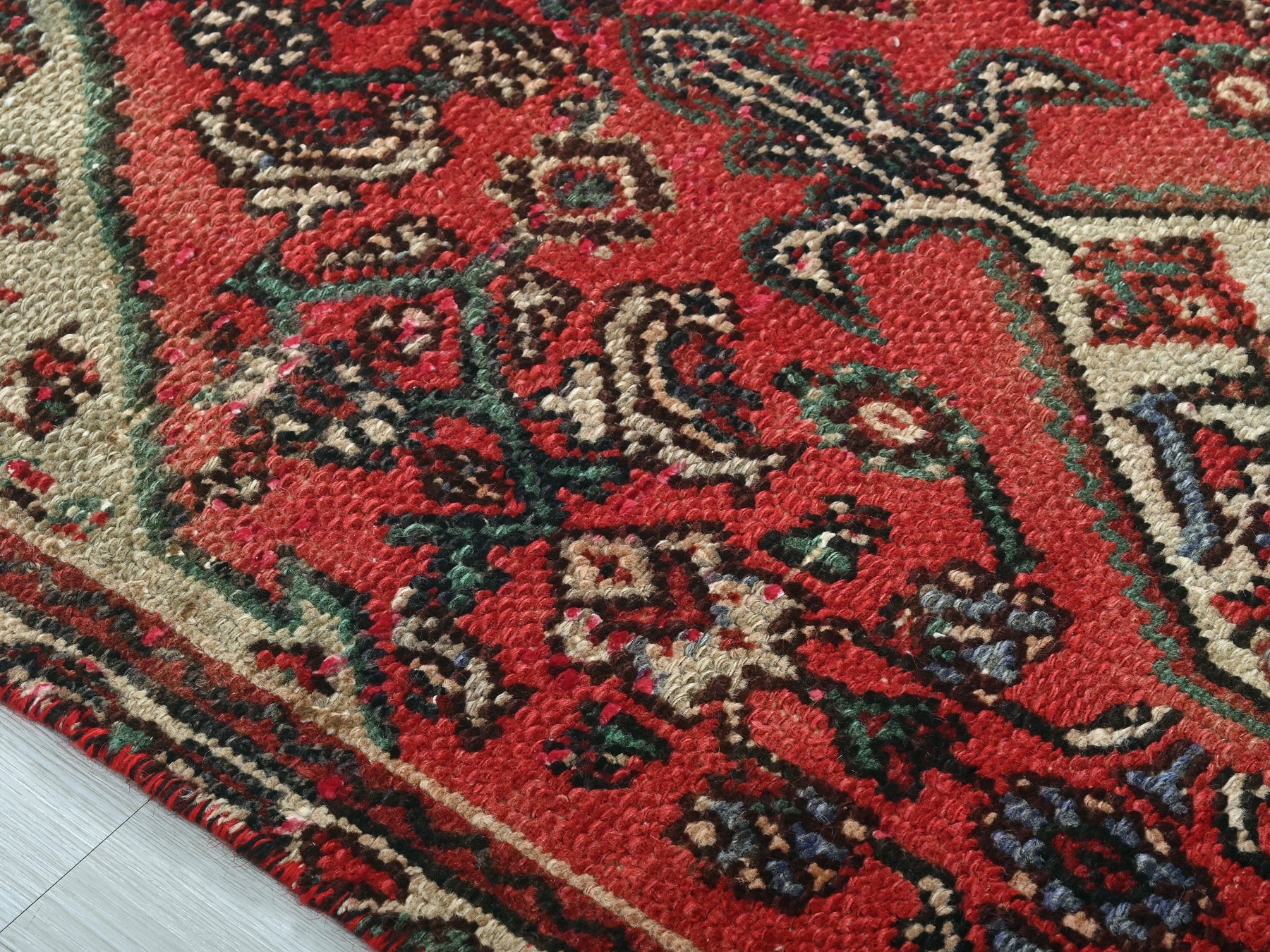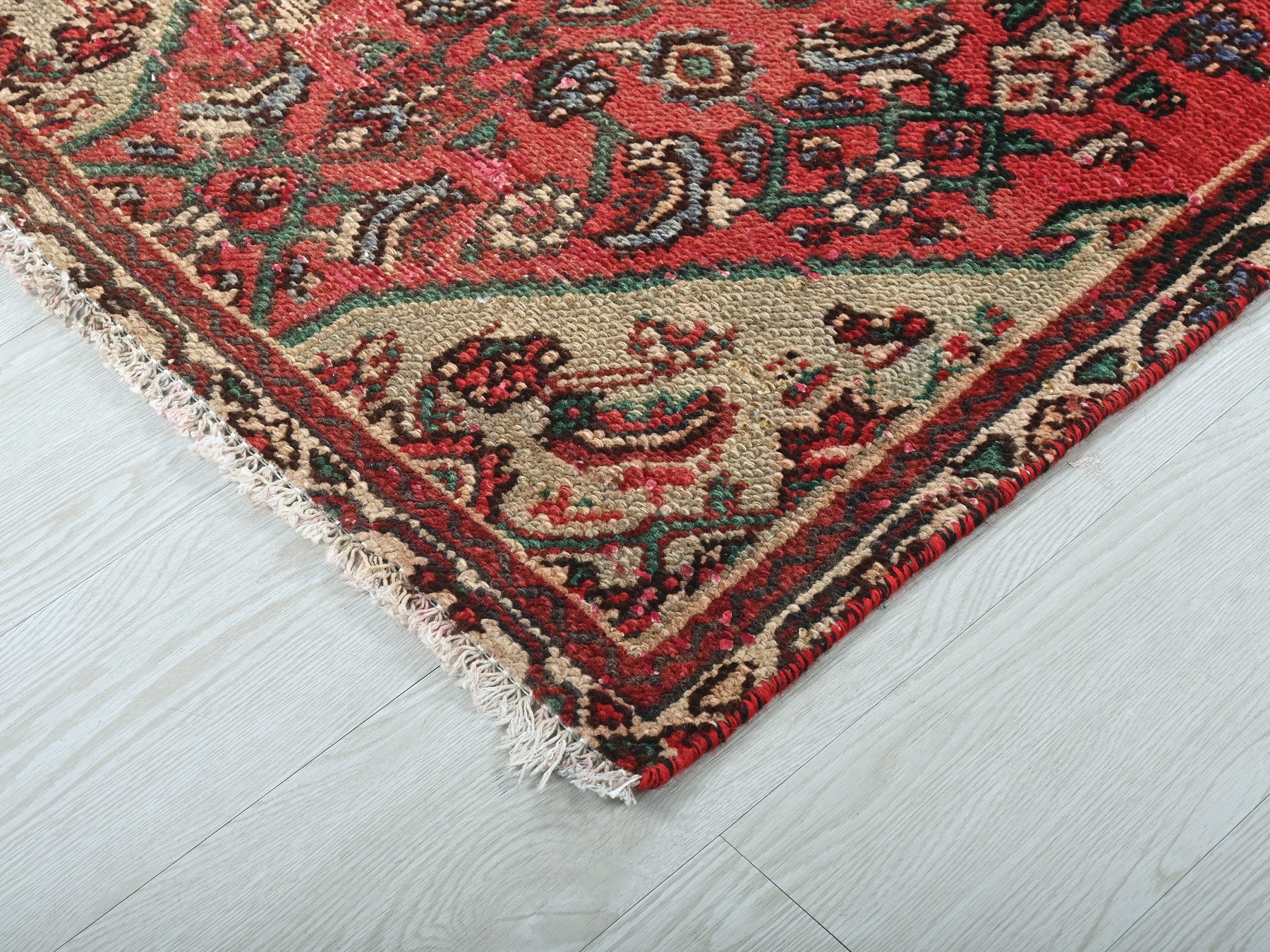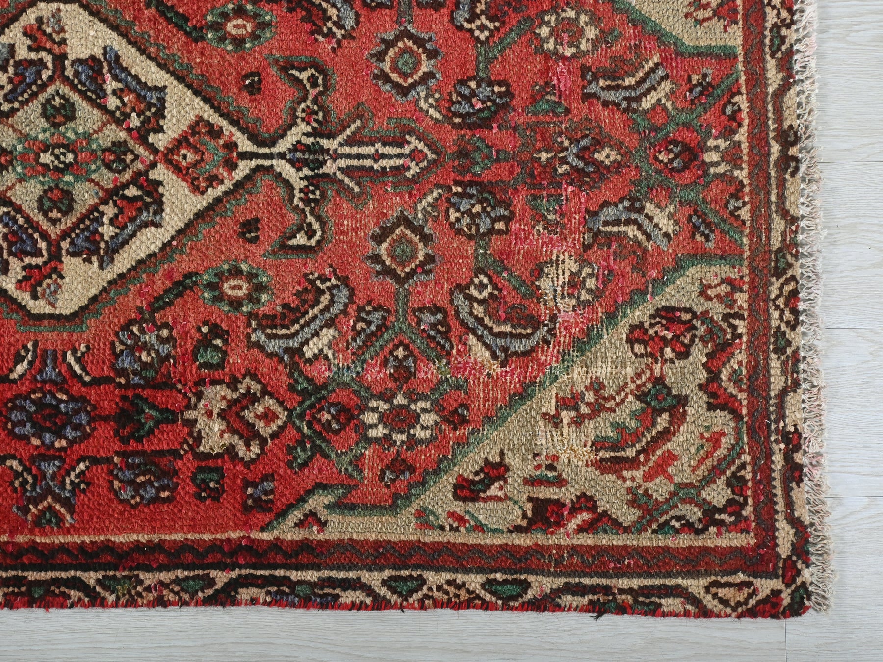 This is a hand-knotted, one-of-a-kind vintage rug. Due to the nature of this piece, there may be slight imperfections in its wear, shape, dimensions, and color. All of our rugs are professionally cleaned and repaired.
