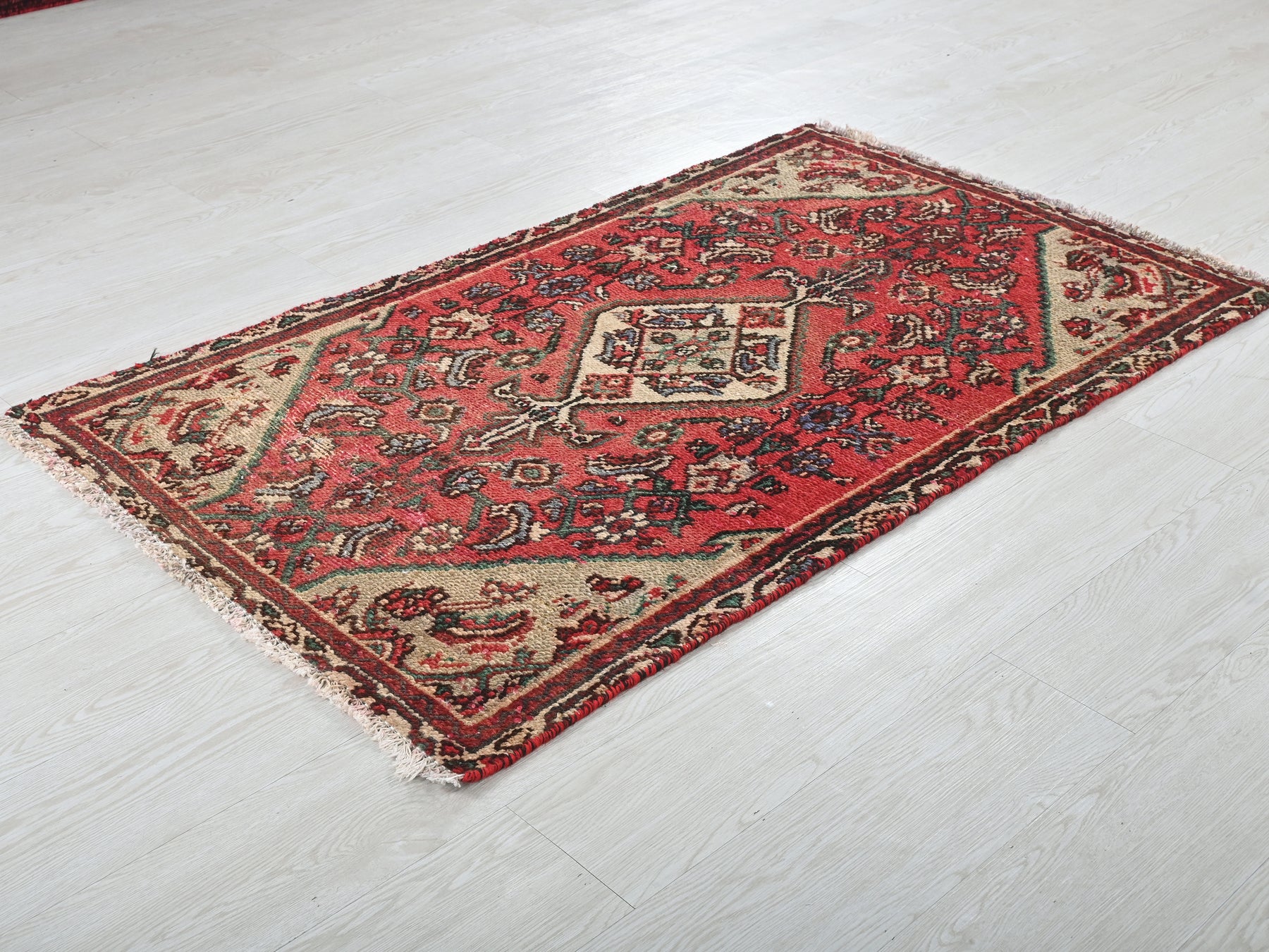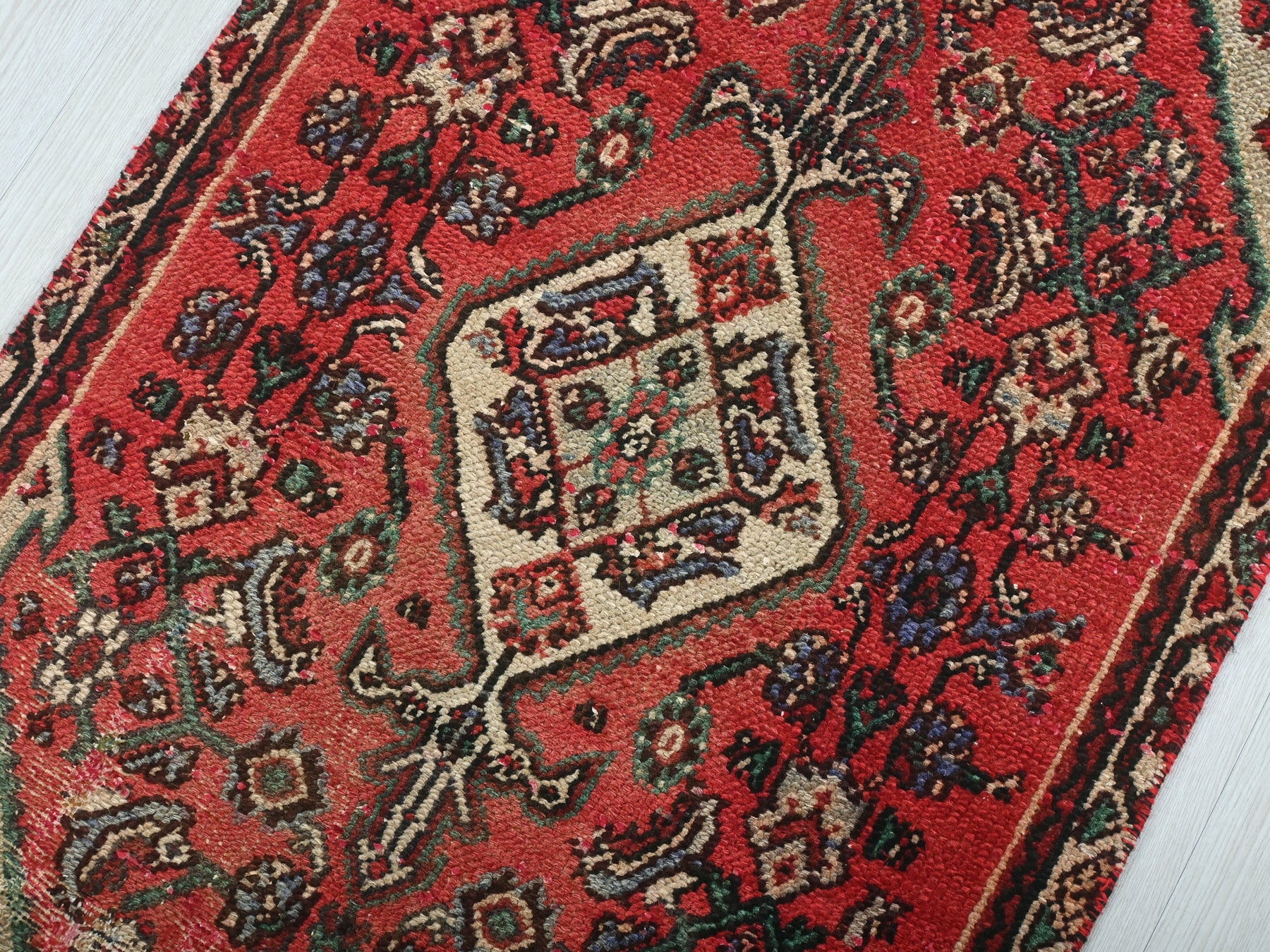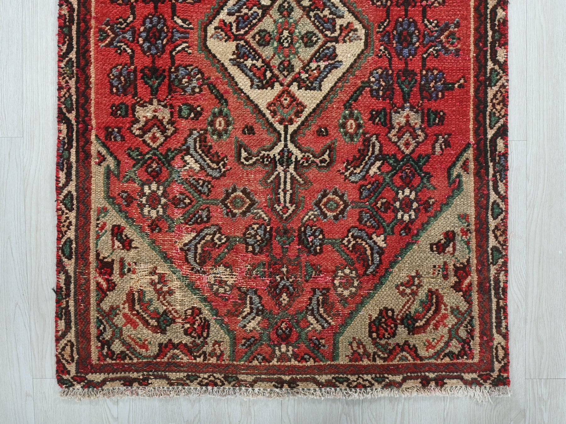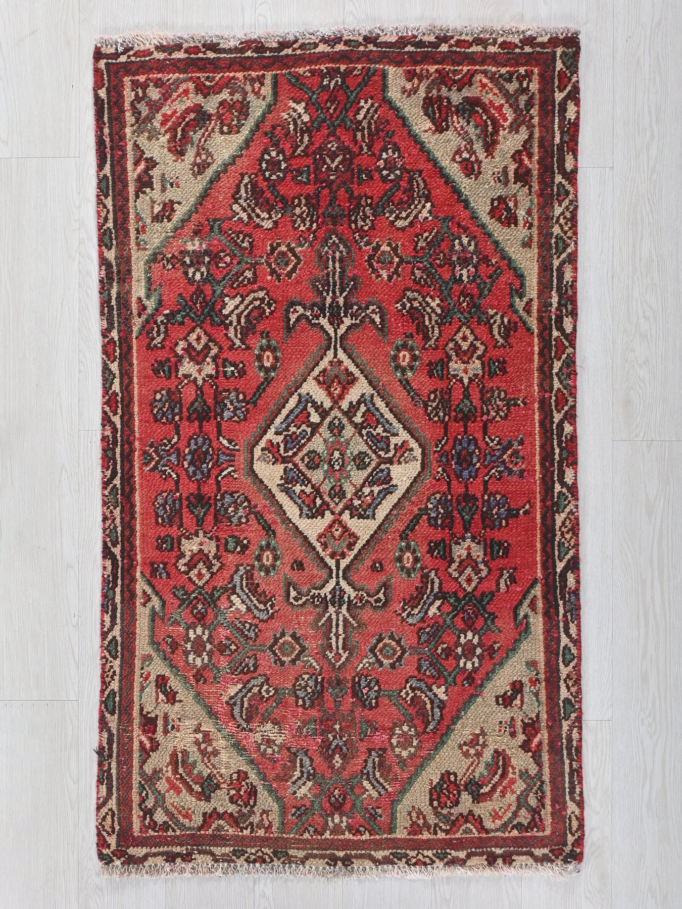 This is a hand-knotted, one-of-a-kind vintage rug. Due to the nature of this piece, there may be slight imperfections in its wear, shape, dimensions, and color. All of our rugs are professionally cleaned and repaired.