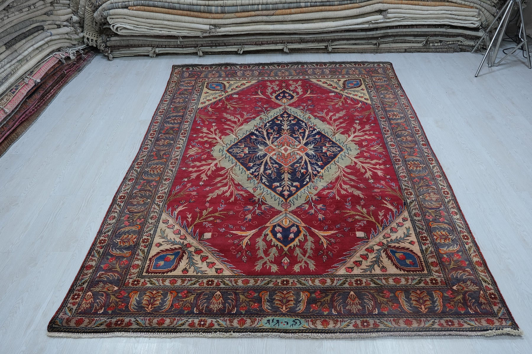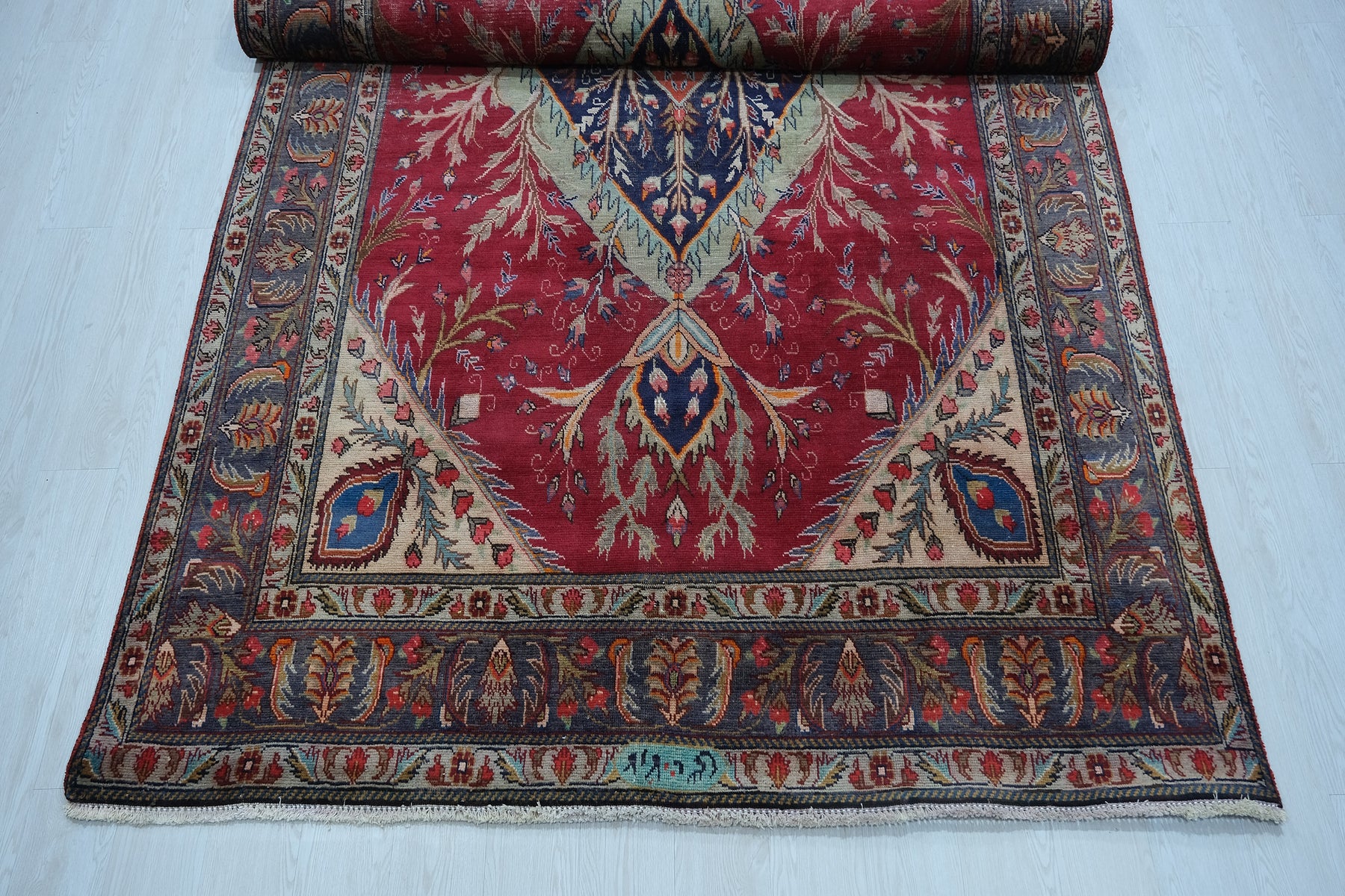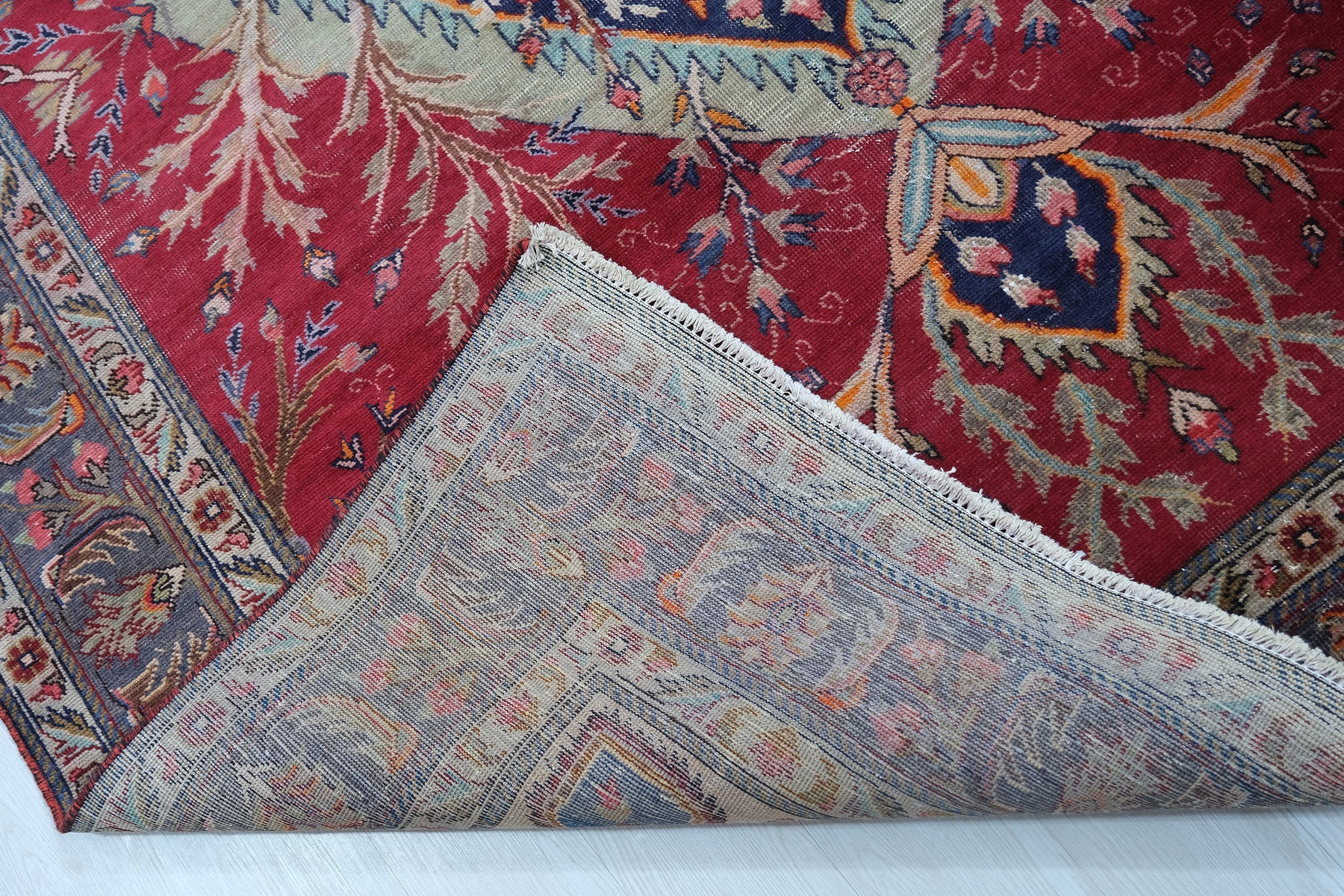 This is a hand-knotted, one-of-a-kind vintage rug. Due to the nature of this piece, there may be slight imperfections in its wear, shape, dimensions, and color. All of our rugs are professionally cleaned and repaired.