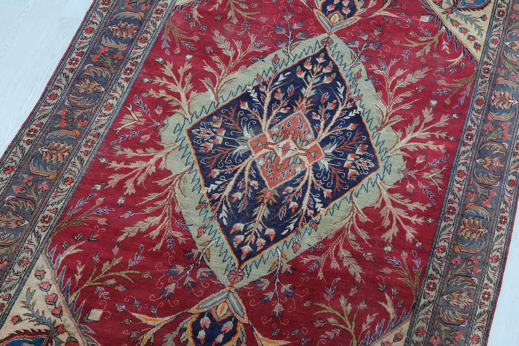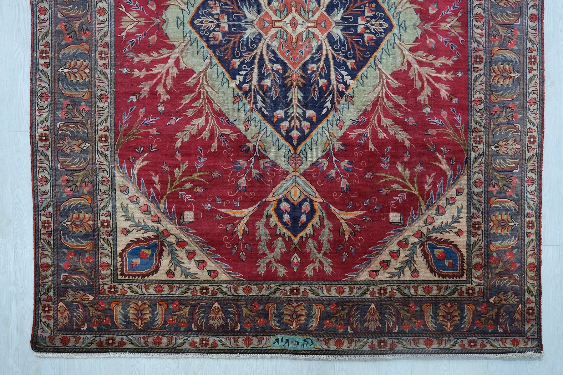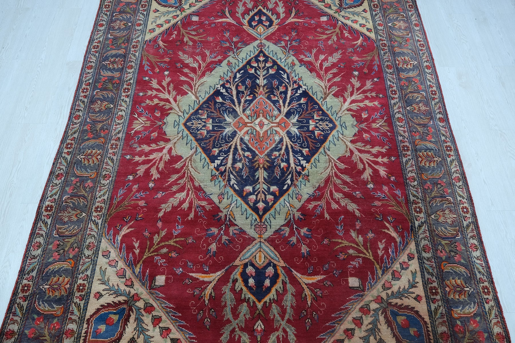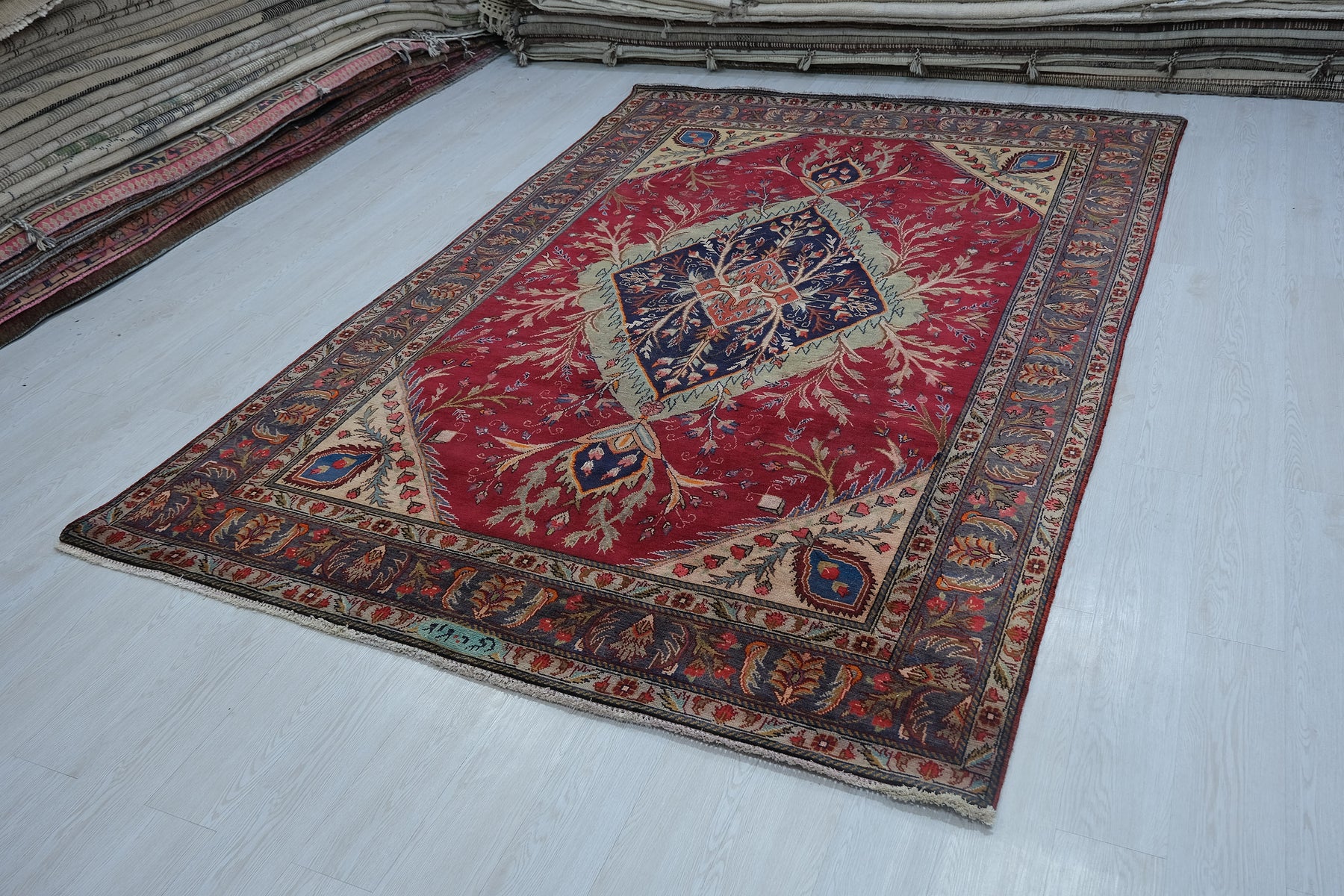 This is a hand-knotted, one-of-a-kind vintage rug. Due to the nature of this piece, there may be slight imperfections in its wear, shape, dimensions, and color. All of our rugs are professionally cleaned and repaired.