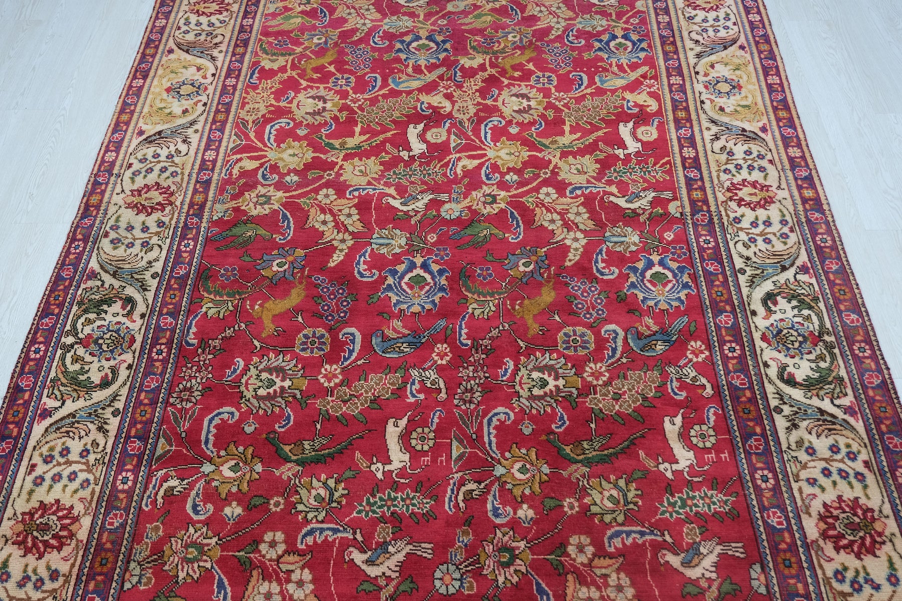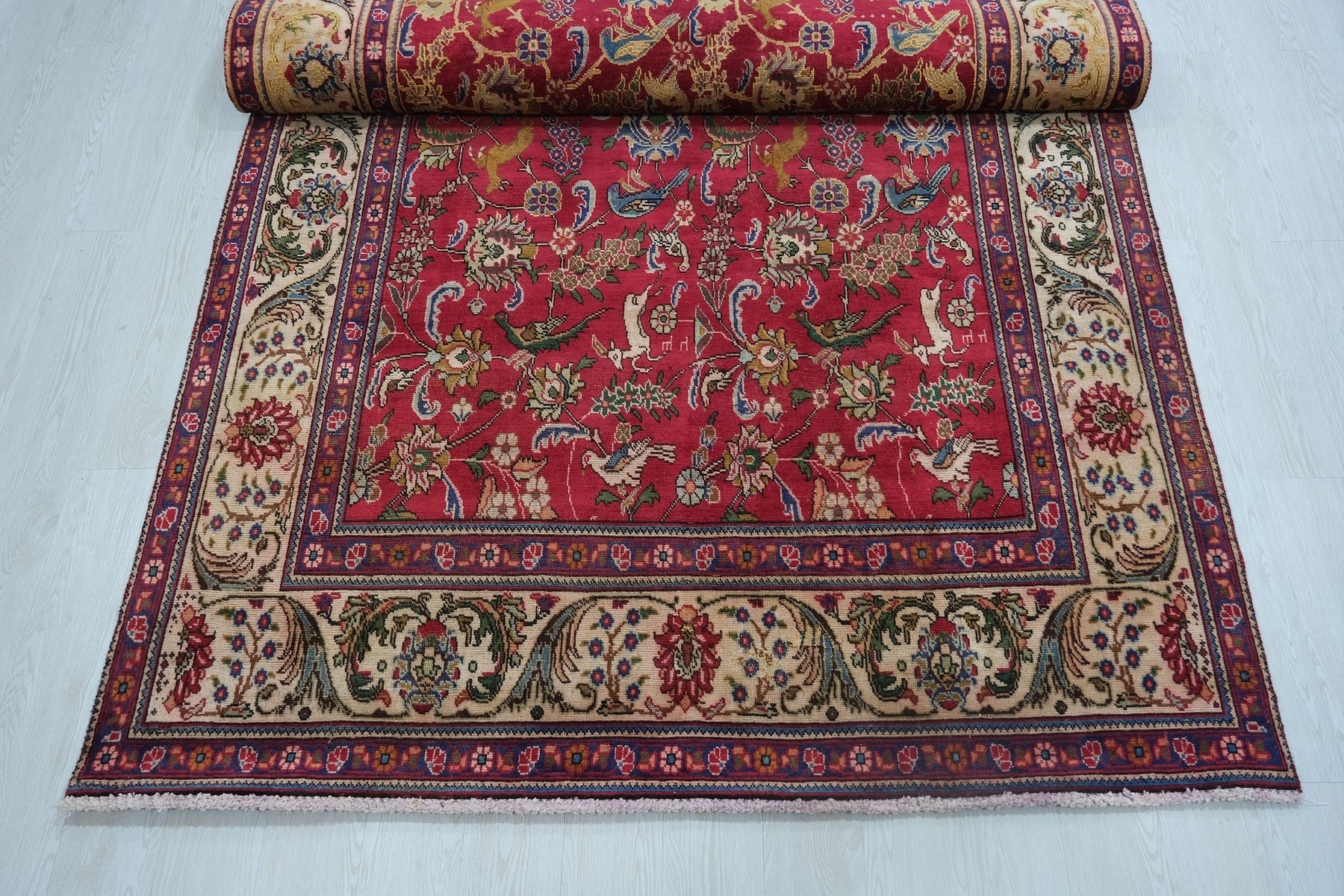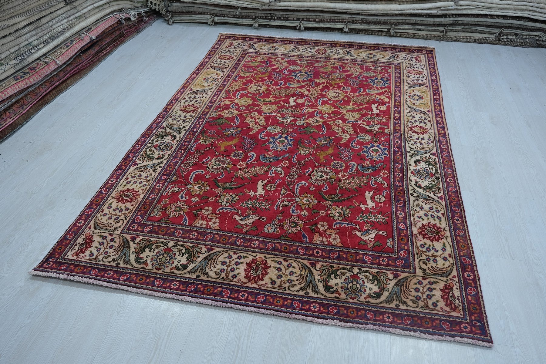 This is a hand-knotted, one-of-a-kind vintage rug. Due to the nature of this piece, there may be slight imperfections in its wear, shape, dimensions, and color. All of our rugs are professionally cleaned and repaired.