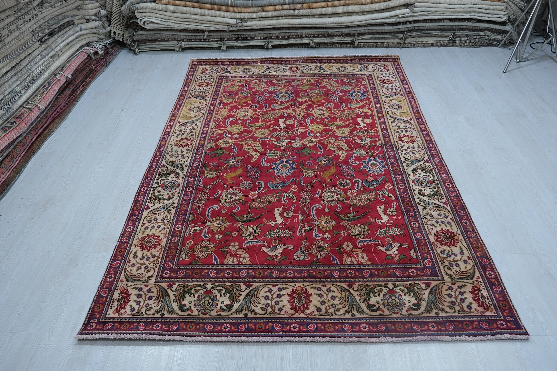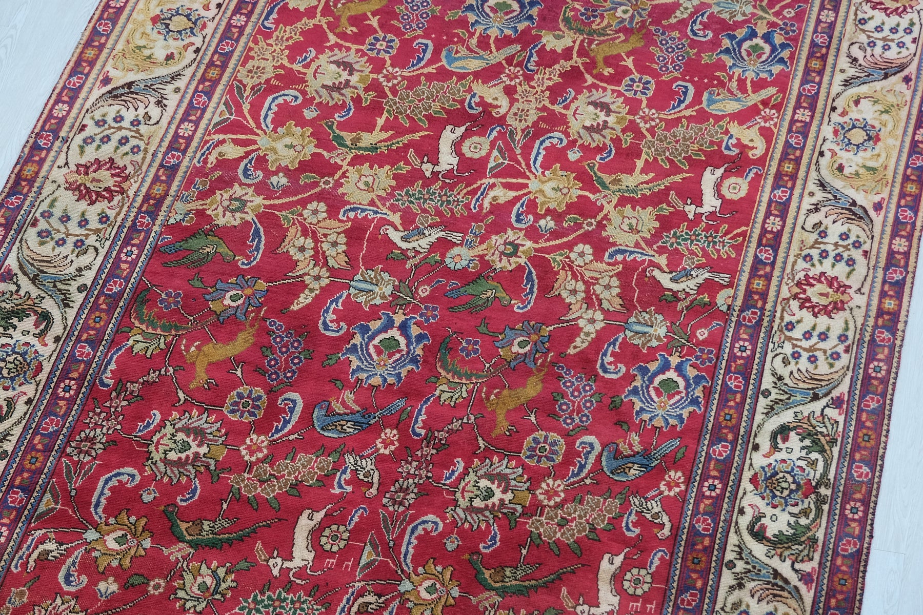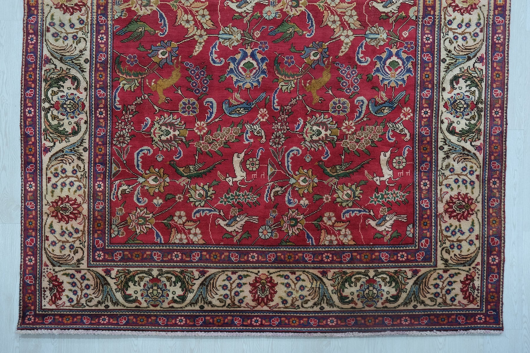 This is a hand-knotted, one-of-a-kind vintage rug. Due to the nature of this piece, there may be slight imperfections in its wear, shape, dimensions, and color. All of our rugs are professionally cleaned and repaired.