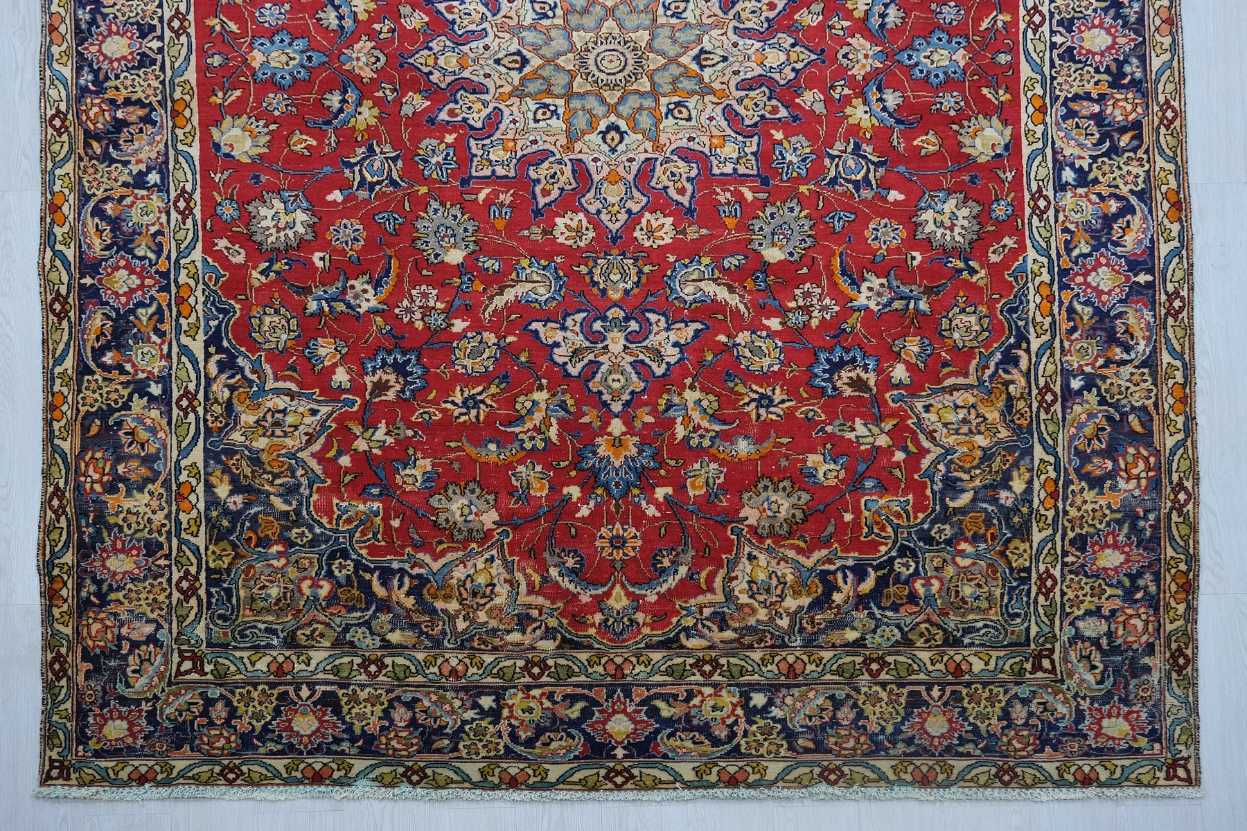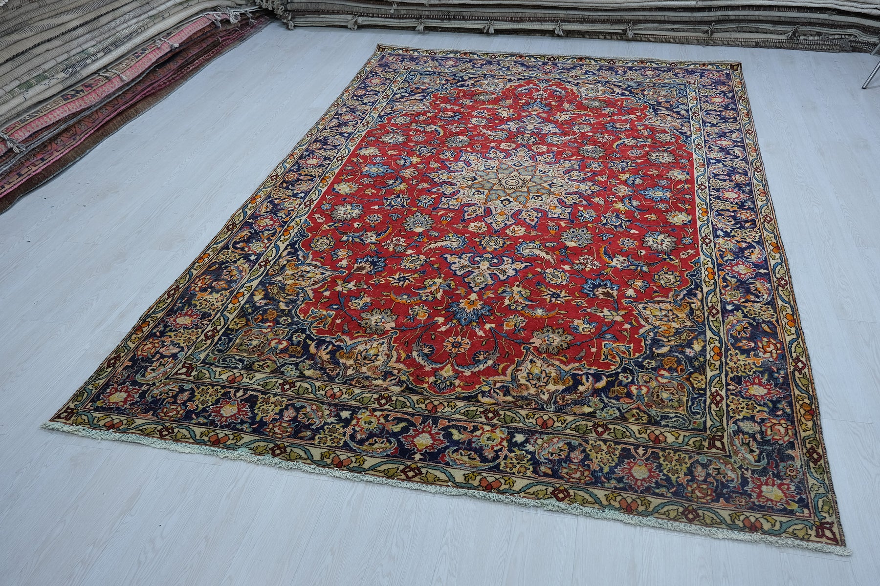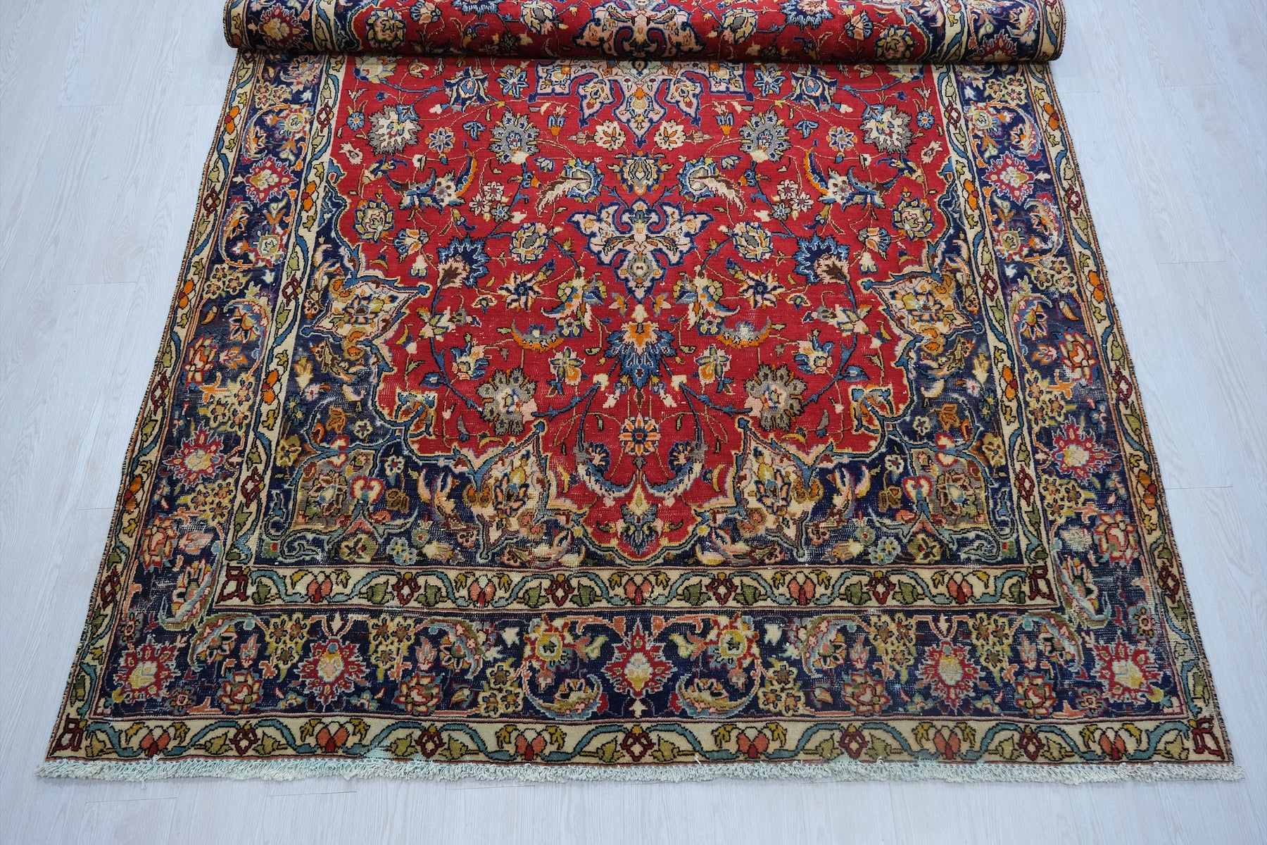 This is a hand-knotted, one-of-a-kind vintage rug. Due to the nature of this piece, there may be slight imperfections in its wear, shape, dimensions, and color. All of our rugs are professionally cleaned and repaired.