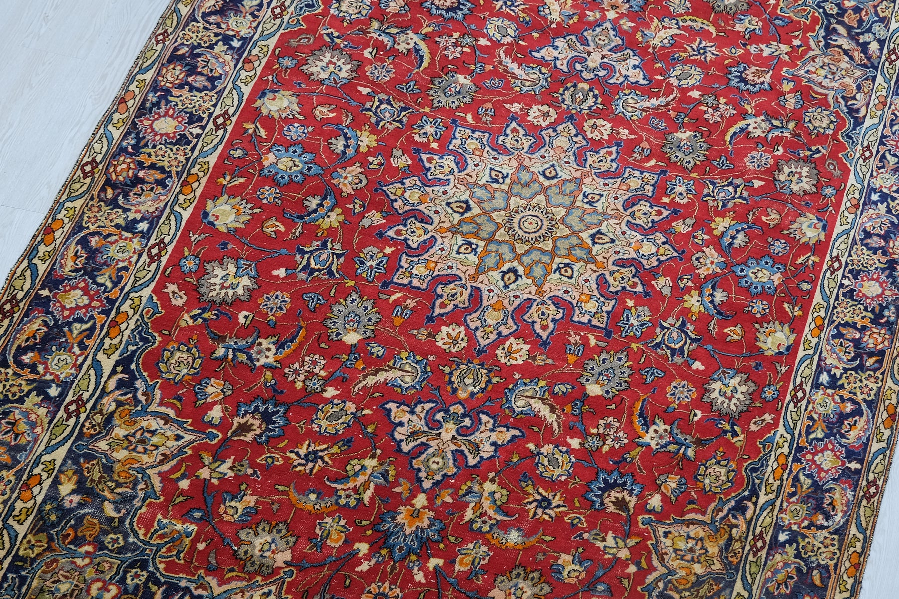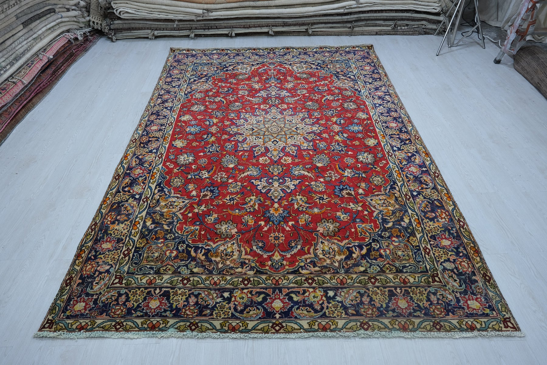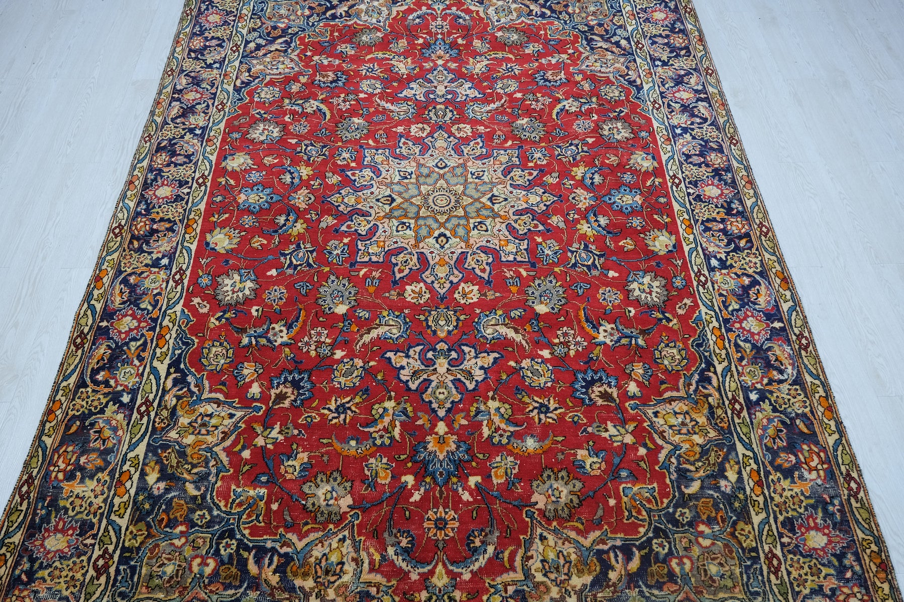 This is a hand-knotted, one-of-a-kind vintage rug. Due to the nature of this piece, there may be slight imperfections in its wear, shape, dimensions, and color. All of our rugs are professionally cleaned and repaired.