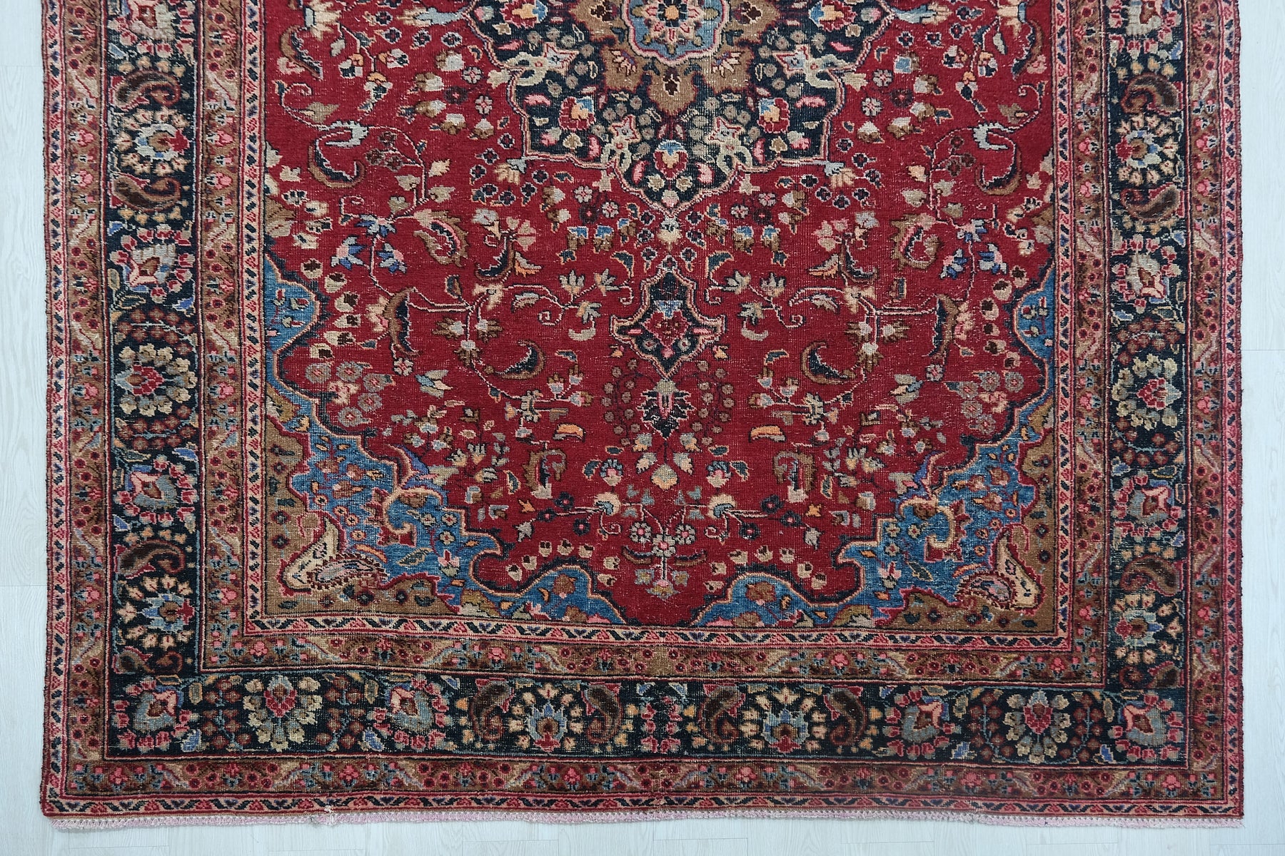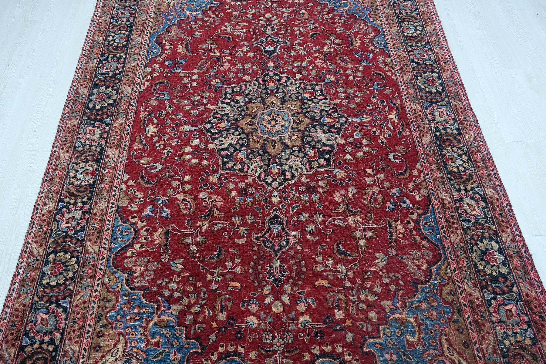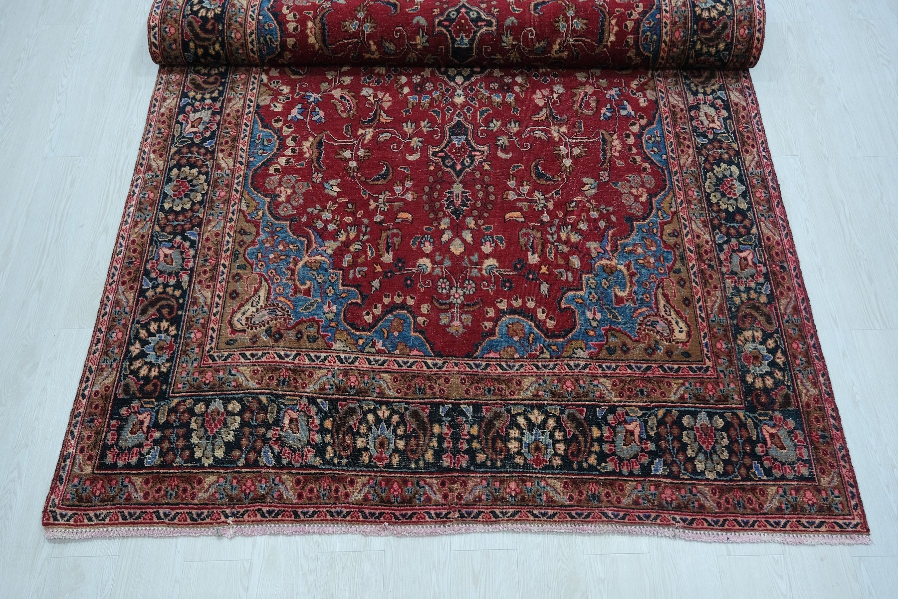 This is a hand-knotted, one-of-a-kind vintage rug. Due to the nature of this piece, there may be slight imperfections in its wear, shape, dimensions, and color. All of our rugs are professionally cleaned and repaired.