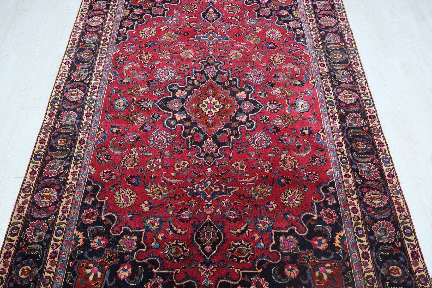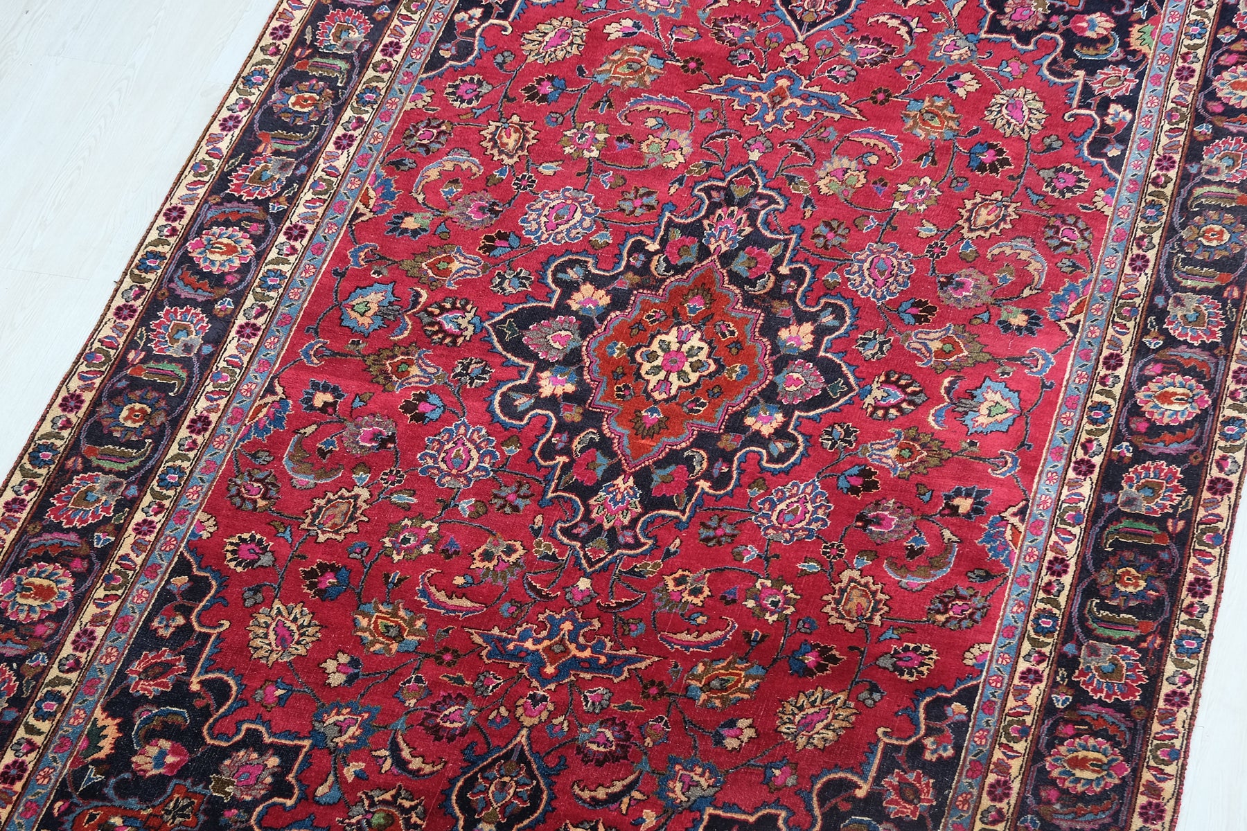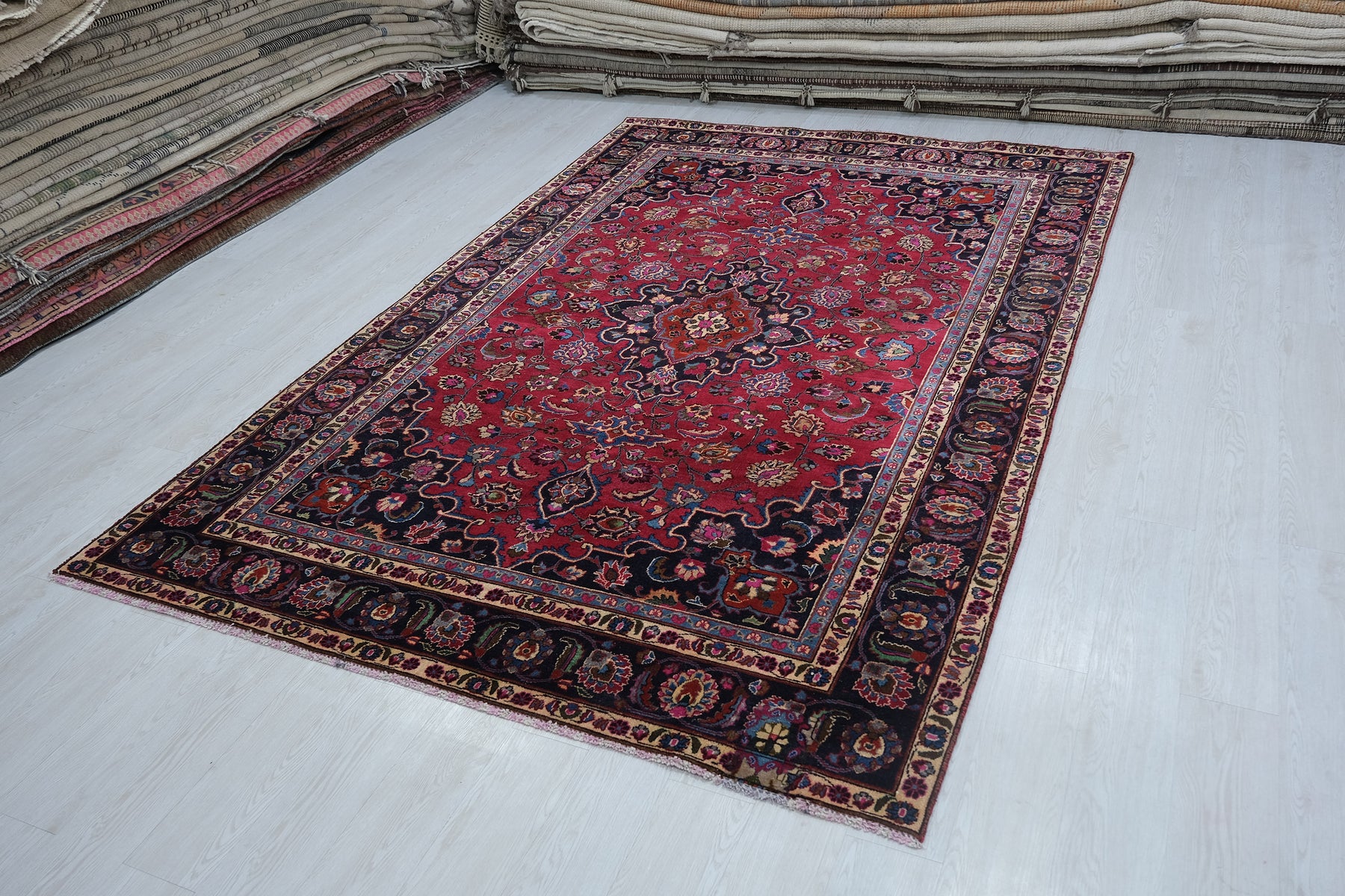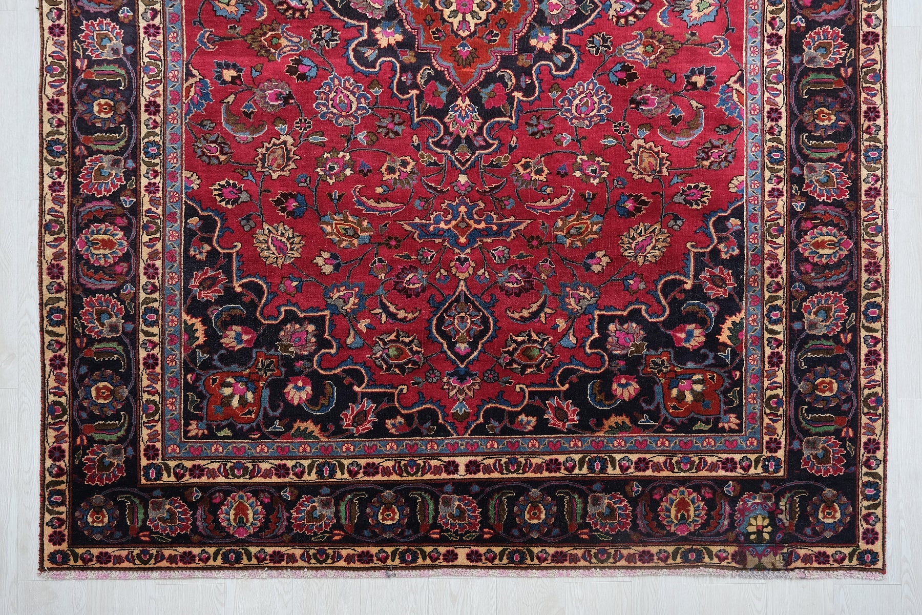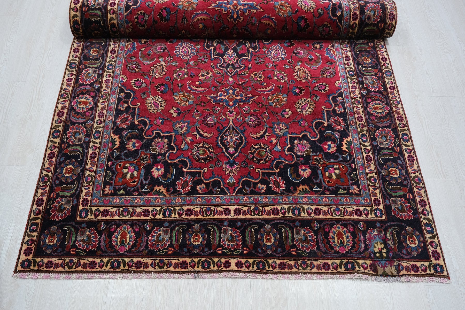 This is a hand-knotted, one-of-a-kind vintage rug. Due to the nature of this piece, there may be slight imperfections in its wear, shape, dimensions, and color. All of our rugs are professionally cleaned and repaired.