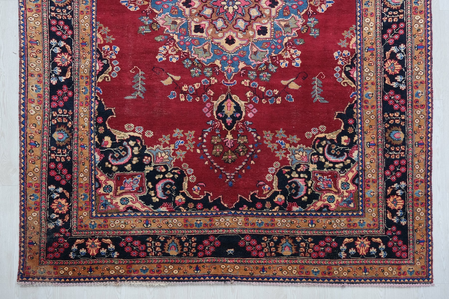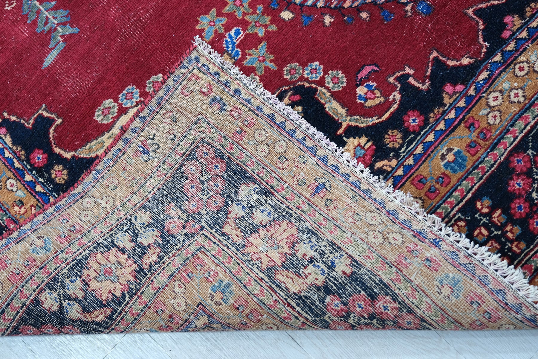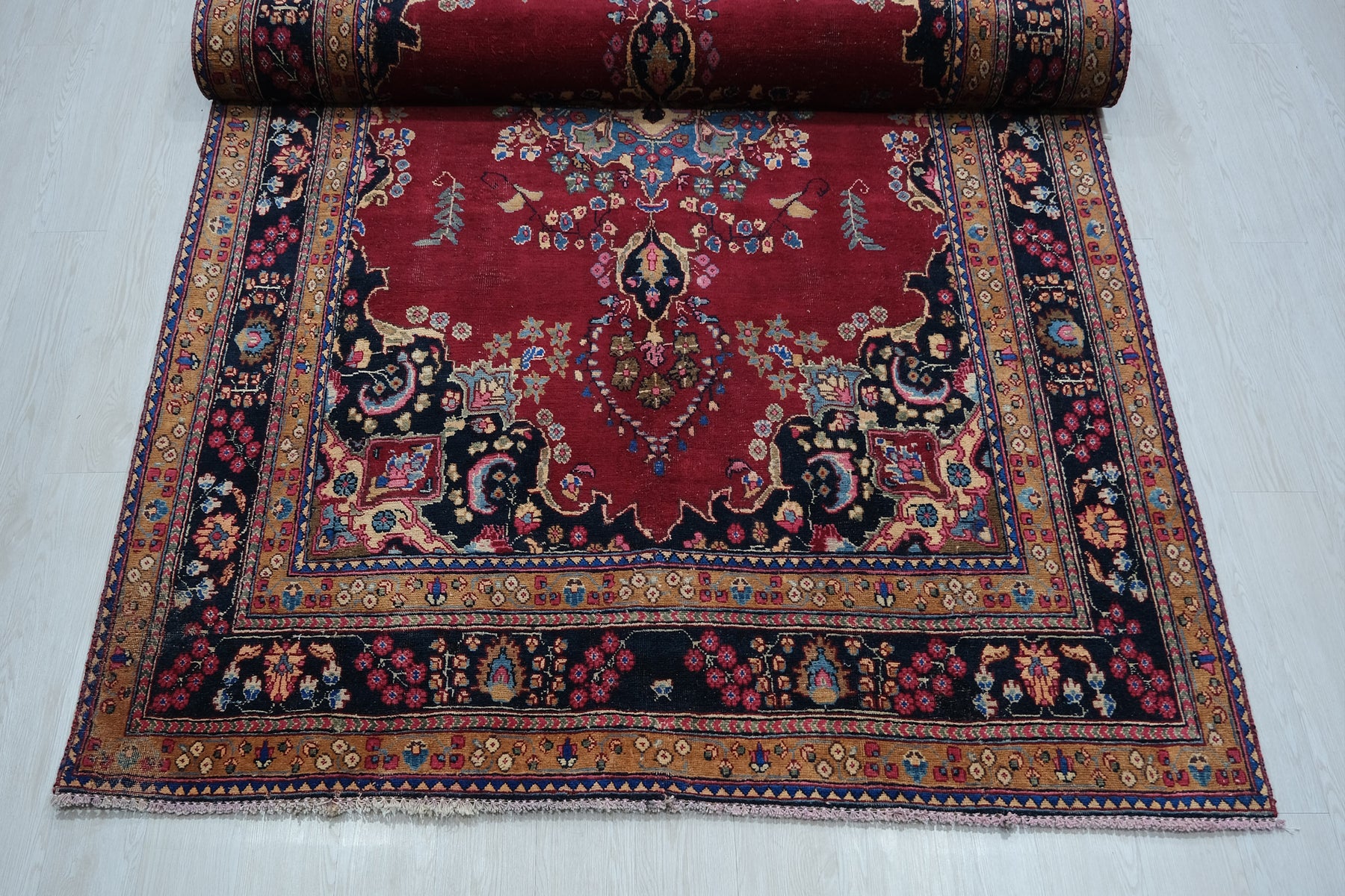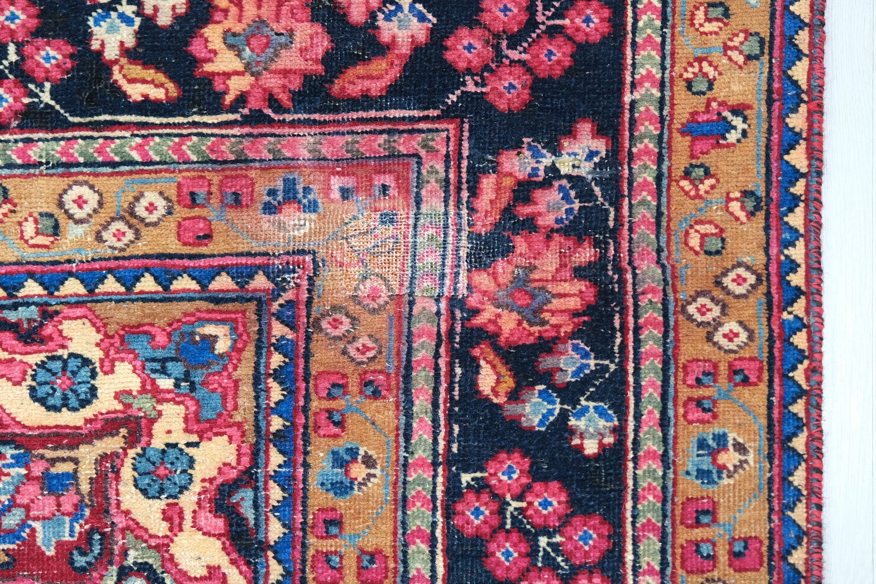 This is a hand-knotted, one-of-a-kind vintage rug. Due to the nature of this piece, there may be slight imperfections in its wear, shape, dimensions, and color. All of our rugs are professionally cleaned and repaired.