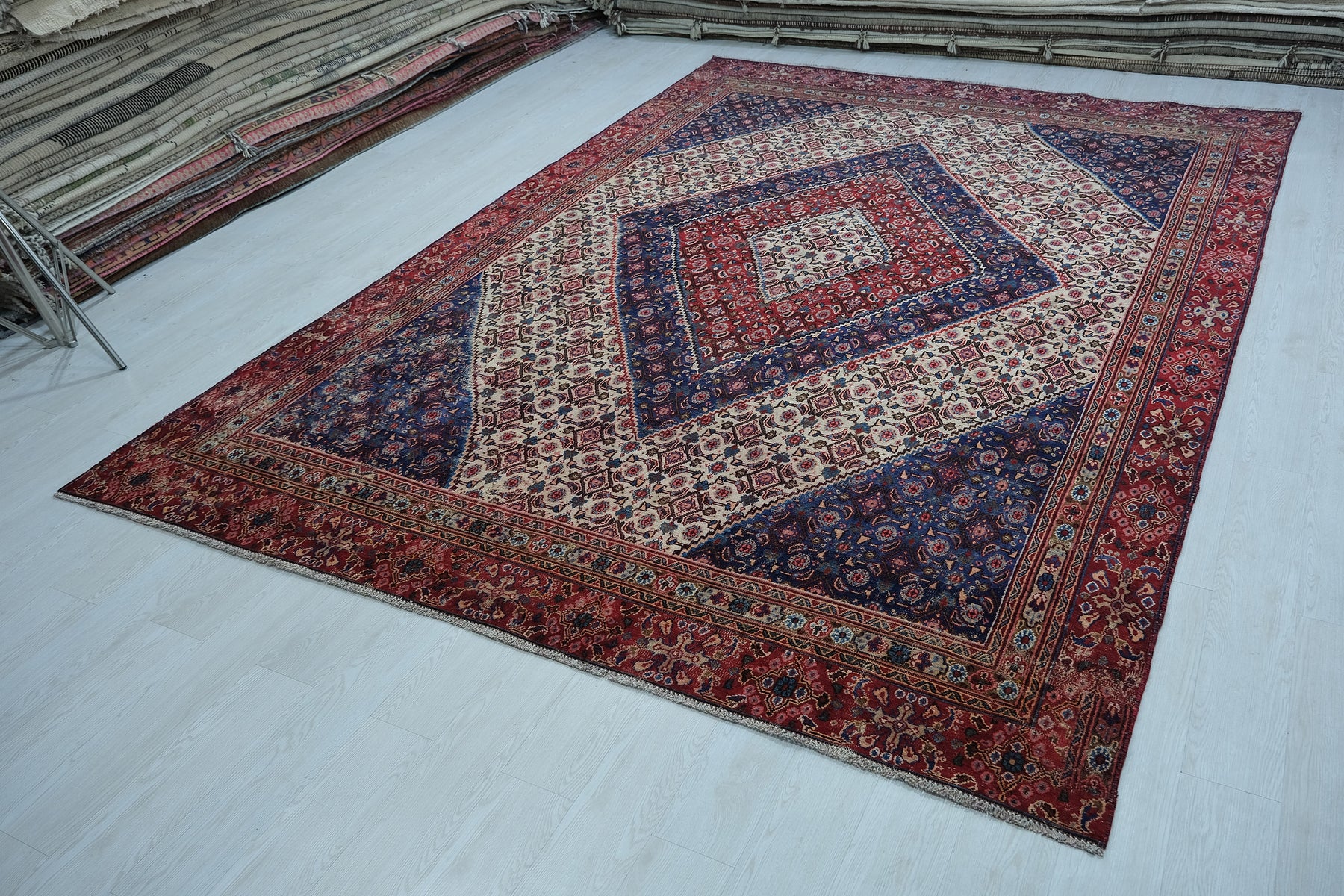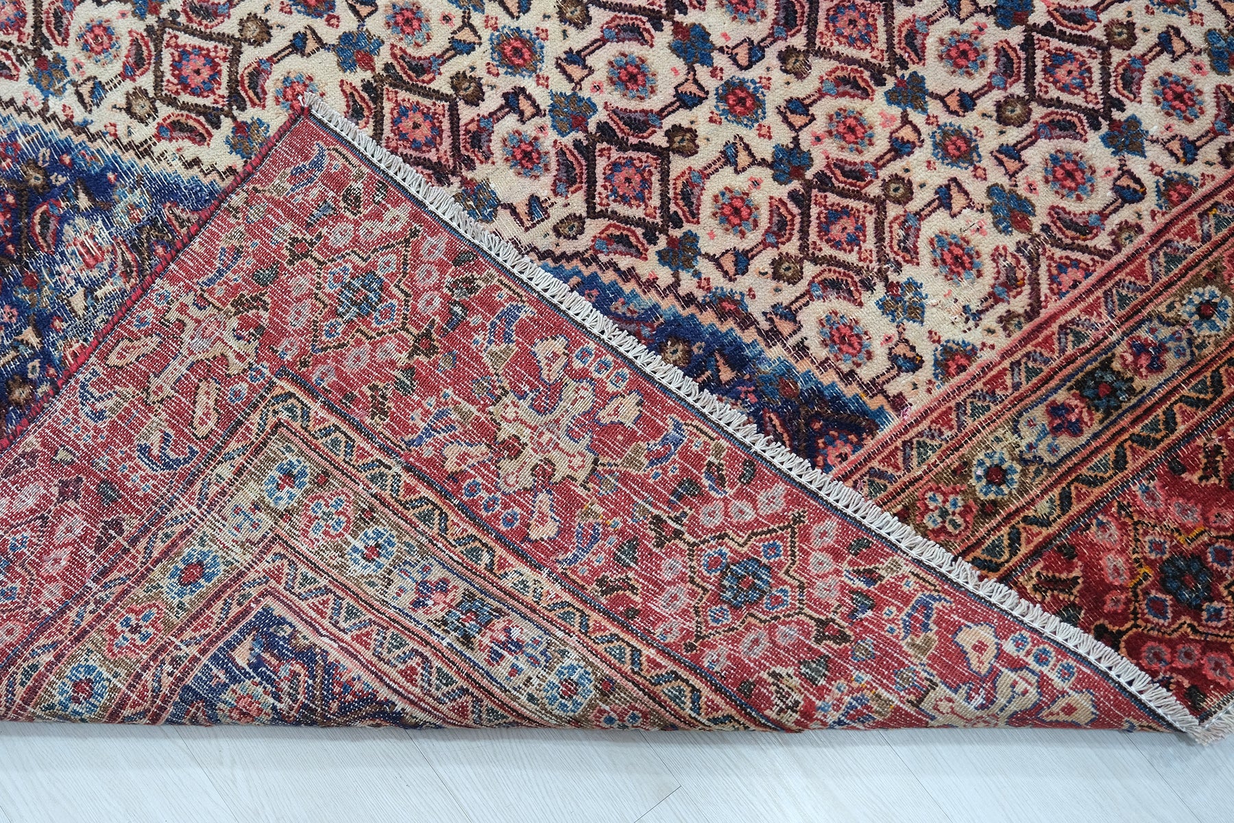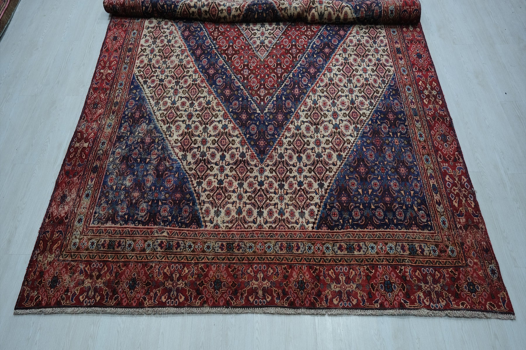 This is a hand-knotted, one-of-a-kind vintage rug. Due to the nature of this piece, there may be slight imperfections in its wear, shape, dimensions, and color. All of our rugs are professionally cleaned and repaired.