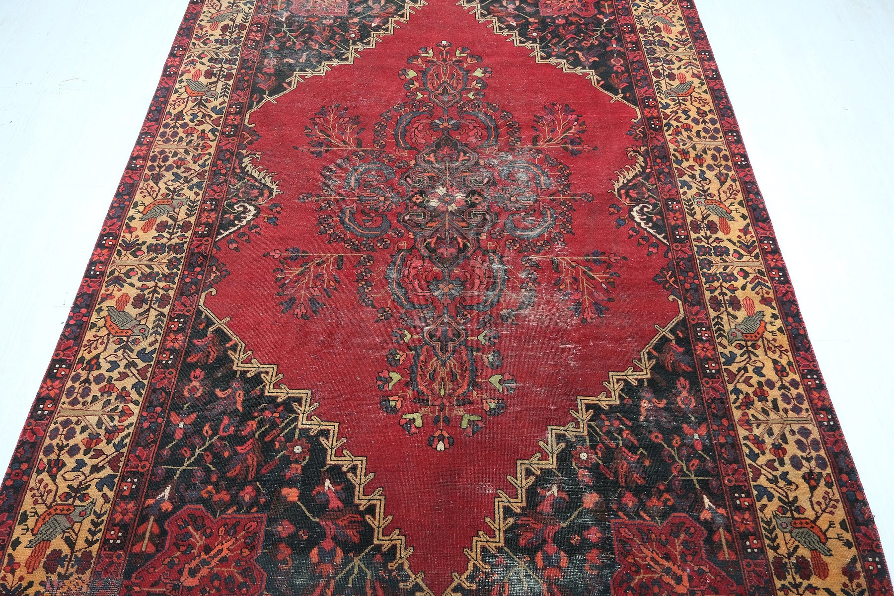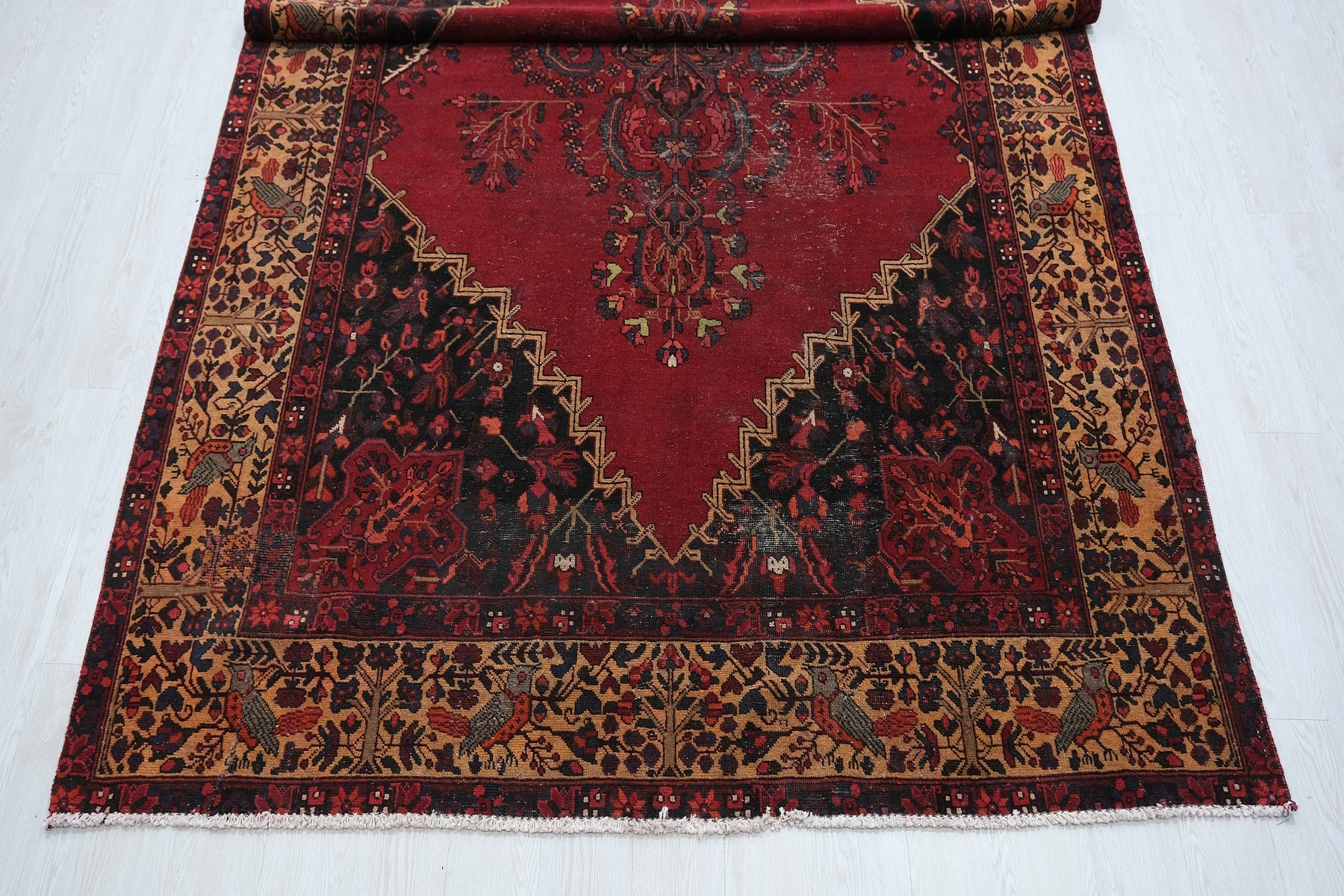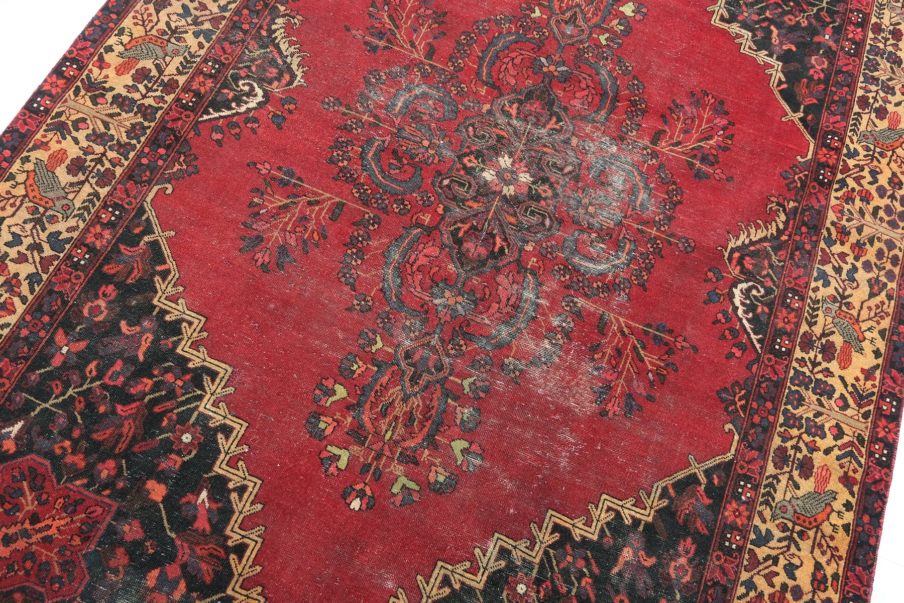 This is a hand-knotted, one-of-a-kind vintage rug. Due to the nature of this piece, there may be slight imperfections in its wear, shape, dimensions, and color. All of our rugs are professionally cleaned and repaired.