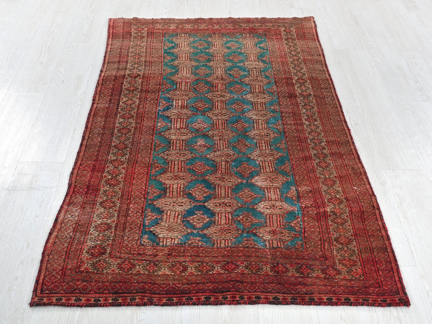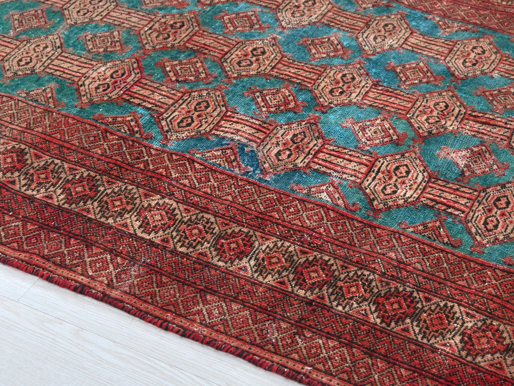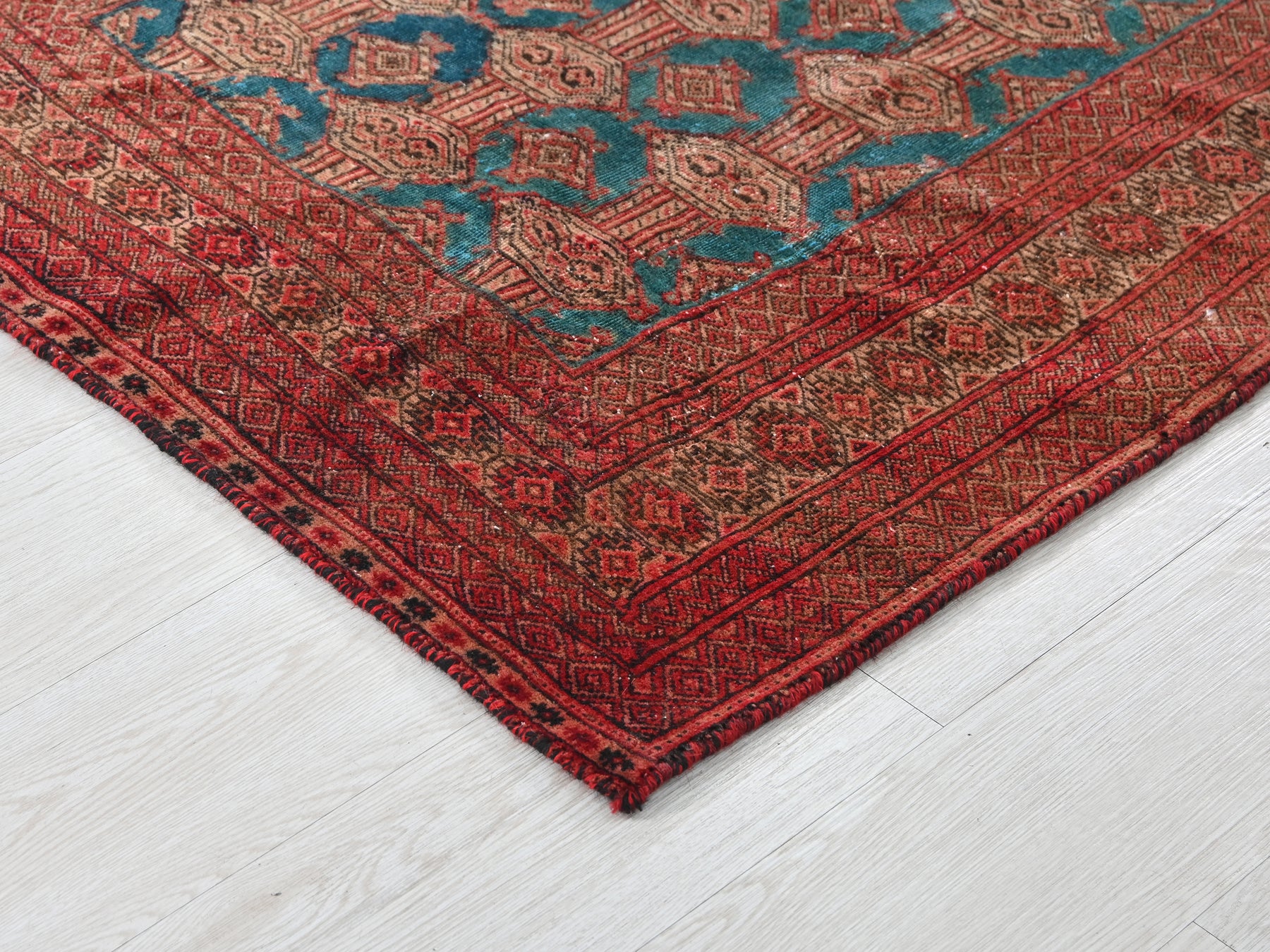 This is a hand-knotted, one-of-a-kind vintage rug. Due to the nature of this piece, there may be slight imperfections in its wear, shape, dimensions, and color. All of our rugs are professionally cleaned and repaired.