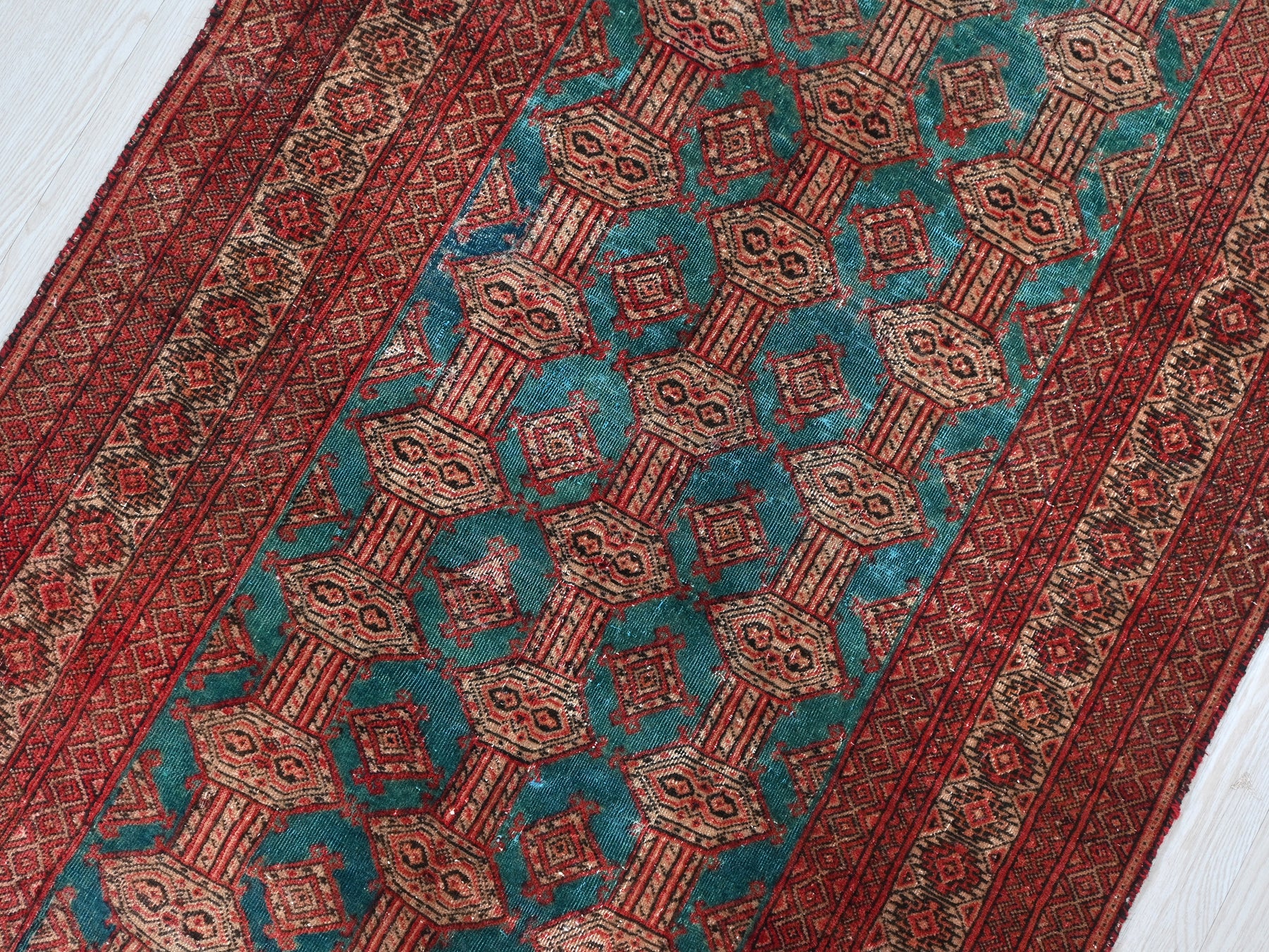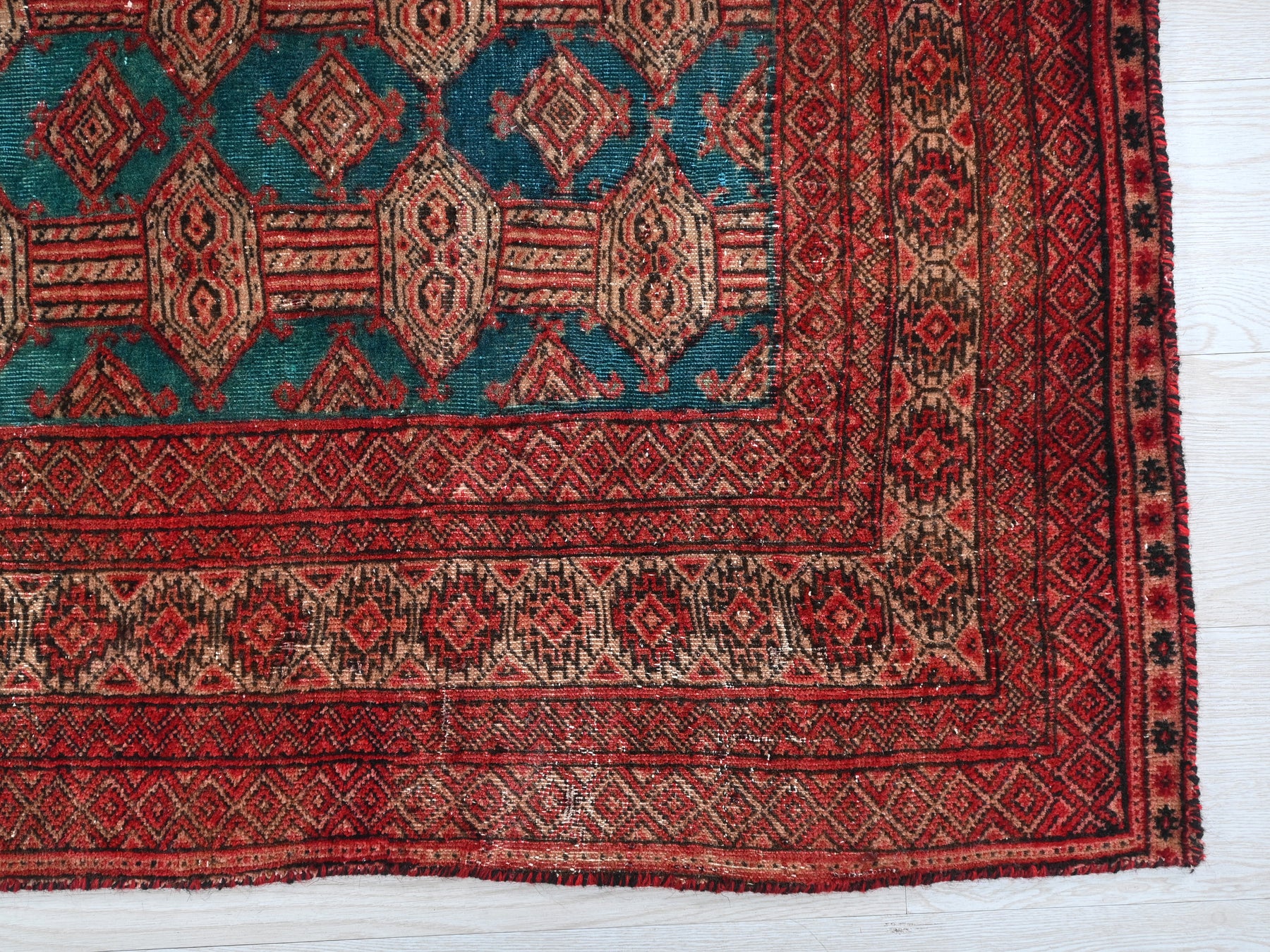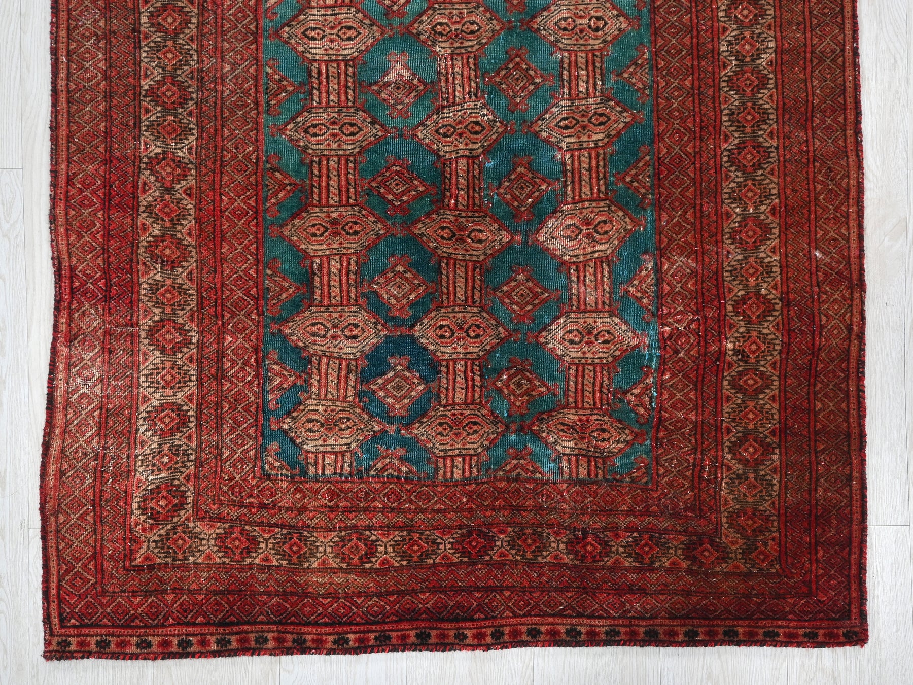 This is a hand-knotted, one-of-a-kind vintage rug. Due to the nature of this piece, there may be slight imperfections in its wear, shape, dimensions, and color. All of our rugs are professionally cleaned and repaired.