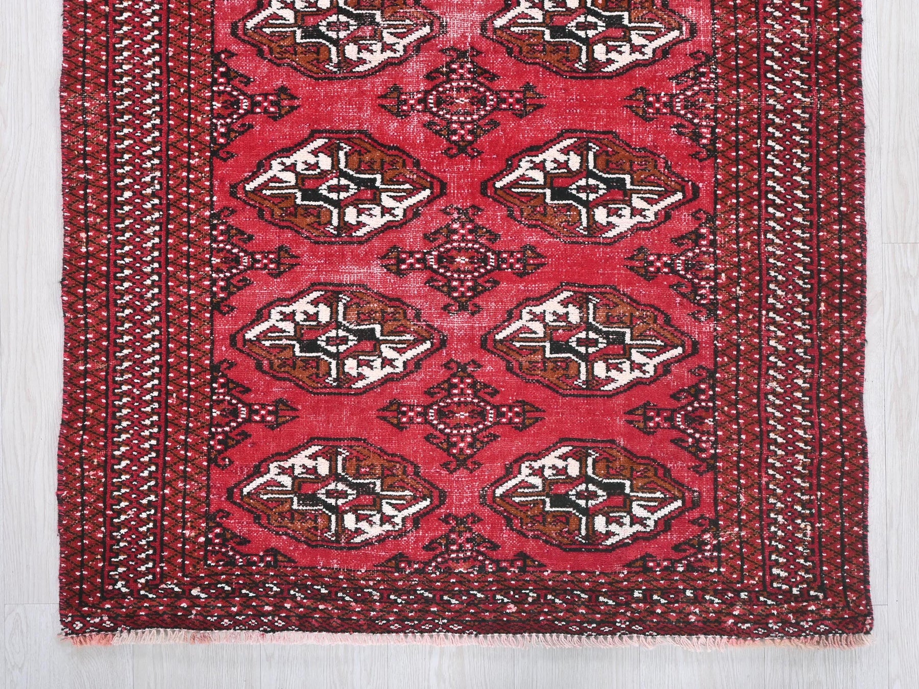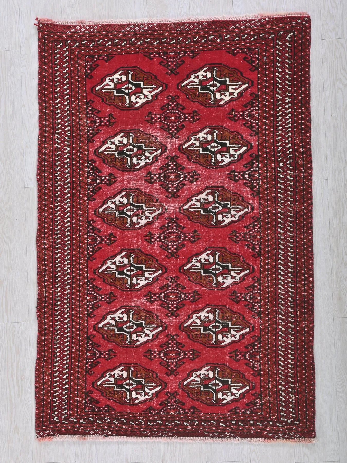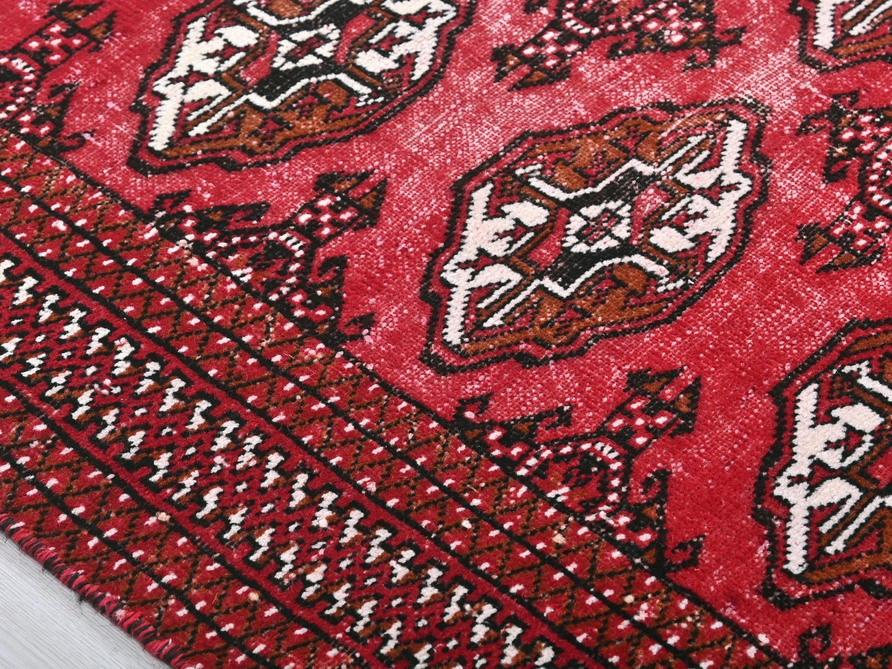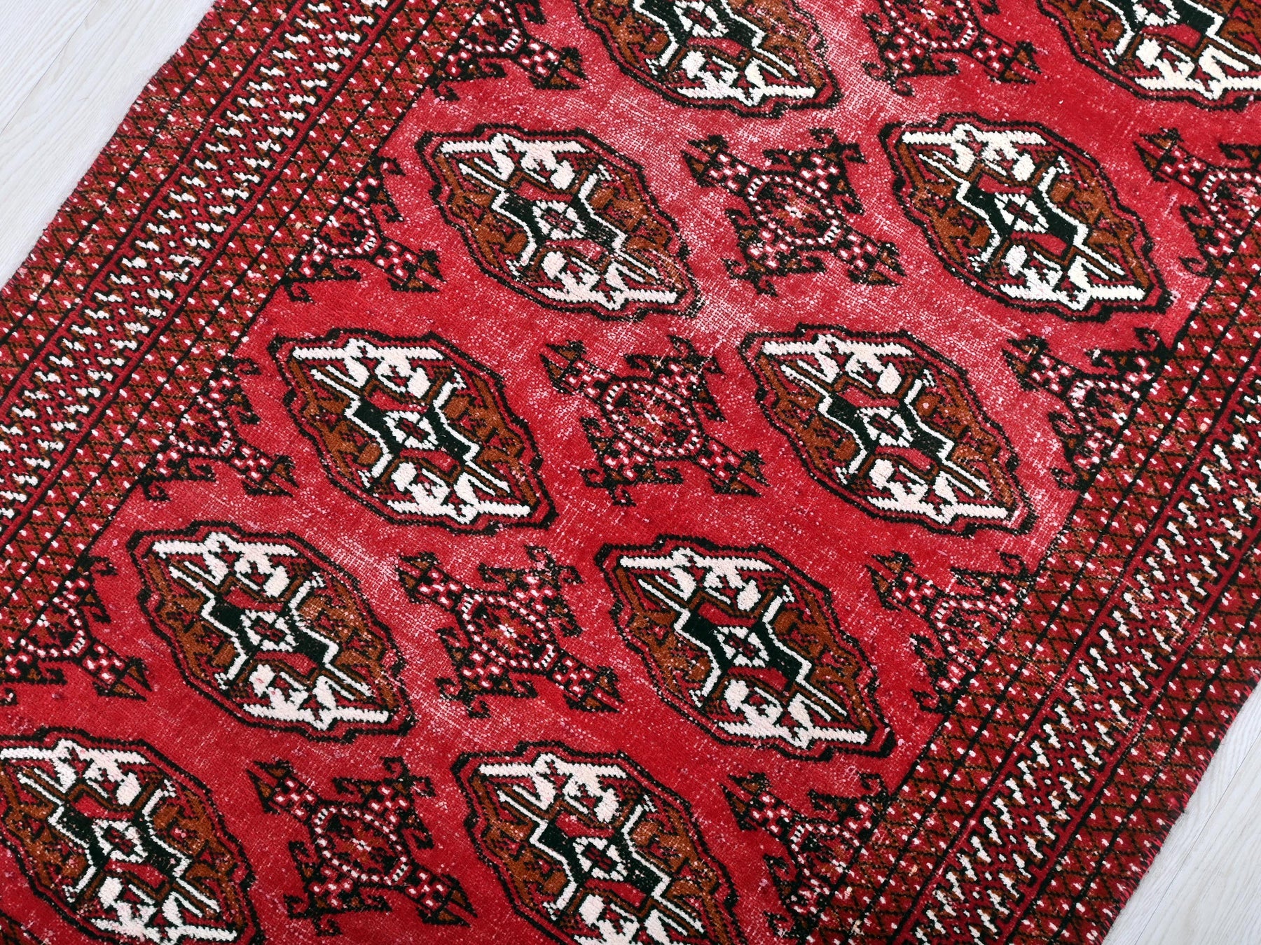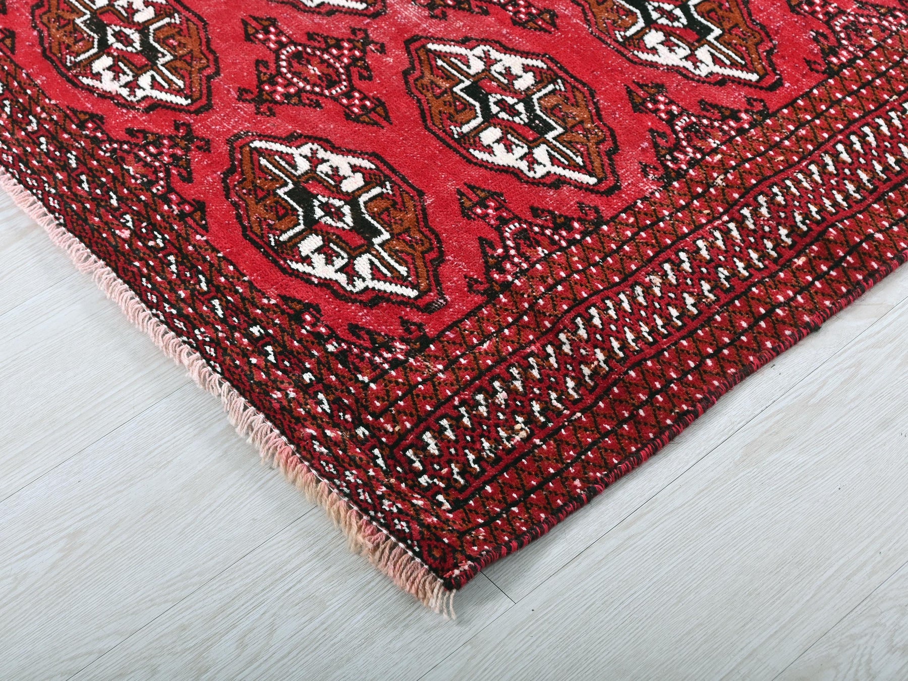 This is a hand-knotted, one-of-a-kind vintage rug. Due to the nature of this piece, there may be slight imperfections in its wear, shape, dimensions, and color. All of our rugs are professionally cleaned and repaired.