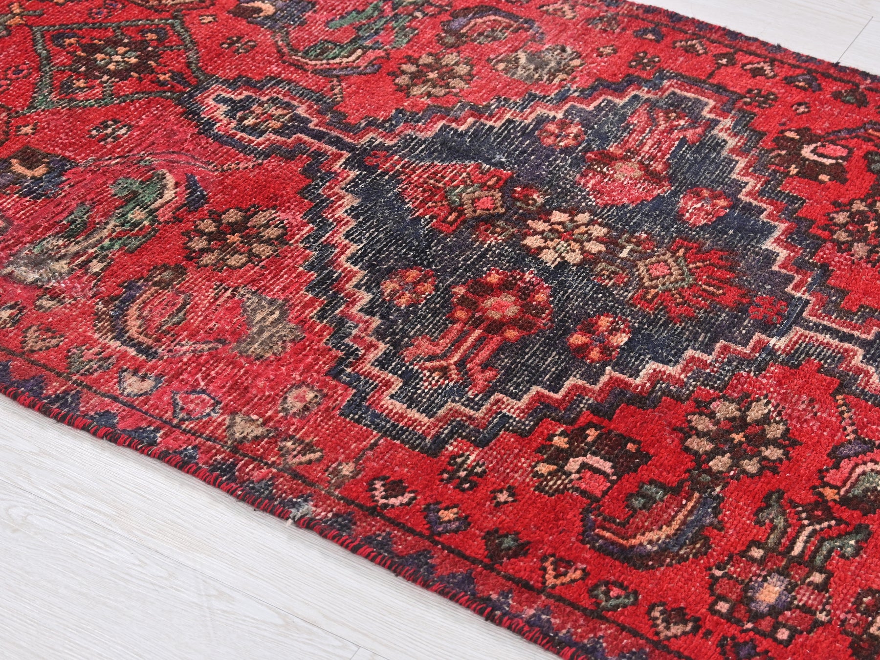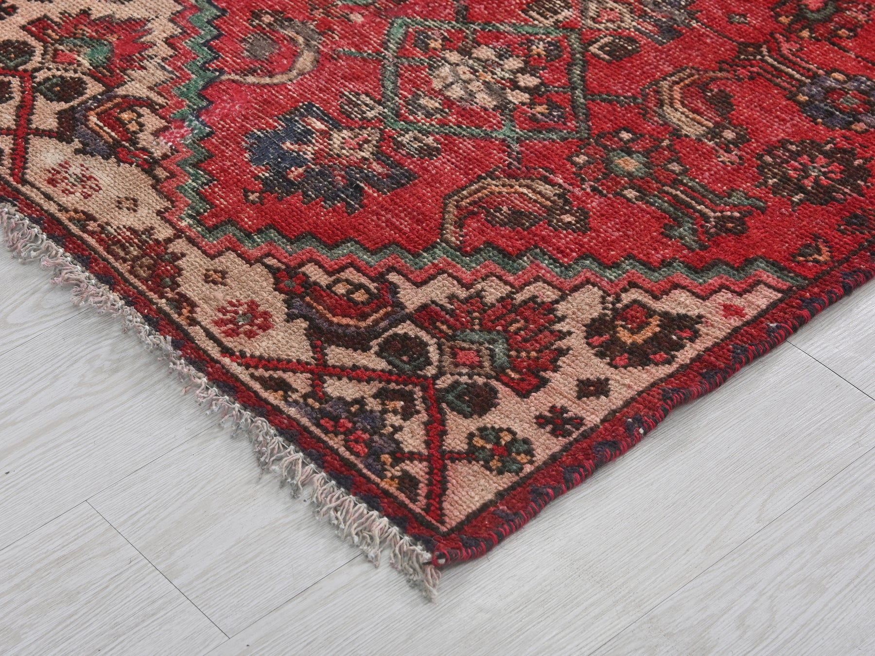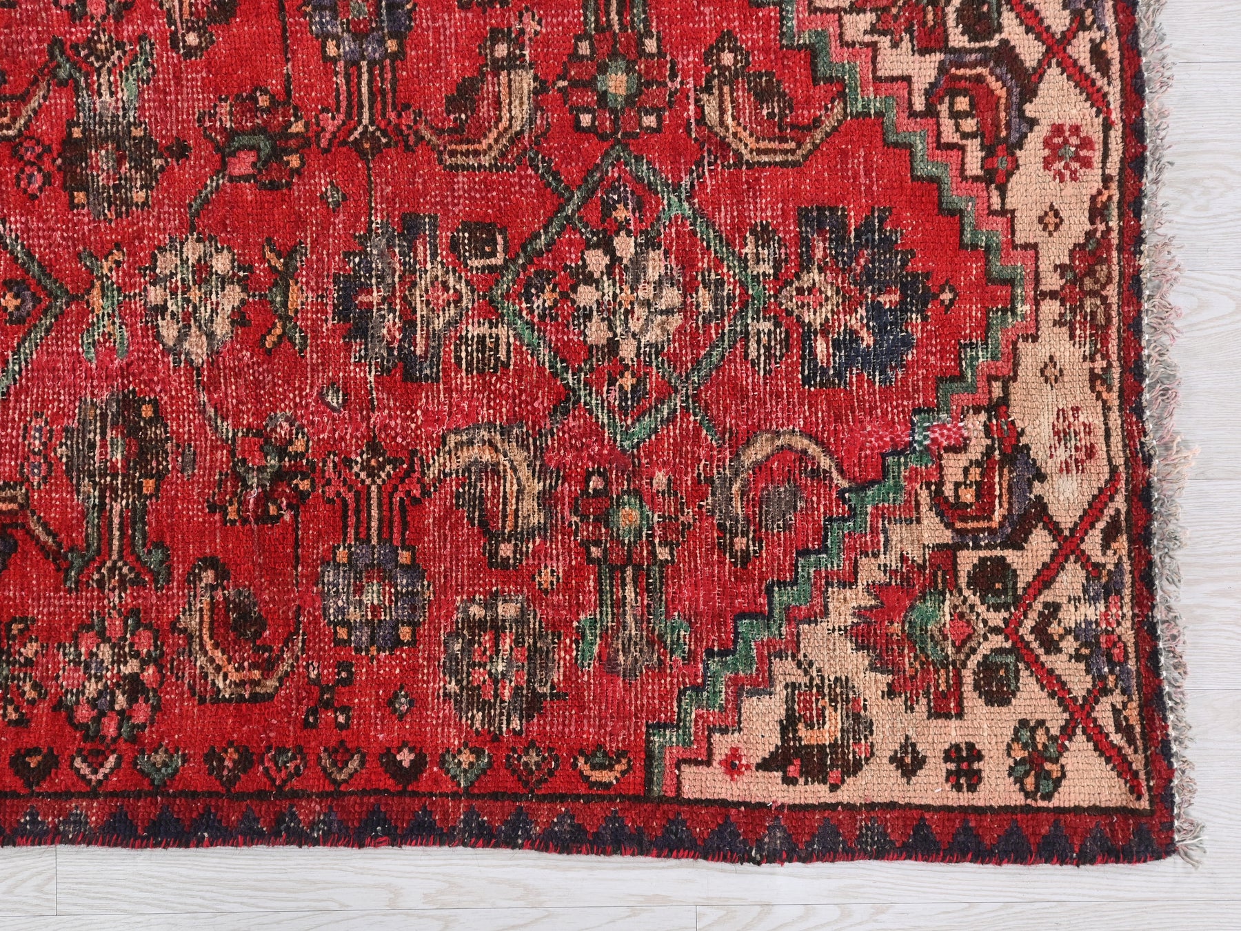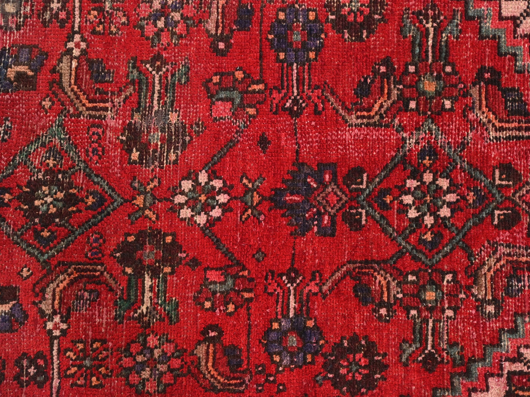This is a hand-knotted, one-of-a-kind vintage rug. Due to the nature of this piece, there may be slight imperfections in its wear, shape, dimensions, and color. All of our rugs are professionally cleaned and repaired.