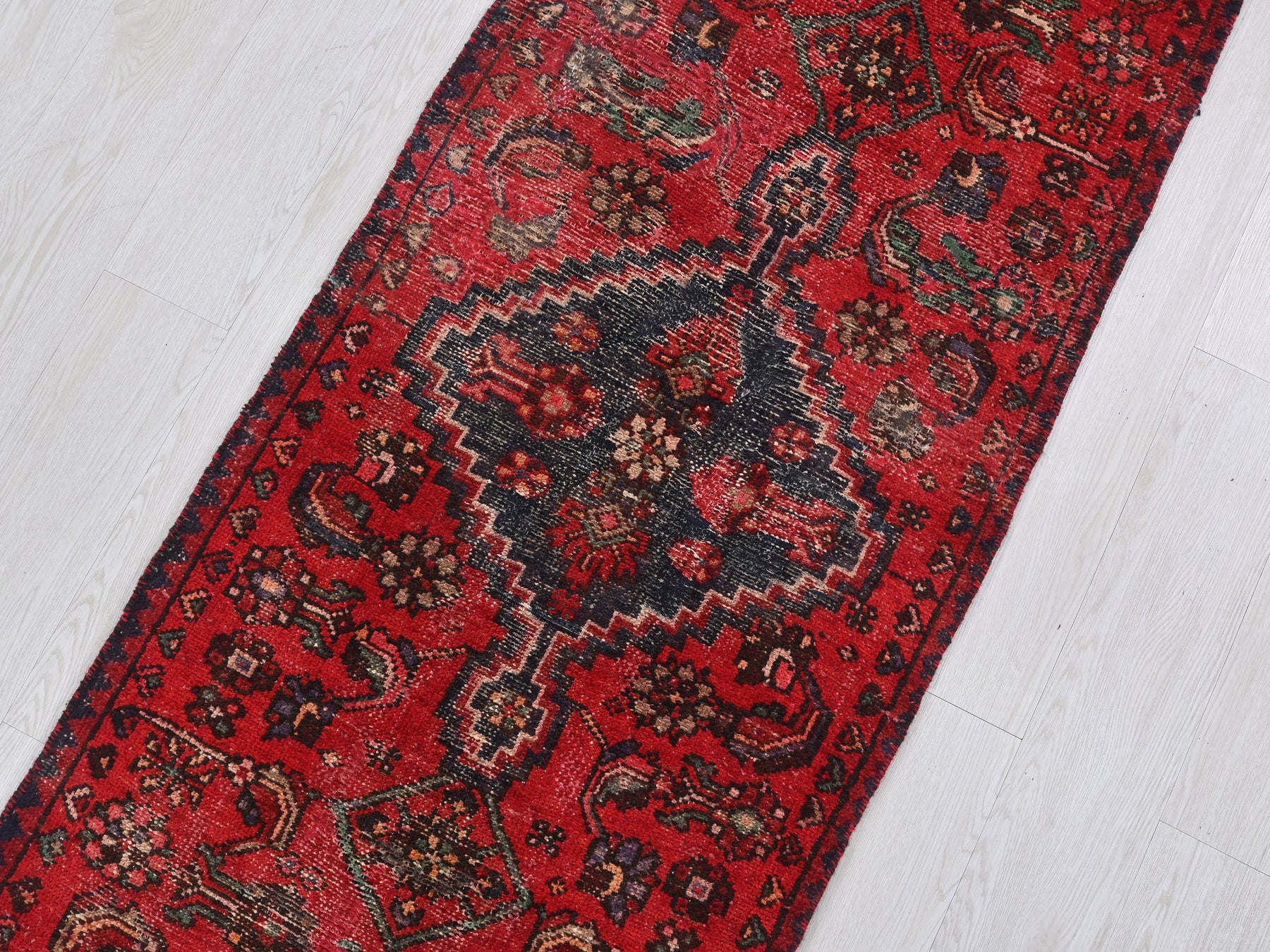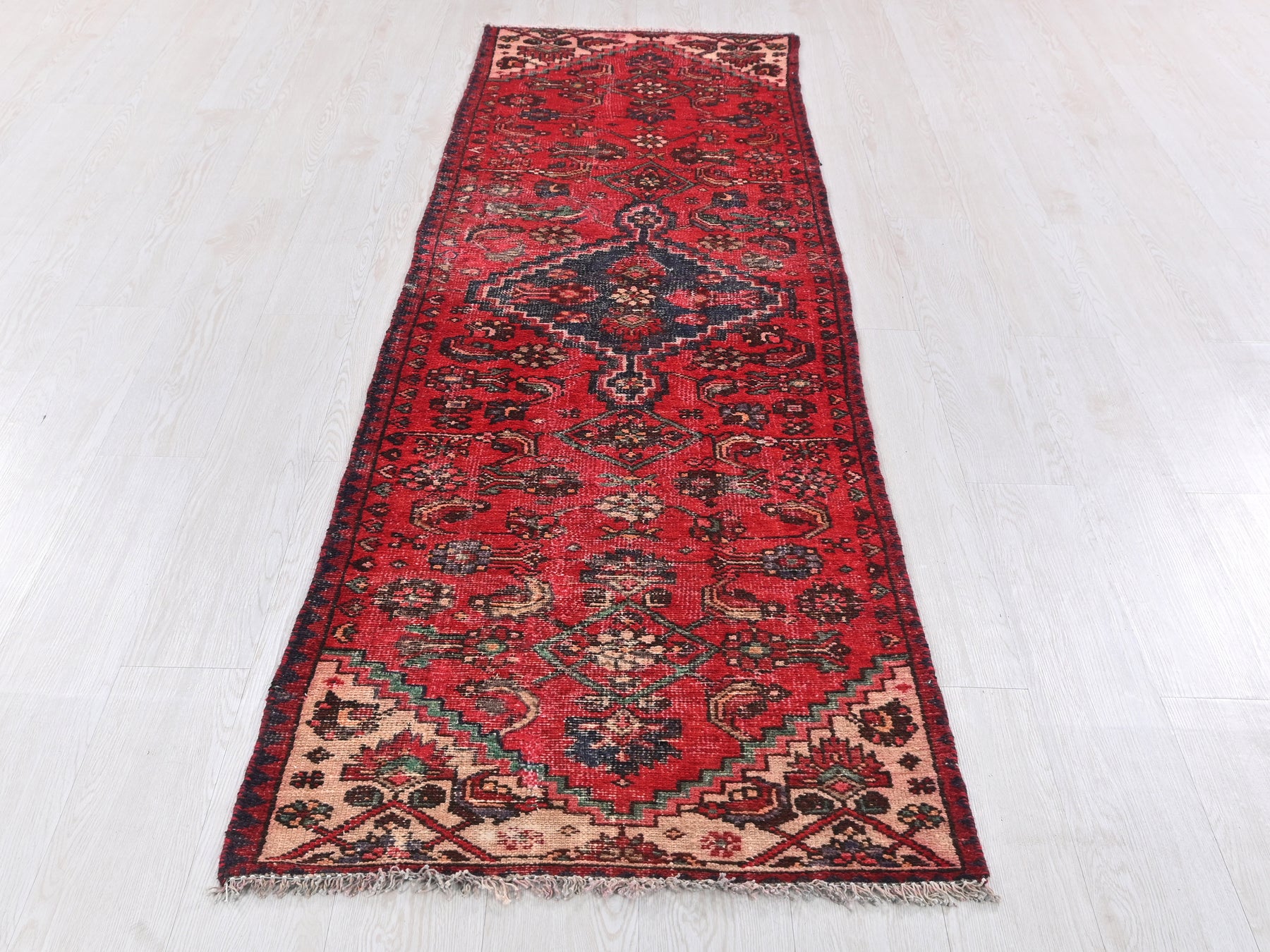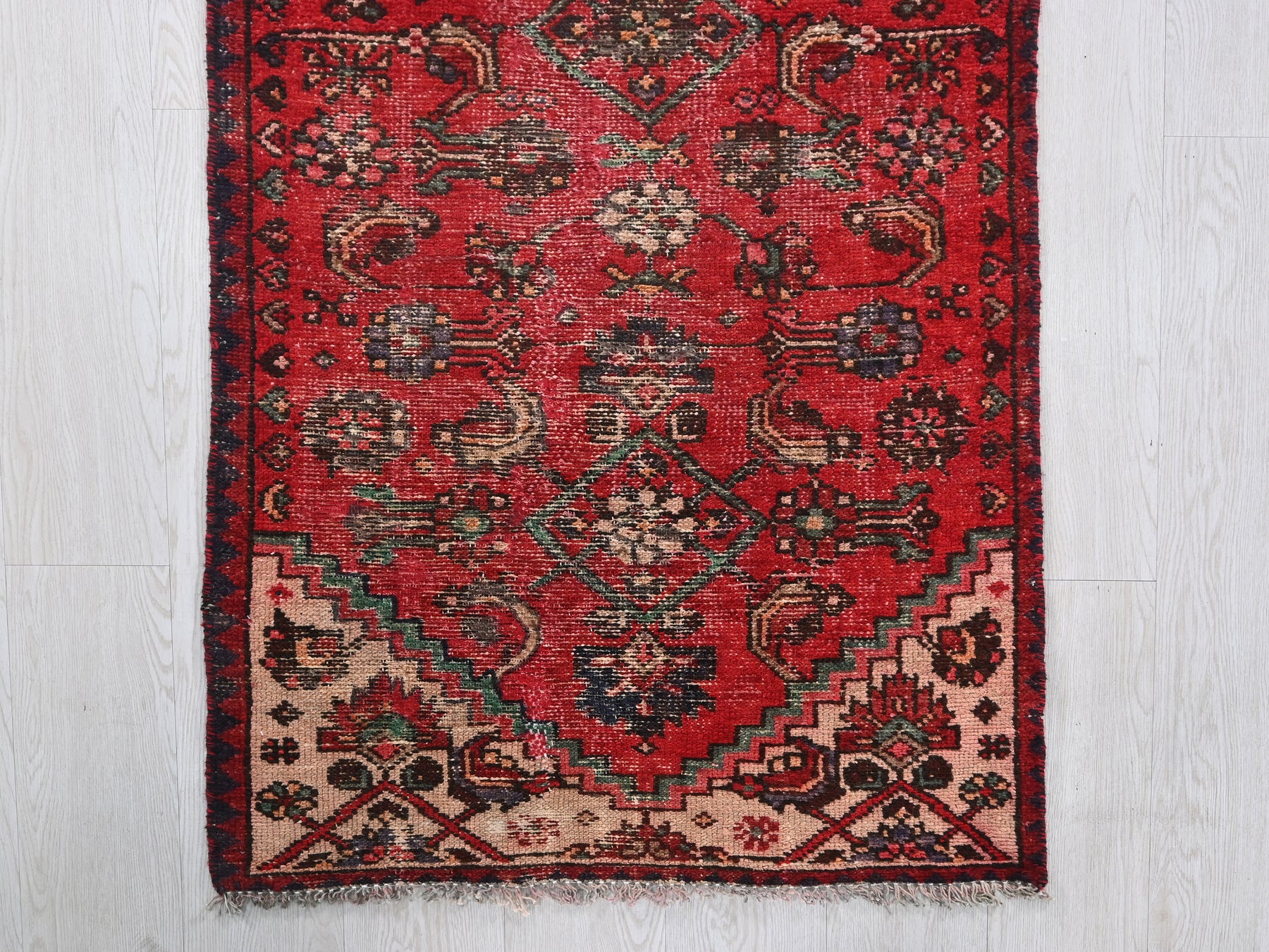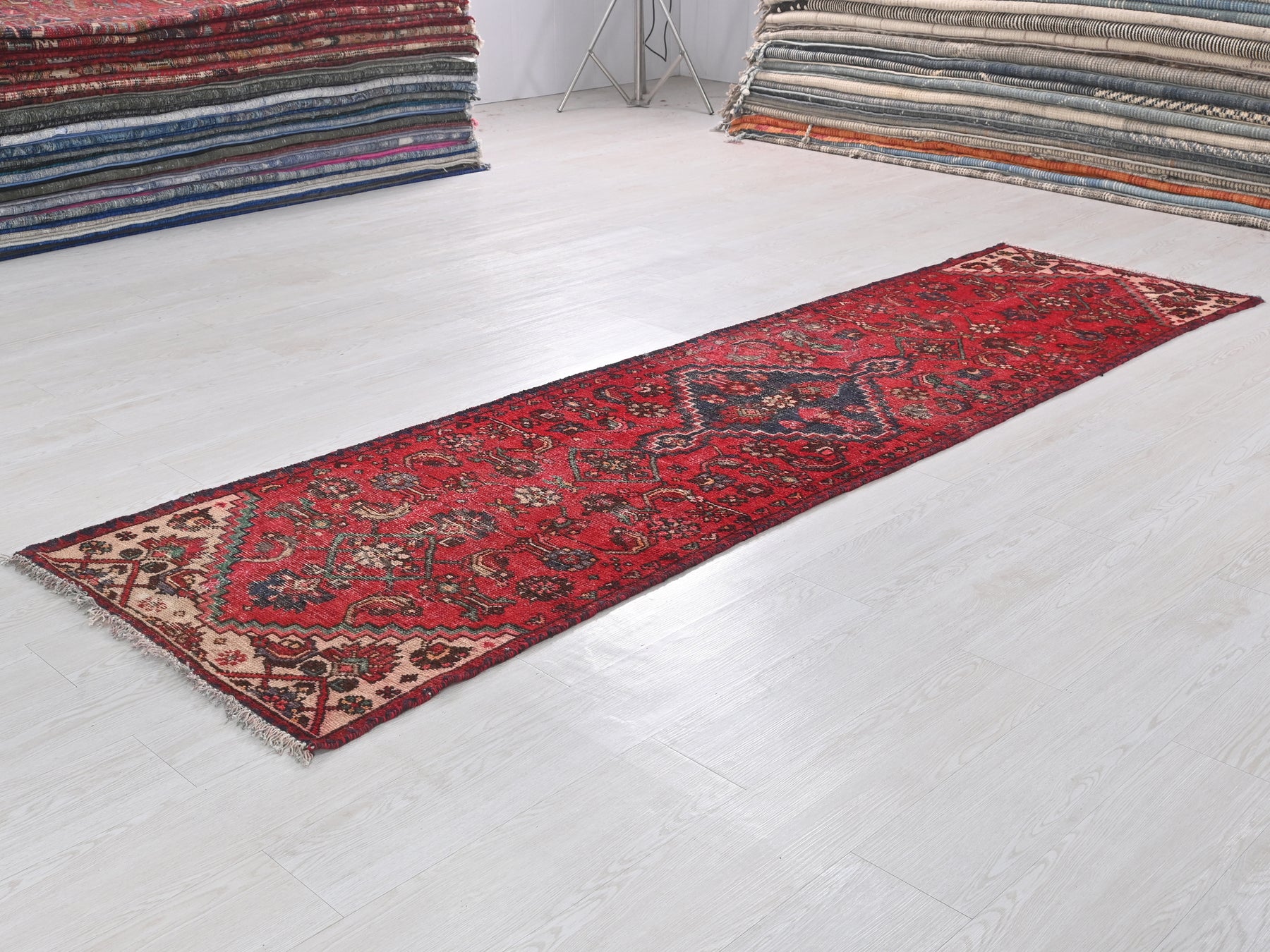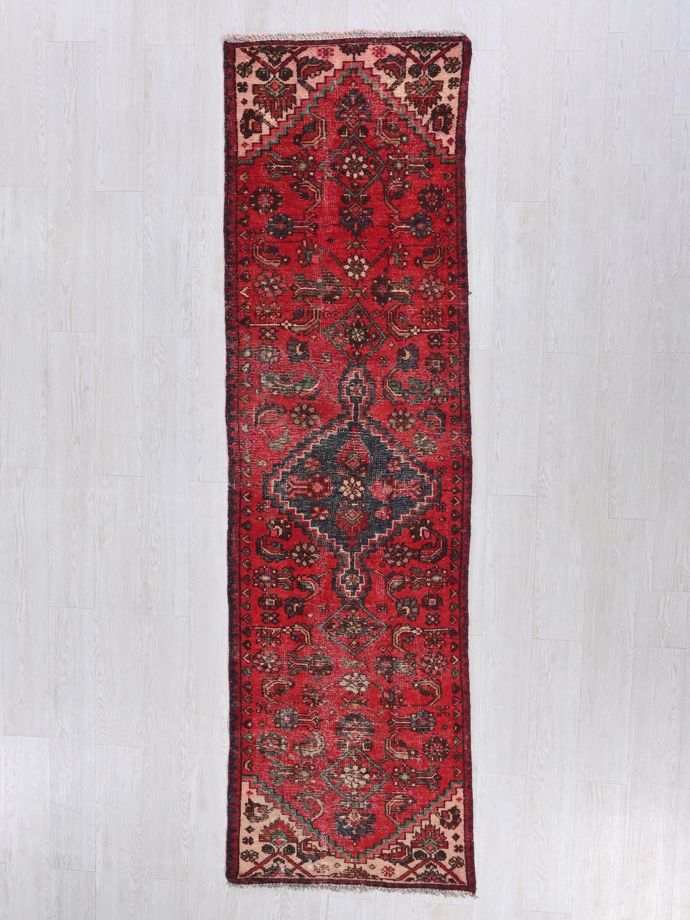 This is a hand-knotted, one-of-a-kind vintage rug. Due to the nature of this piece, there may be slight imperfections in its wear, shape, dimensions, and color. All of our rugs are professionally cleaned and repaired.