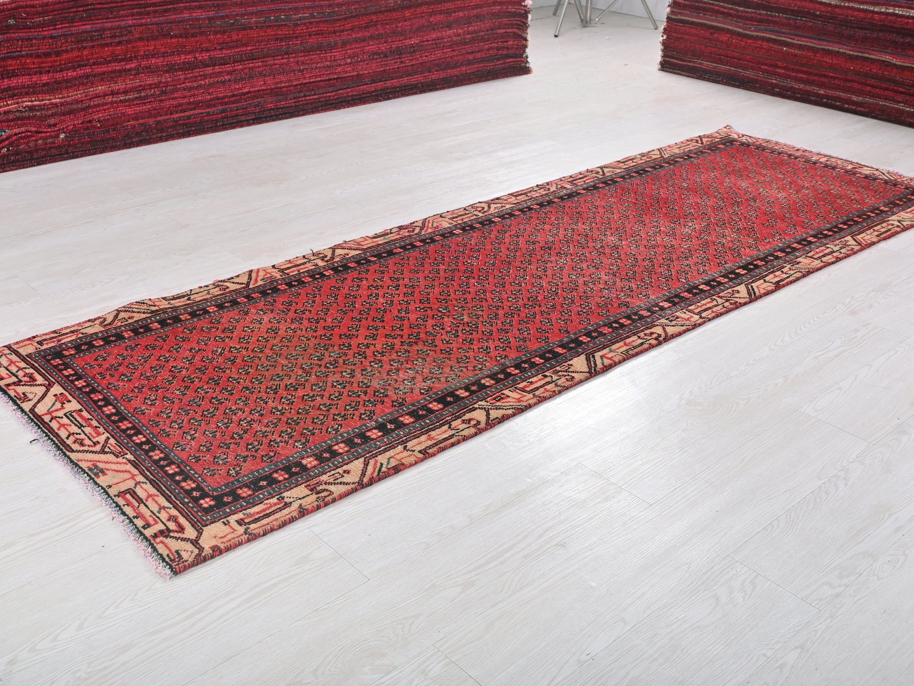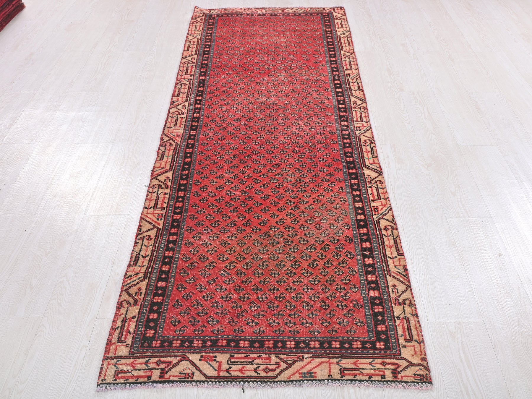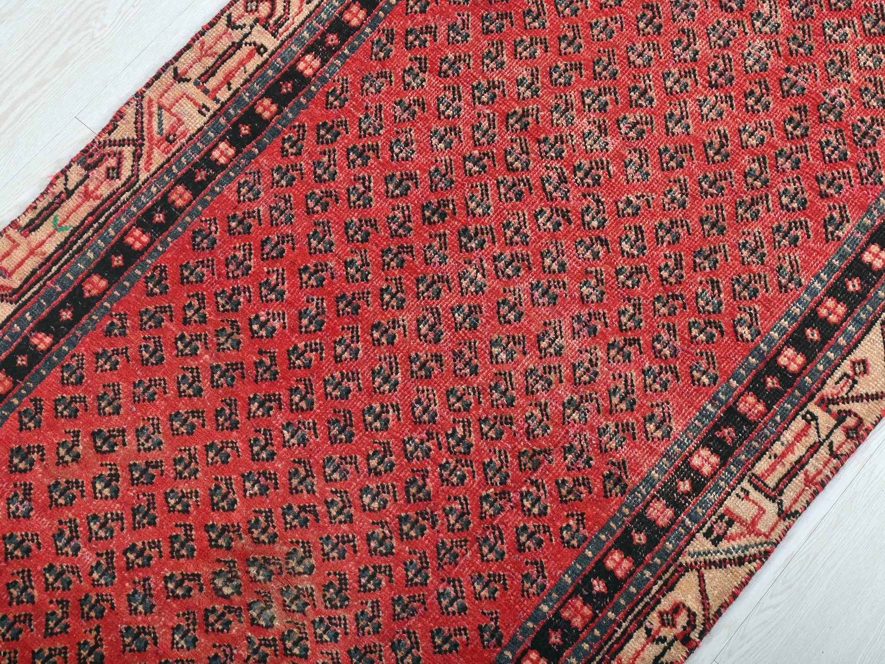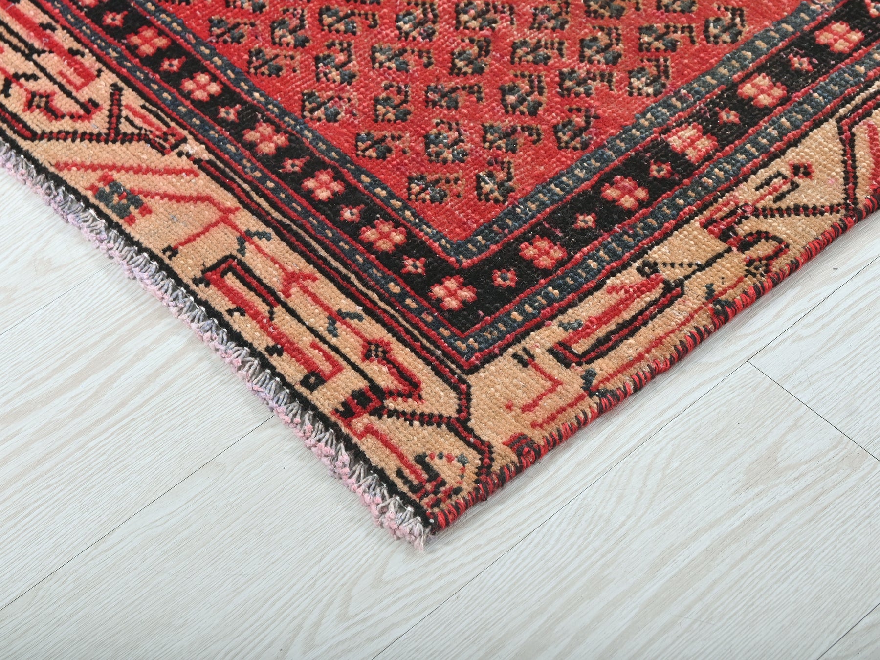 This is a hand-knotted, one-of-a-kind vintage rug. Due to the nature of this piece, there may be slight imperfections in its wear, shape, dimensions, and color. All of our rugs are professionally cleaned and repaired.