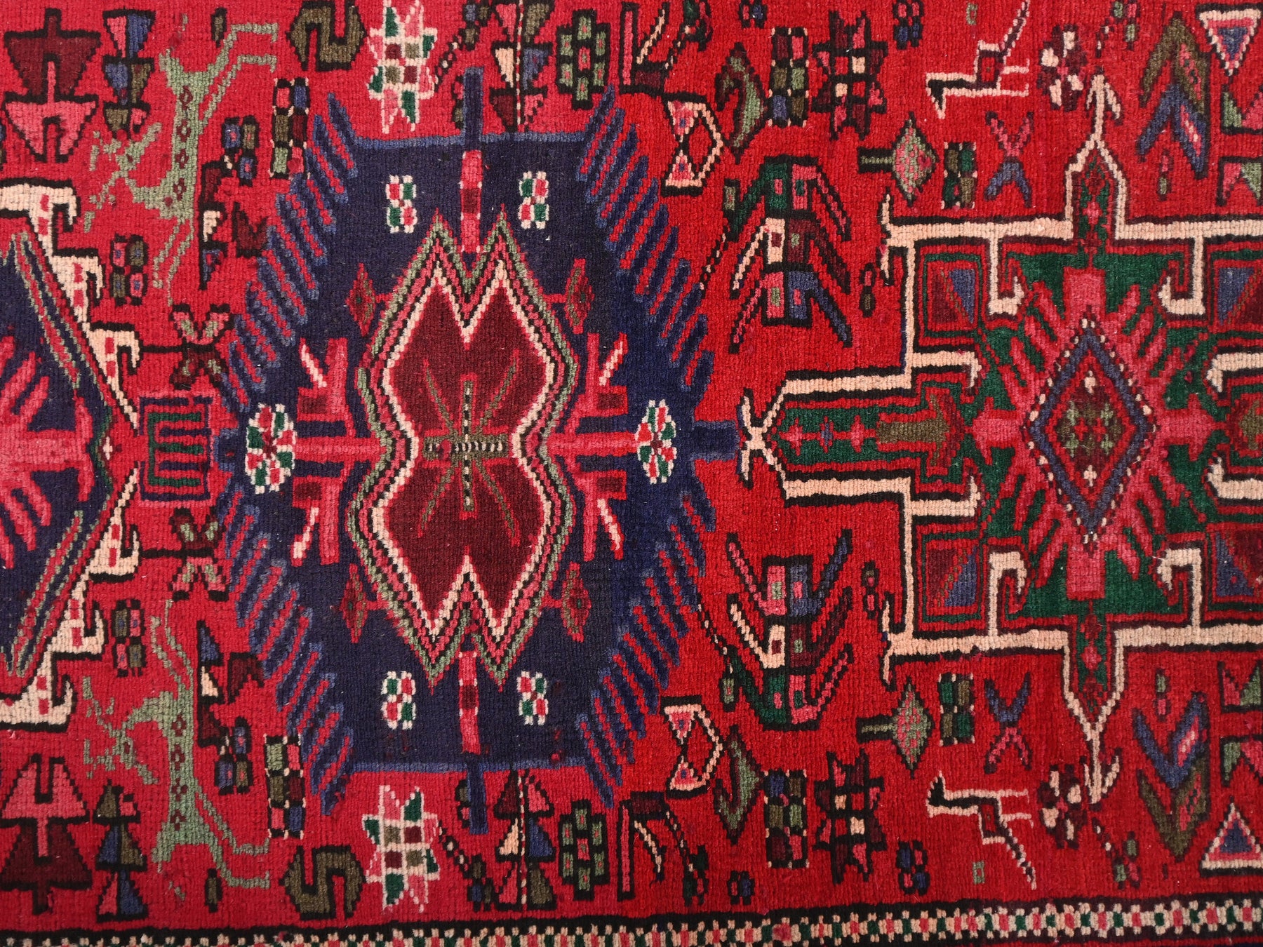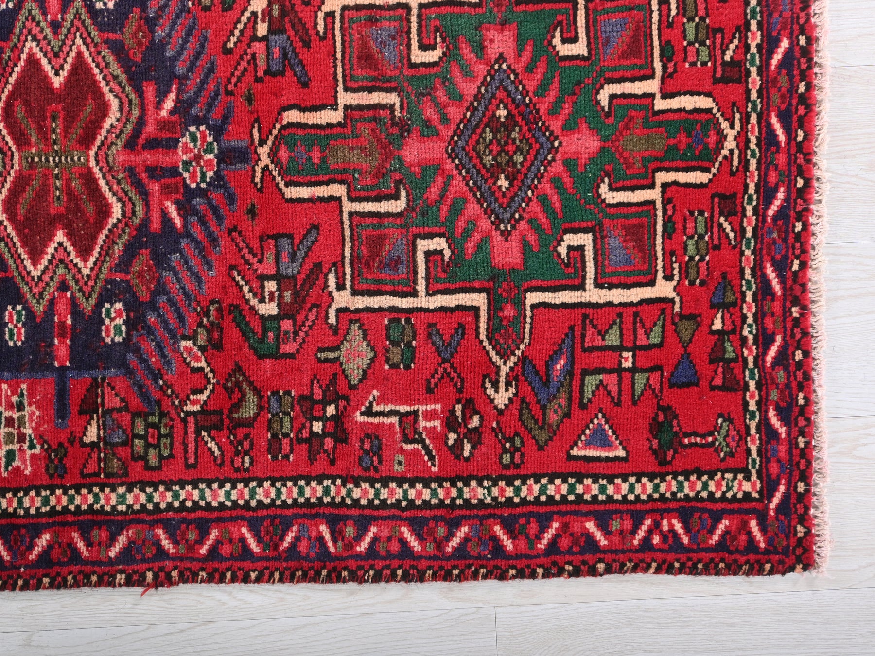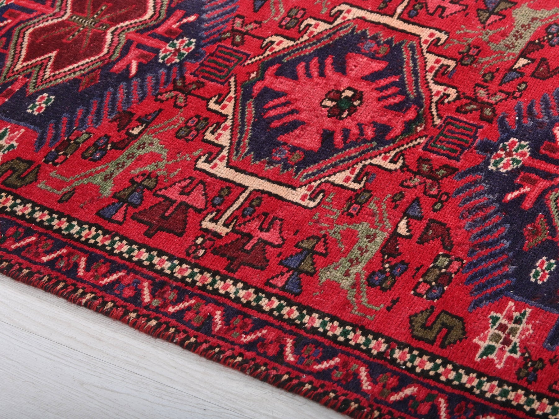 This is a hand-knotted, one-of-a-kind vintage rug. Due to the nature of this piece, there may be slight imperfections in its wear, shape, dimensions, and color. All of our rugs are professionally cleaned and repaired.